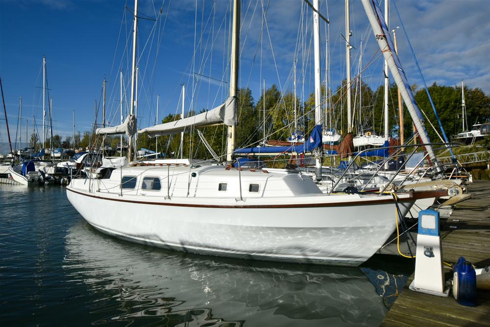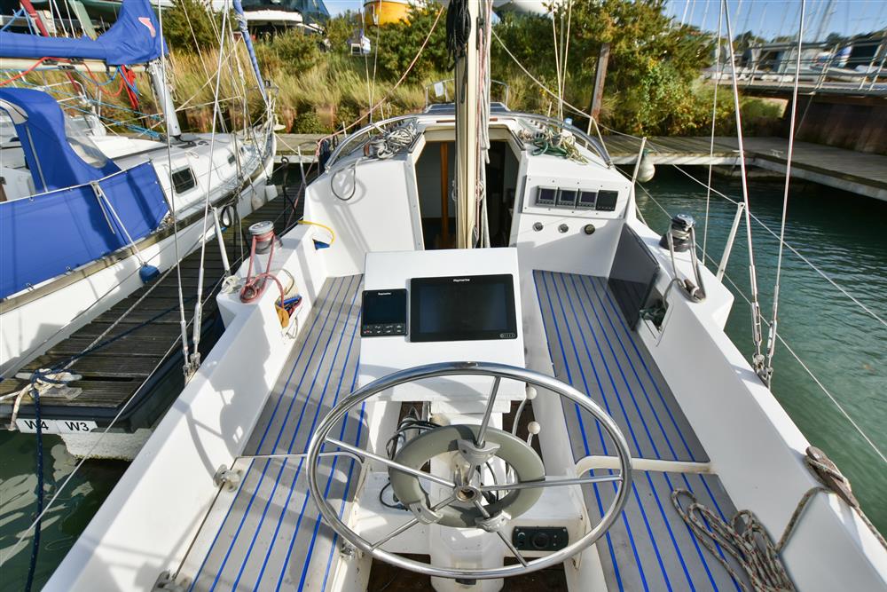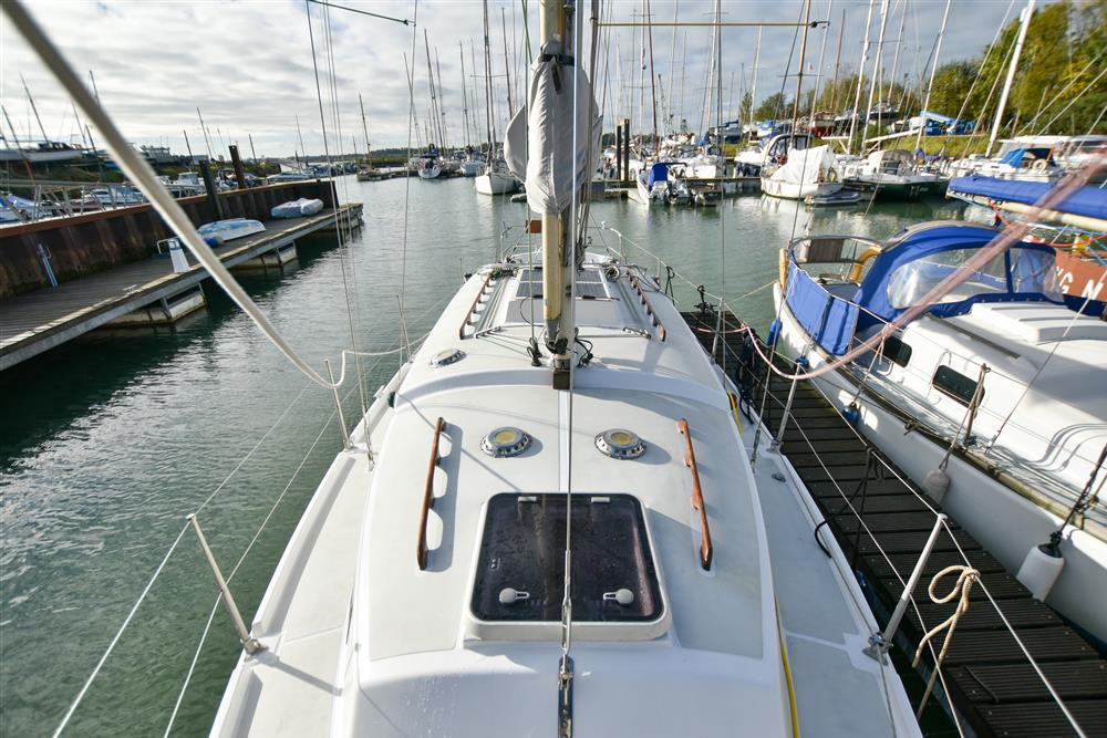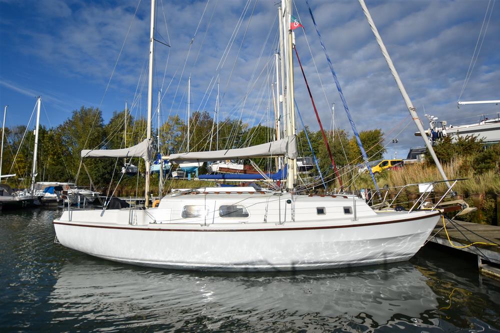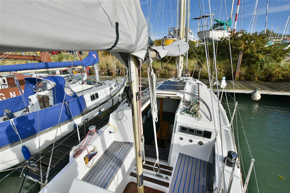 Built in 1973 by Westerly Yachts to a Laurent Giles design. White GRP hull with rubbing strakes. GRP deck and painted non-slip finish. Wheel steering to a skeg-hung rudder. Twin cast iron bilge keels. Coachroof windows re bedded in 2023. Hull stripped and epoxied below the waterline in 2022. Survey available.
