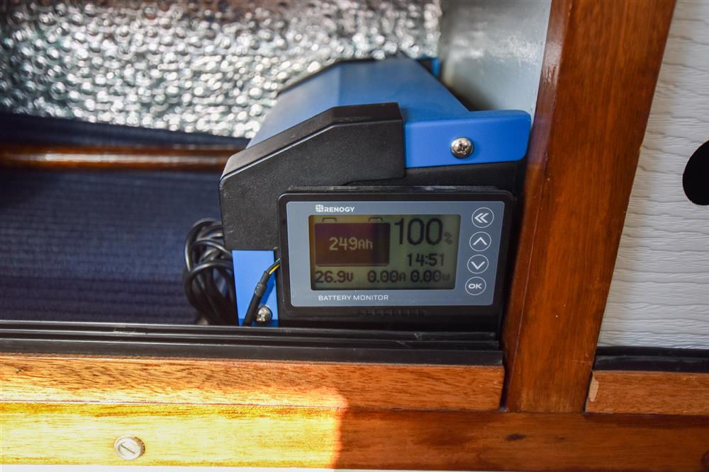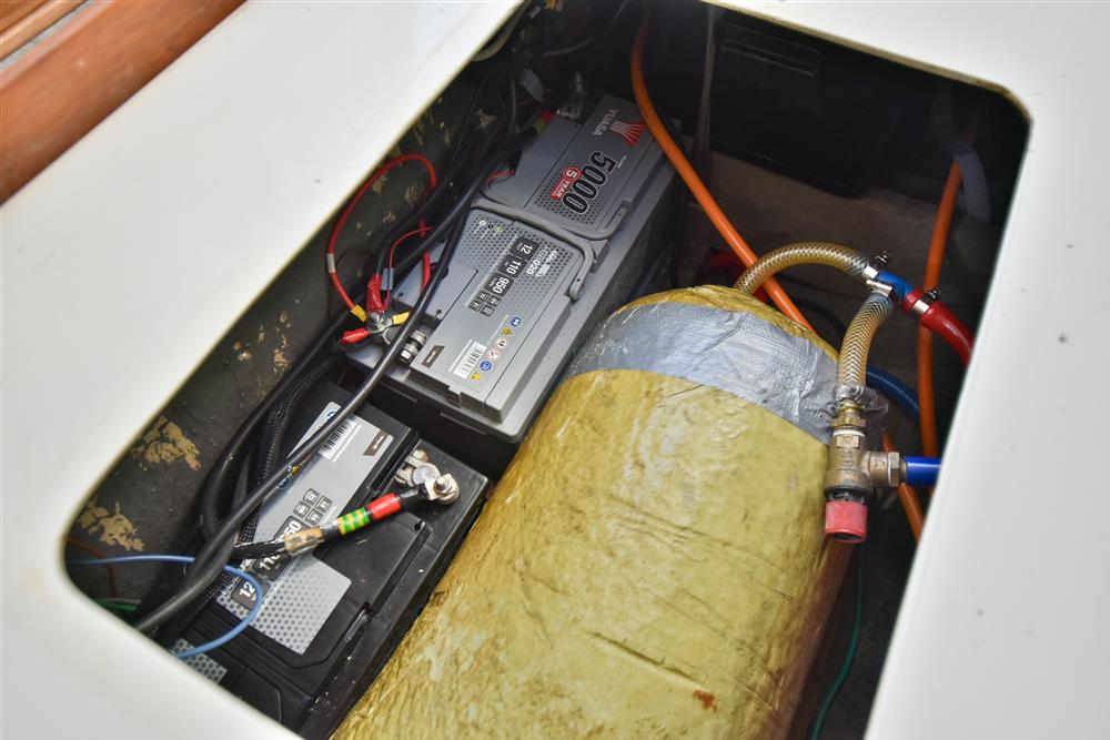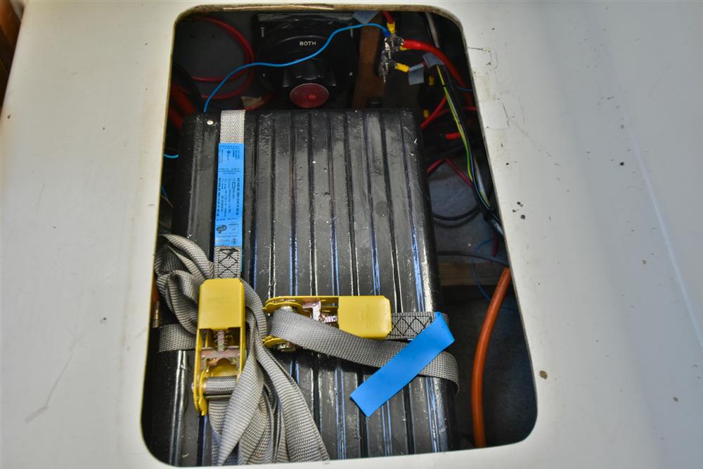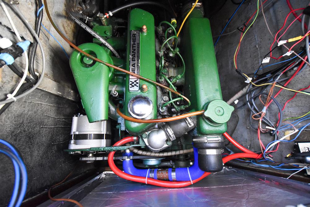 Located under the companionway is the Watermota Seapanther marine diesel engine, fitted in 1973. 28hp, three cylinders, naturally aspirated. Freshwater cooled via a heat exchanger. Shaft drive to 3 blade prop fixed prop with rope cutter. 77 litre stainless steel fuel tank. This engine has been very well maintained and the following work as taken place: