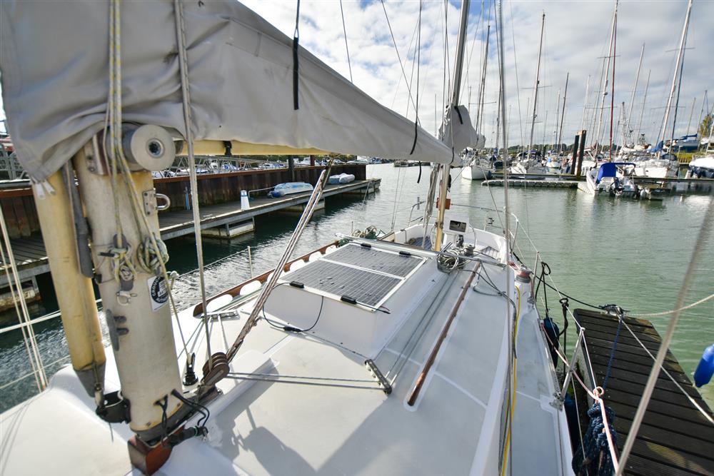 Masthead rigged Bermudan ketch. Two deck-stepped alloy masts and booms. Stainless steel standing rigging (2023). terylene running rigging (2023). Two self-tailing sheet winches. Two Lewmar halyard winches. Slab reefing mainsail system with stackpack & lazyjacks. Hanked-on headsails.