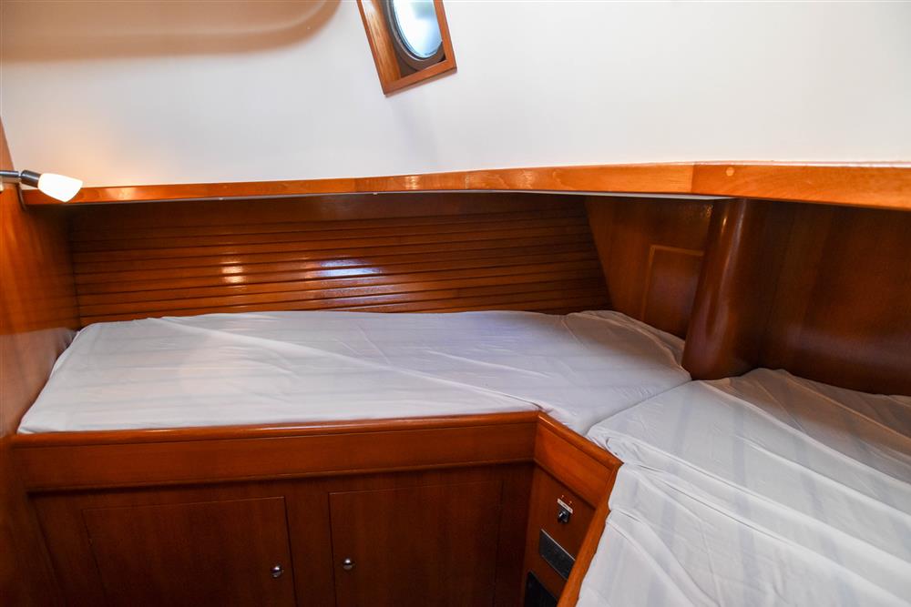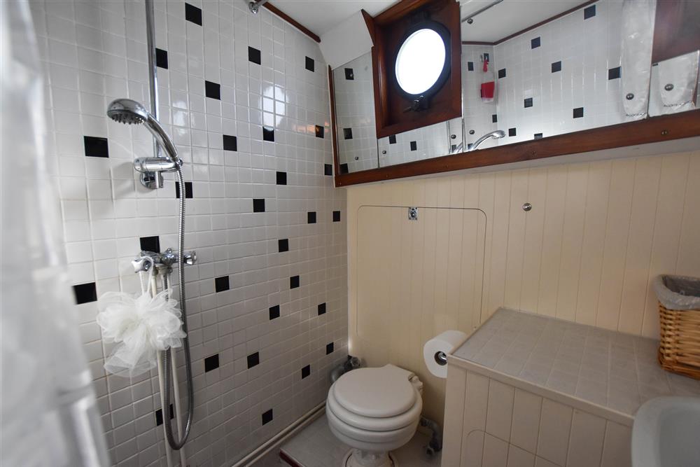Located in the engine room, is the single Scania-Vabis D8 six-cylinder 8 litre 110 hp naturally aspirated diesel engine. Direct shaft drive to a large 3 blade, fixed pitch prop. Maximum 1500rpm engine speed provides approx. 8 kts. Keel cooled (dry exhaust) with substantial external steel heat exchanger. Heavy duty prop shaft and stuffing box with automatic greasing system. Engine driven bilge pump. 2000 litre fuel capacity provide 2 tanks. Annually serviced. Approx. 3,000 engine hours. ELECTRIC BOWTHRUSTER.
