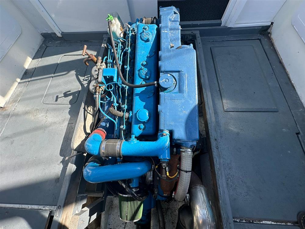 Located in the cockpit under seating is a Perkins T6 354.4 (1974) turbocharged diesel marine engine producing 195hp. Raw water cooled. Dual lever control with electric start. Shaft drive to a 3-bladed bronze propeller.