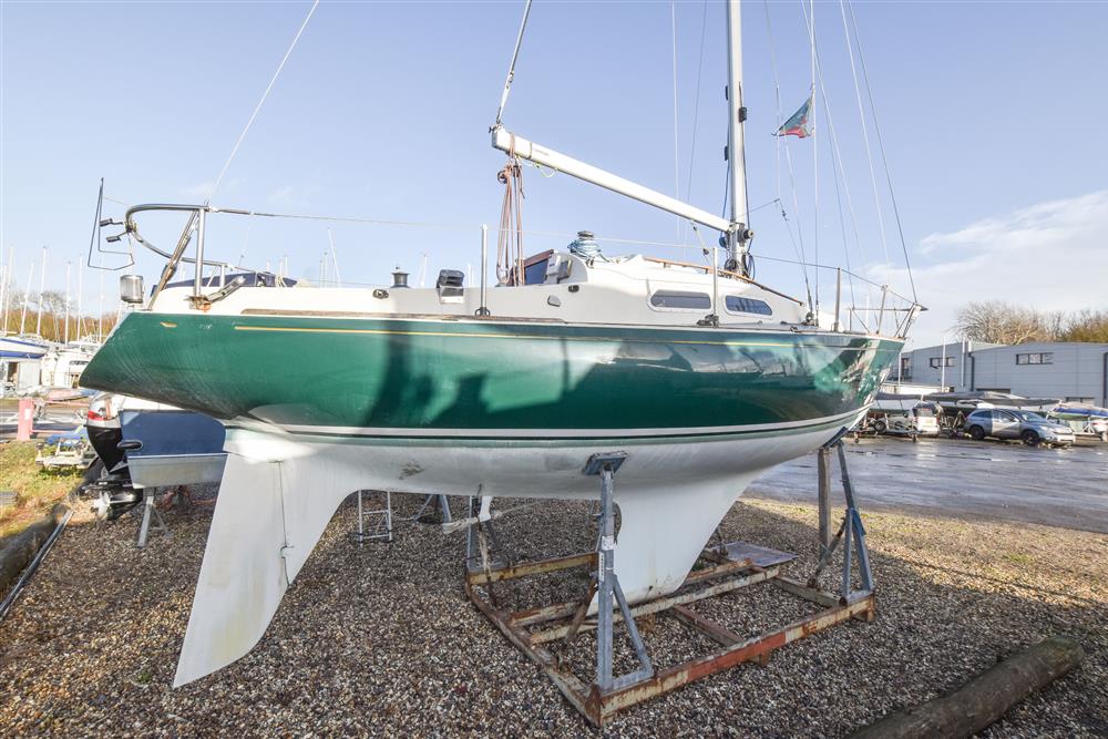 Built in 1974 by South Hants Marine to a design of Sparkman & Stephens. Green grp hull with style stripes. White GRP decks & coachroof with grey epocy SHE DECK finsih. Fin keel with lead ballast. Tiller steering to skeg hung rudder. Lazarette cockpit stowage. Self-draining cockpit. Hull was professionally sprayed by Local yard in AWLgrip paint. Full osmosis treatment and all new skin fittings and seacocks in 2017. Stainless steel stem head fitting and fairleads (new 2012). Last surveyed in 2002 with a copy available.