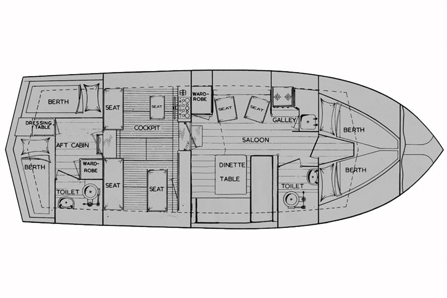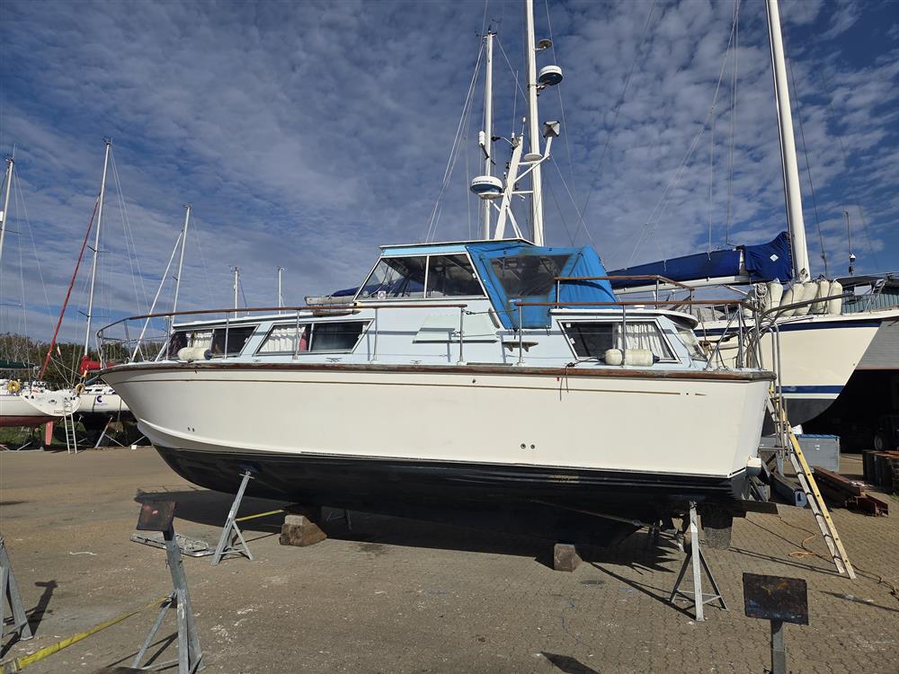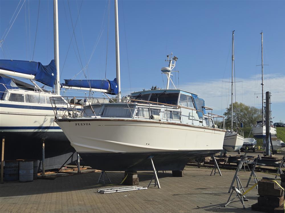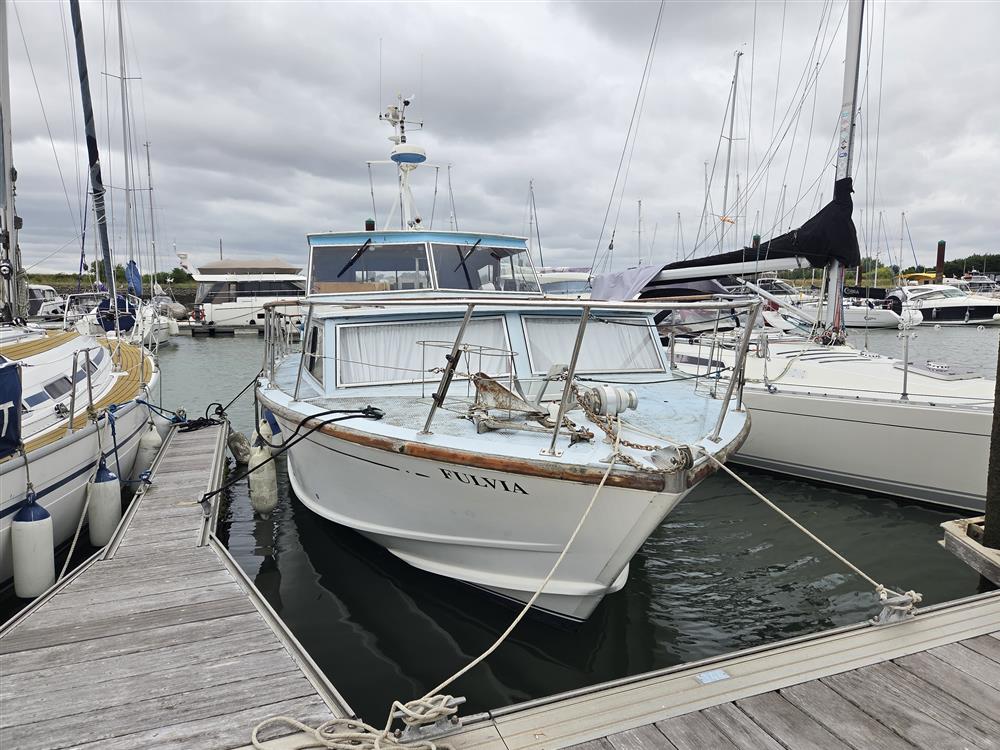 Fulvia is one of only twelve King Falcon 33 TSMYs to have been custom-built by William Osborne (the renowned lifeboat builder) and are highly sought after thanks to their classic lines and spacious accommodation. They also make a great, highly capable and seaworthy alternative to the classic Fairey Swordsman, Weymouth or Freeman 32 cruisers. Her engines have undergone complete rebuilds in recent years. Diesel powered cruisers suitable for sea and river work of this size and quality rarely come along at this price!