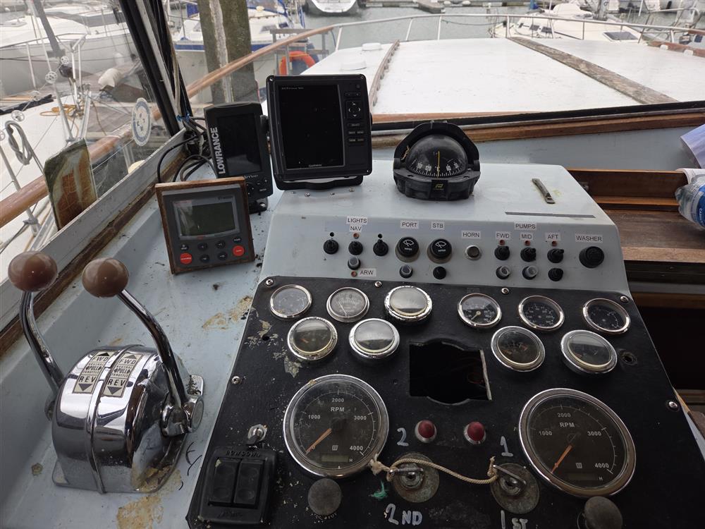 Located beneath the wheelhouse sole, twin Perkins 6354 Turbo 145hp, six cylinder, marine diesel engines. Freshwater cooled via heat exchangers. Single lever engine controls. 24V electric start. Hydraulic wheel steering to twin bronze rudders. Shaft drive via bronze P-brackets to twin four-blade bronze propellers. Spare set of propellers. Remote control trim tabs (new 2009). Full engine instrumentation. Her owner has found them to offer economic cruising, consuming approximately 20 litres per hour at around 8-10kts. Fulvia II had a complete engine rebuild in August 2019 which included both engines having a nut and bolt rebuild, including head reworks new injectors and injector pumps have been serviced. The blocks have both been lined and bored to return them to manufacturer's spec., both cranks have been polished and measured, and big ends and mains have been replaced along with thrust washers. One engine has had new pistons, one engine's pistons were within manufacturer's tolerance. Camshaft bushing was all within manufacturer's tolerance and only required a polish. Engine water pumps were both changed, as were the header/ heat exchangers, inter coolers were all been replaced 2022. Turbos have also both been changed in 2019/20. All but one of the oil coolers have been changed in 2019/20. Both alternators have been changed for modern regulator type. Both 24v starters have been rebuilt. The engine bay has been completely redone with new fire and sound lagging. All heavy duty cables and batteries have been replaced with new isolators.