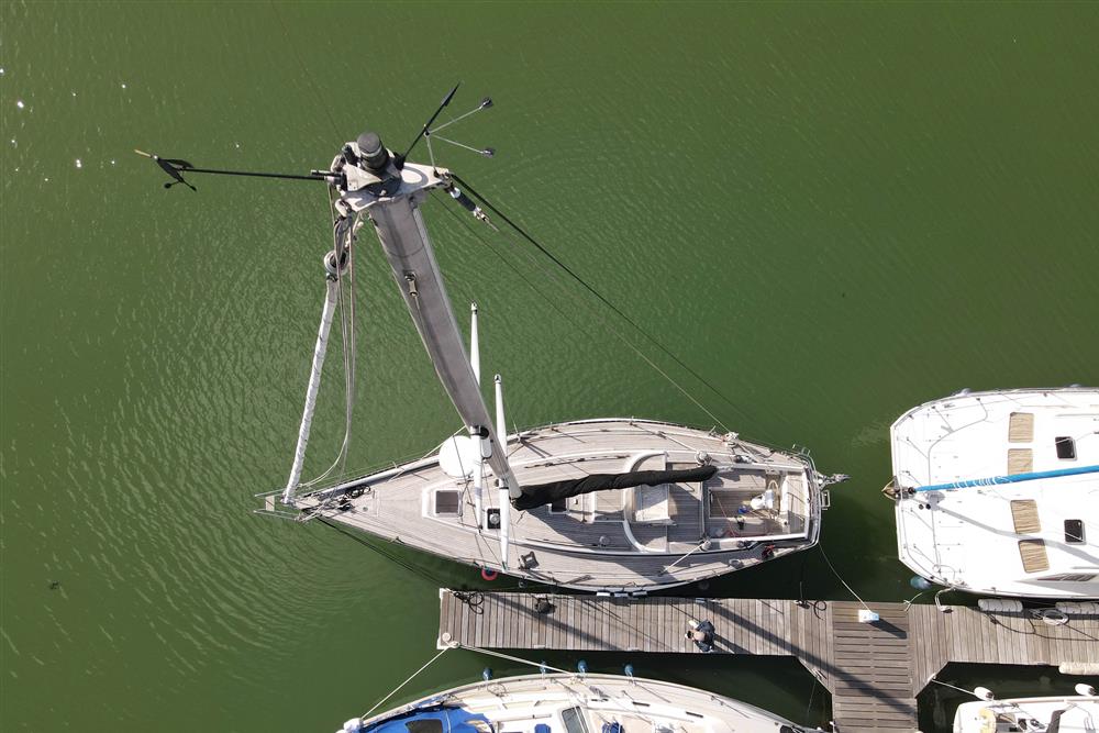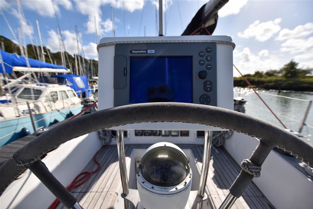 Masthead rigged Bermudan sloop. Keel-stepped alloy mast and boom. Stainless steel standing rigging (age unknown). Terylene running rigging (various ages). Slab reefing mainsail system. Headsail furling system. Alloy spinnaker pole. Two Lewmar 55 self-tailing sheet winches. Two Lewmar secondary winches. Three halyard winches on the mast. Adjustable backstay.