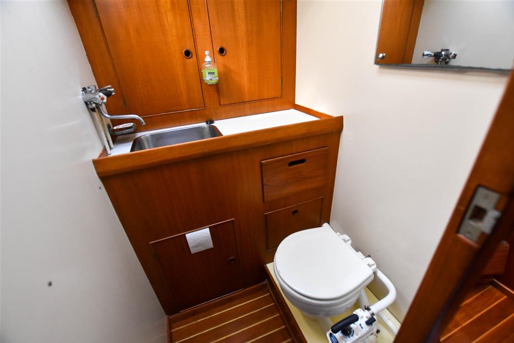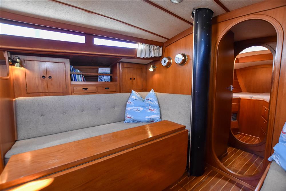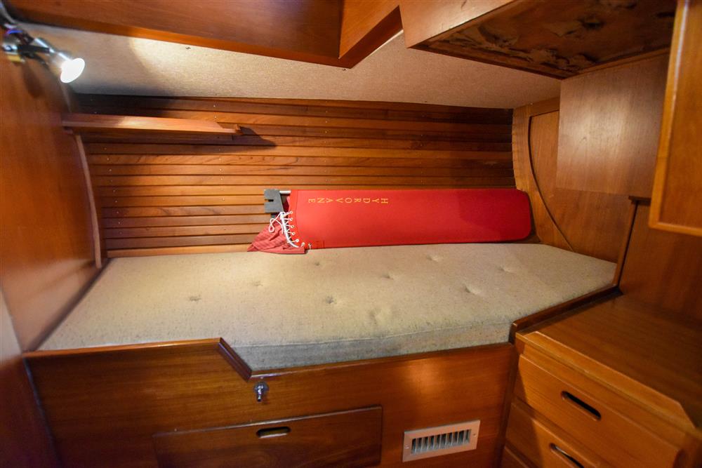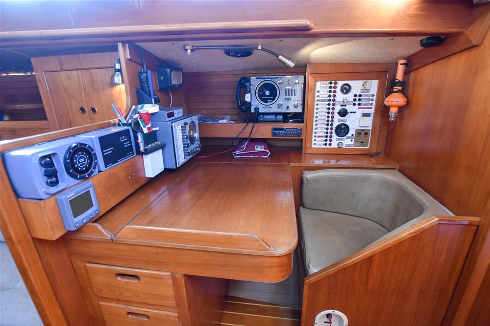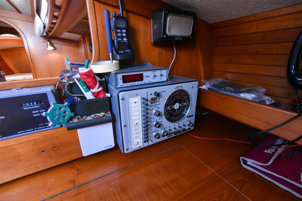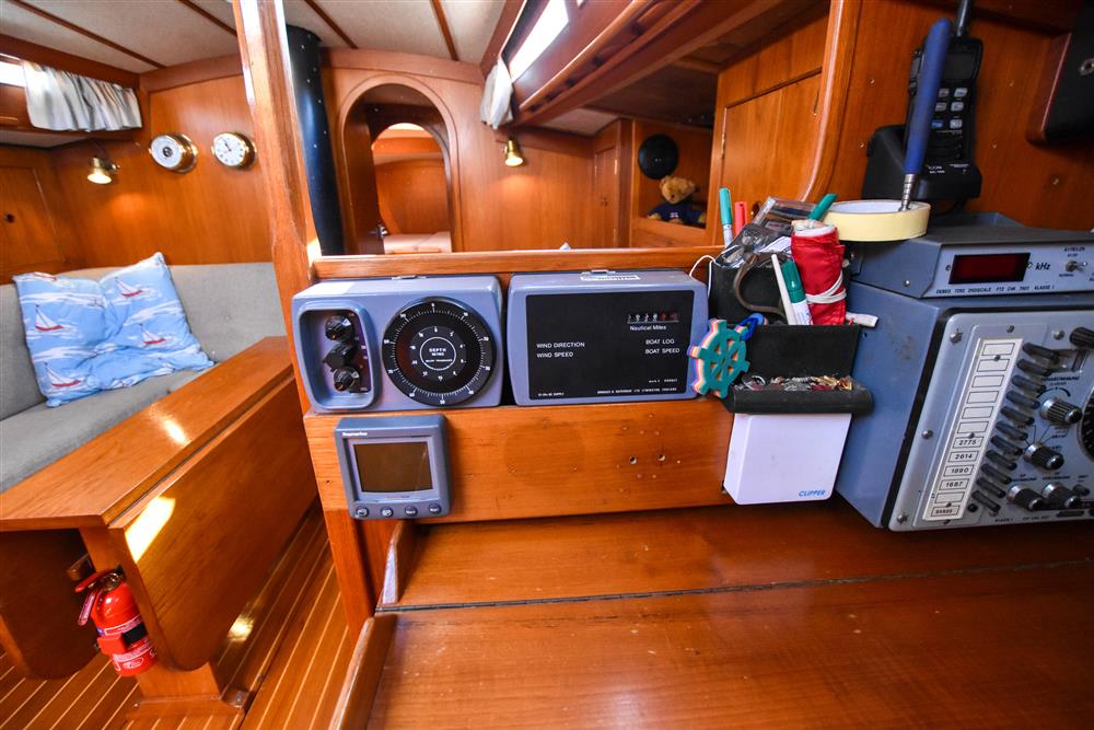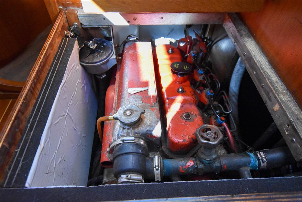 Located under the companionway steps in an insulated engine bay is the Peugeot Indenor DTP40 marine diesel engine fitted in 1979. 4 cylinders, 39hp, naturally aspirated. Freshwater cooled via a heat exchanger. Approximately 140 litre fuel capacity. Approximately 900 hours. Electric start. Single lever controls. Shaft drive to a feathering 4 bladed propeller. Annually serviced.