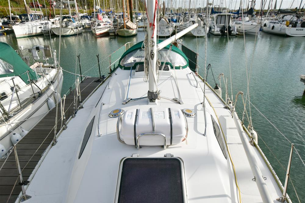 Masthead rigged Bermudan sloop. Deck stepped alloy mast and boom by Kemp. Stainless steel standing rigging (new 2024). Terylene running rigging (some new 2025). Slab reefed mainsail with lazyjacks. Headsail furling system. Lines led aft. Four sheet winches. Two halyard winches