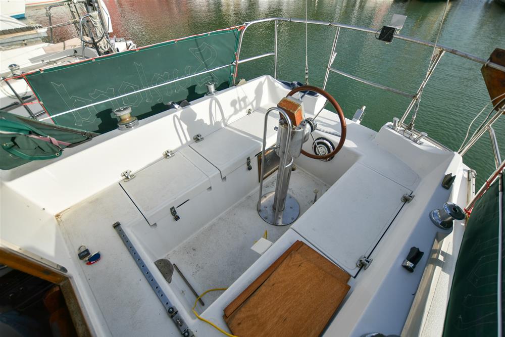 Built by Trident Marina Sales in 1979 to an Angus Primrose design. White GRP hull with green boot top. White GRP deck and superstructure with moulded non-slip surfaces. Traditional long keel with and encapsulated ballast. Wheel steering via Vetus hydraulic system. Keel hung rudder. Last surveyed in 2024, with a copy available upon request.