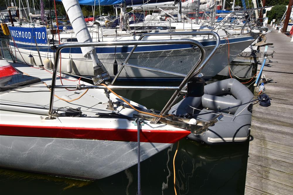 The Artekho H-35 is a Finnish built cruiser-racer of proven design and respected sailing performance. Bam was built in 1980, this example was displayed at the 1981 London Boat Show. The interior is quite small by modern 35 footer standards, with 5' 10" headroom, but the owners continue to be delighted with her sparkling performance. The boat is particularly easy to sail with a light helm and all lines led aft to the deep safe cockpit. Recent upholstery, head linings, Coppercoat to hull and a new Genoa in 2023.