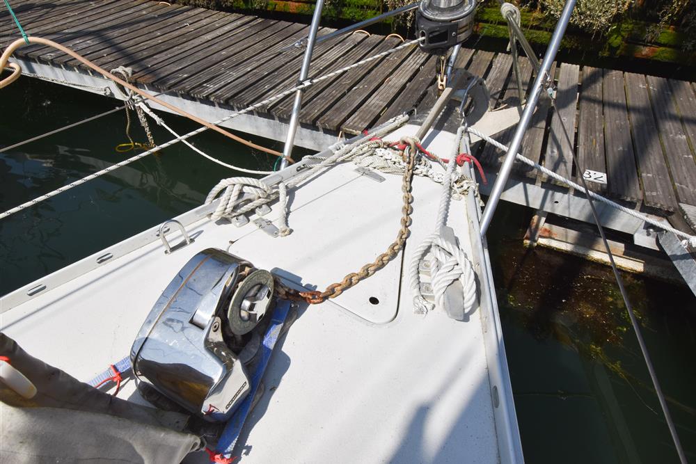 Masthead Bermudan sloop rig. Silver anodised aluminium mast and boom by Kemp Masts Ltd. Stainless steel standing rigging, 2017, with backstay tensioner. Terylene running rigging mostly lead aft to the cockpit. Furlex 200S headsail furling system. Slab reefing to mainsail. Harken 40 self tailing primary winches. Lewmar 14 self tailing secondary sheet winches. Three assorted reefing and control lines winches. Spinnaker pole. Lazyjacks.