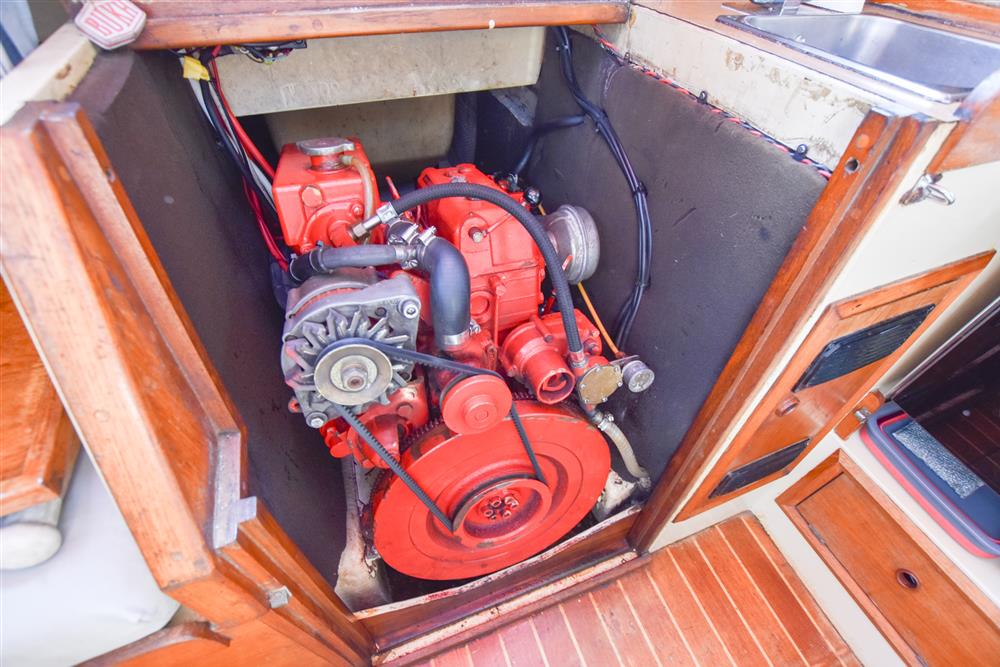Located under companionway. Year 2011 Bukh DV-24 marine diesel engine. 24hp. Shaft drive to three blade feathering propeller with rope cutter. Steel fuel tank with 77 litres capacity. Single lever engine controls. Hours unknown. The engine is serviced annually by the on site marine engineers.
