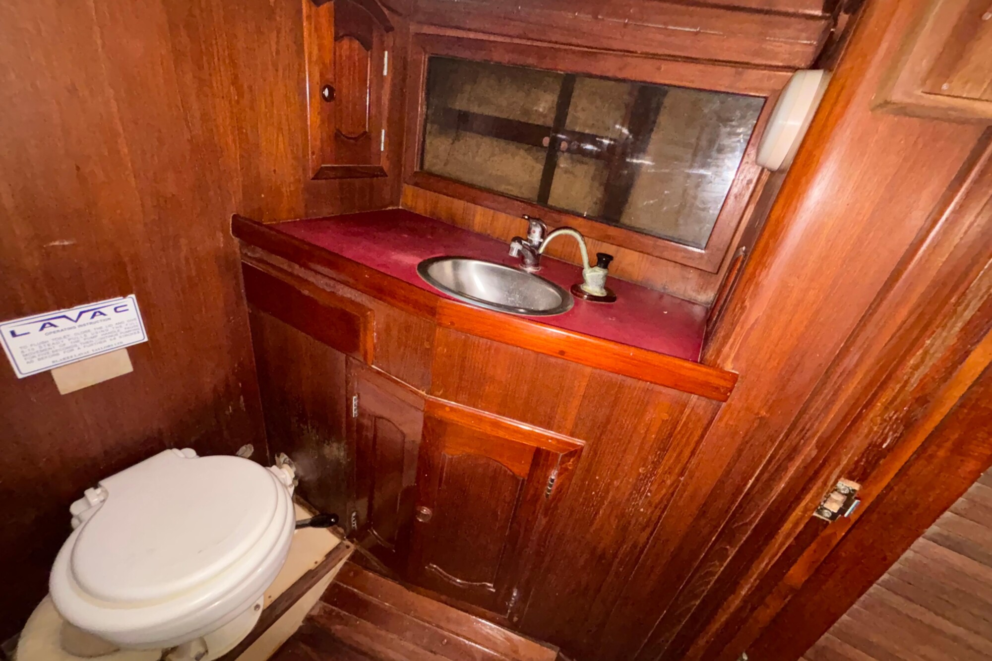 HEADS: To stb, heads with marine Lavac toilet and wash basin.