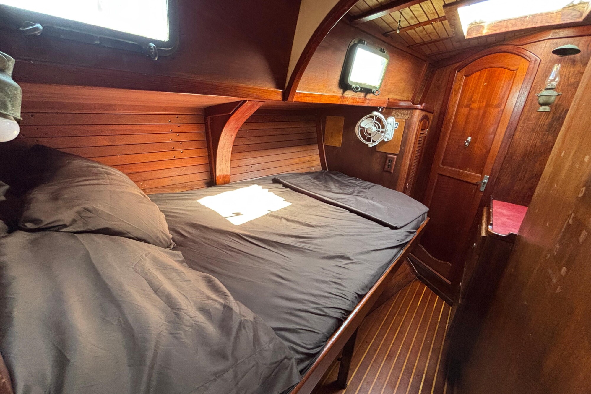 FORWARD CABIN: Forward most cabin is a workroom/sail/ground tackle storage with top opening hatch.