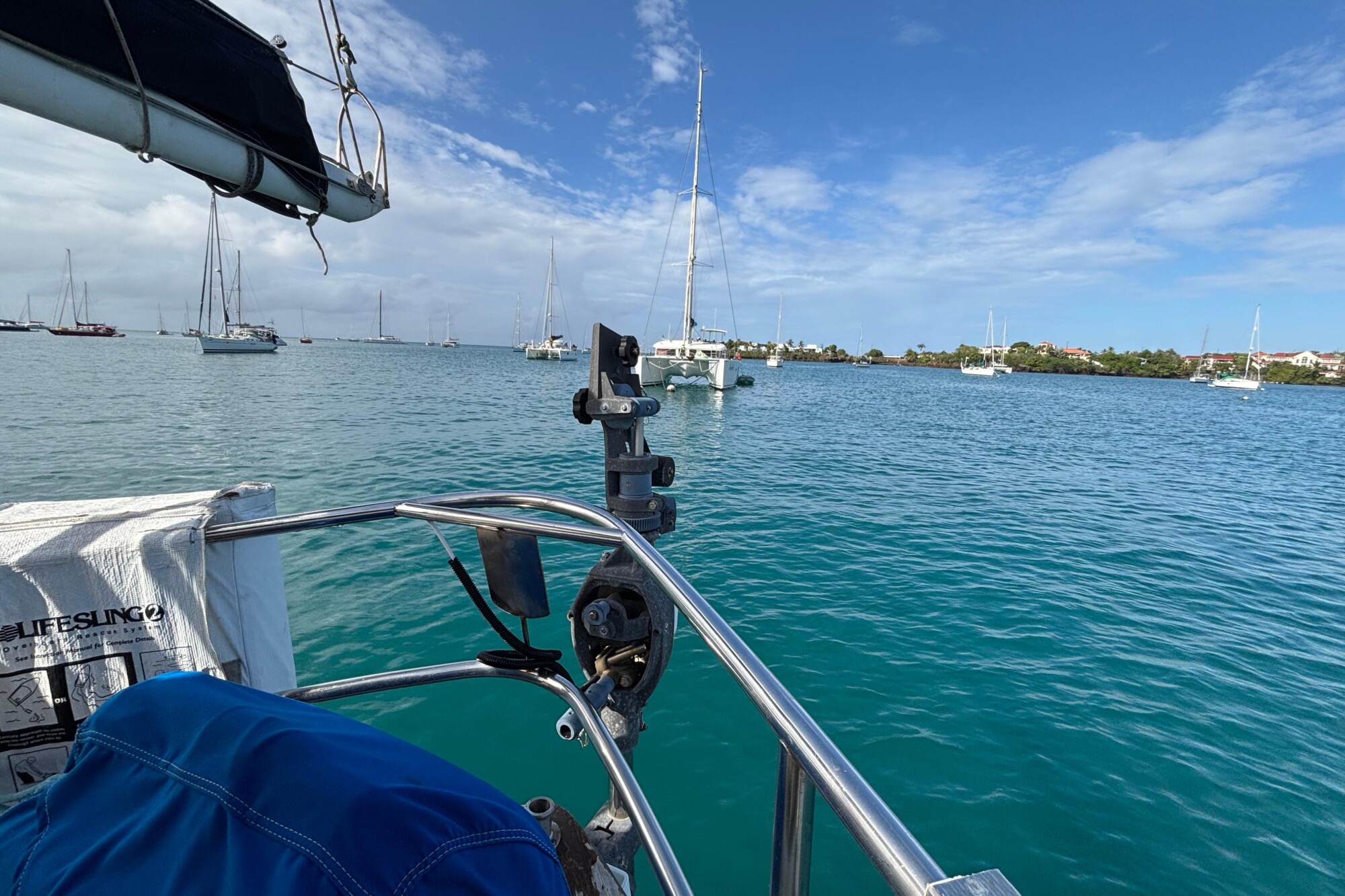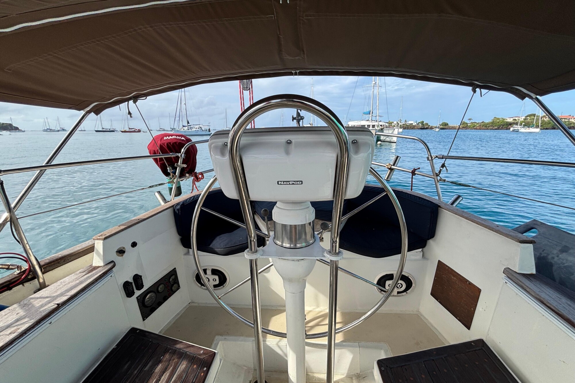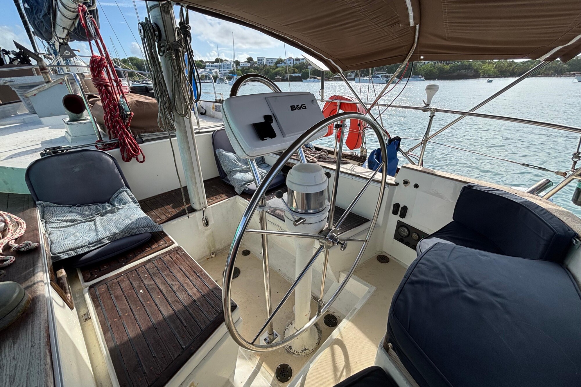 Flying Whale was built by Alajuela Yacht Corp., USA to Lloyds standards. She is an ocean cruiser built with hand-laid fiberglass, a fin keel and skeg-hung/partial-skeg rudder, heavy lead ballast and traditional teak trim. Last anti-fouled August 2025. Decks are painted and need re-painting.