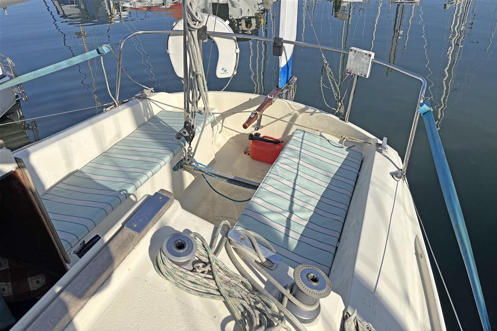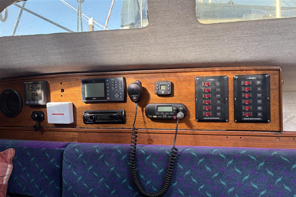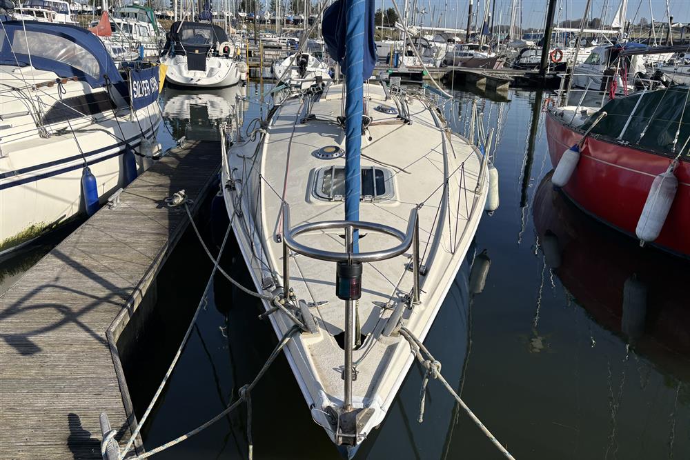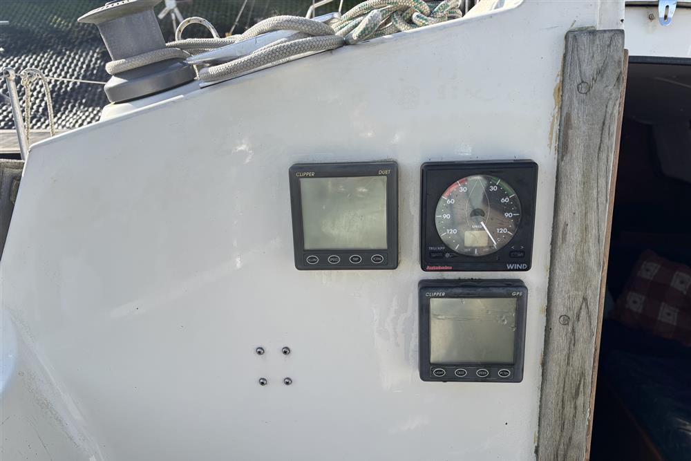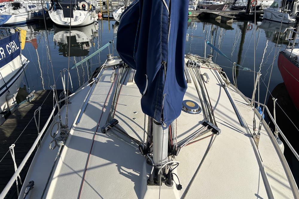 Fractionally rigged Bermudan sloop. Deck-stepped alloy mast and boom. Stainless steel standing rigging (new 2024). Terylene running rigging (new 2024). Slab reefing mainsail system. Plastimo headsail furling system. Two sheet winches. Two halyard winches. Spinnaker pole. Lines led aft.
