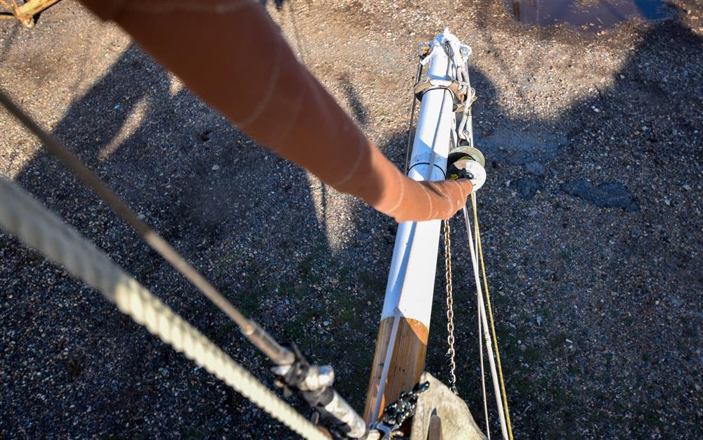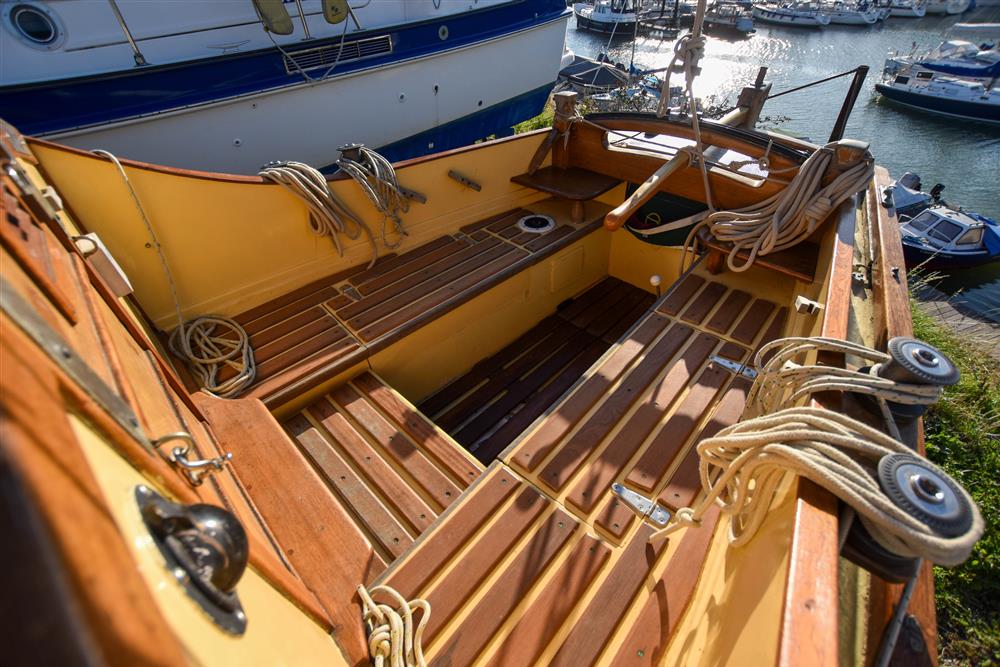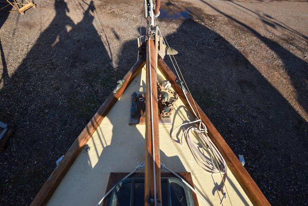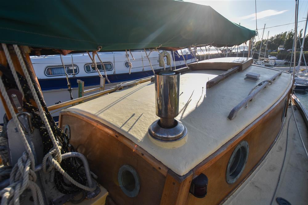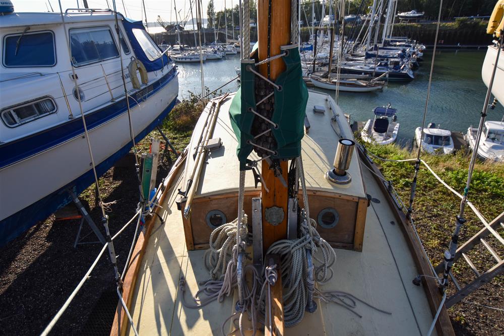 Gaff cutter rig. Deck stepped in a tabernacle mast, boom, gaff and bow sprit. Stainless steel standing rigging. Terylene running rigging. Four Barton sheet winches. Slab reefed mainsail. Furling gib system. Hanked on staysail.
