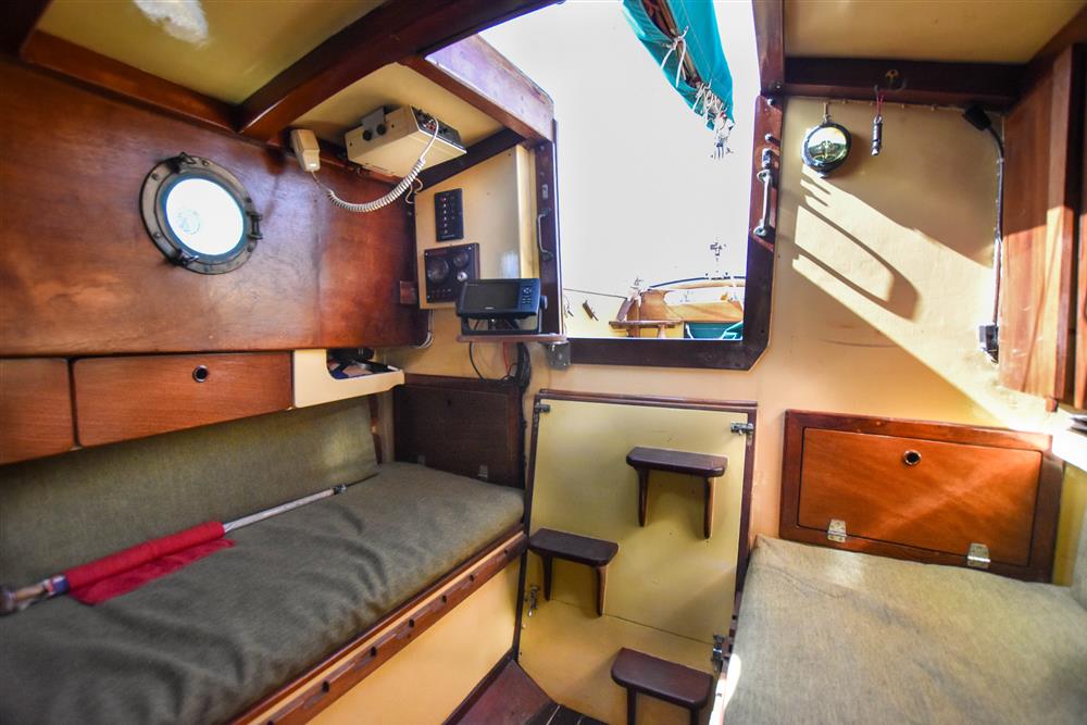 Located under the cockpit sole is the Beta Marine diesel engine fitted new in 2018. Twin cylinder, 14hp, freshwater cooled via heat exchanger. Shaft drive to a fixed 3 bladed propeller. Electric start. Single lever controls. 30 litre fuel tank. Approximately 200 hours on the engine. Annually serviced by the owner.