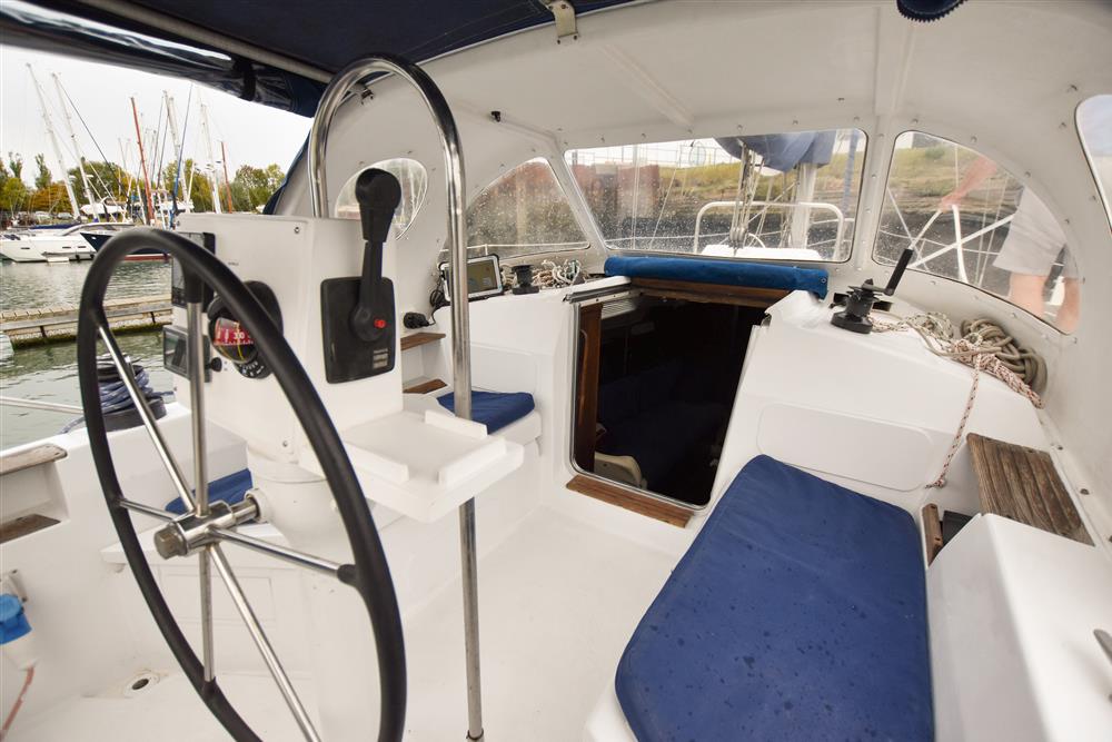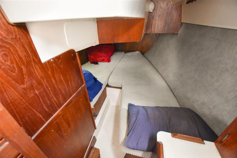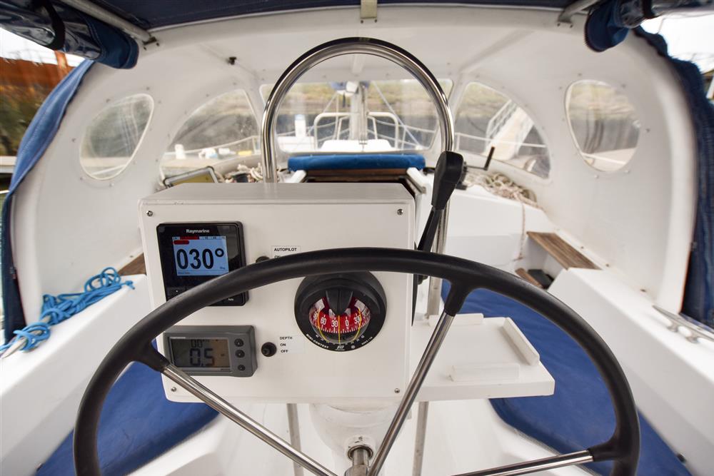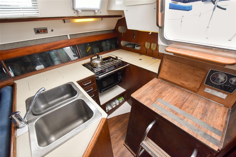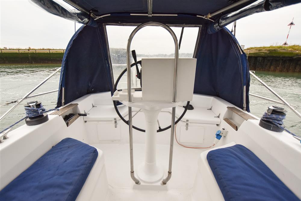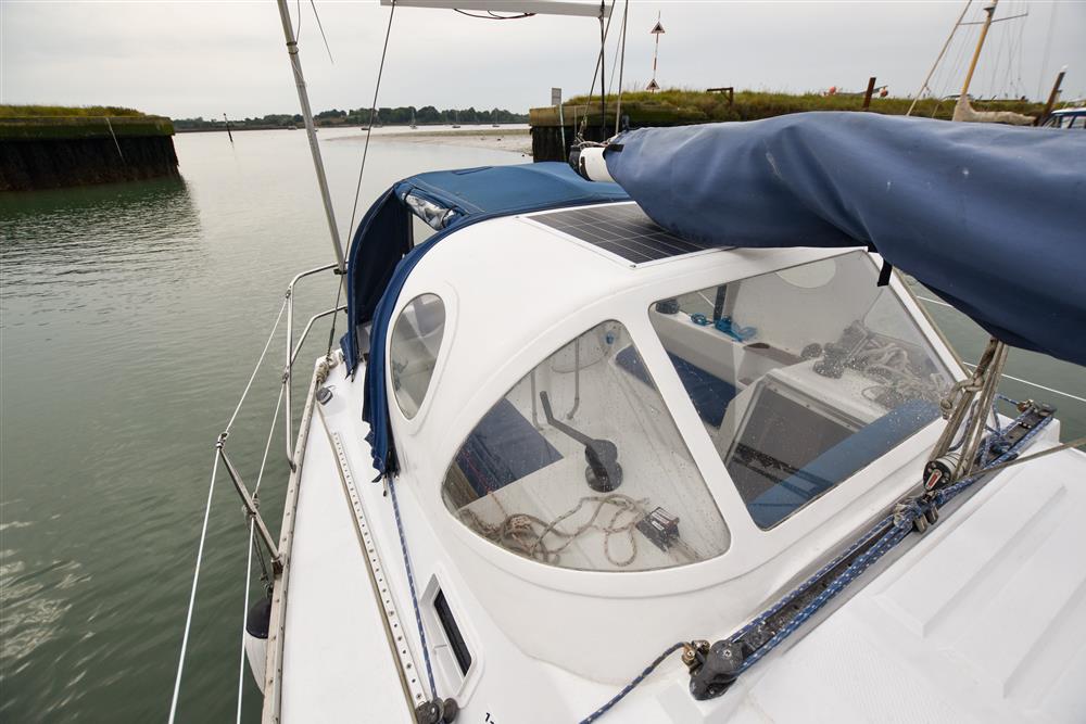 Located under companionway is the Vetus N3.29 marine diesel engine (new 2022). 29hp. Shaft drive to three bladed fixed propeller. 65 litre fuel tank plus holding tank converted for extra diesel capacity. The engine has logged only some 252 hours and has been serviced at 50 & 250 hours. Approx 6 knots cruising at some 1.5 litres per hour consumption (subject to fouling and loading).