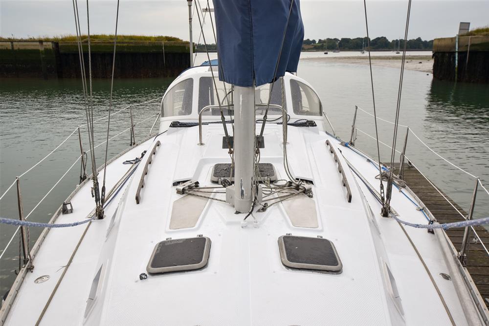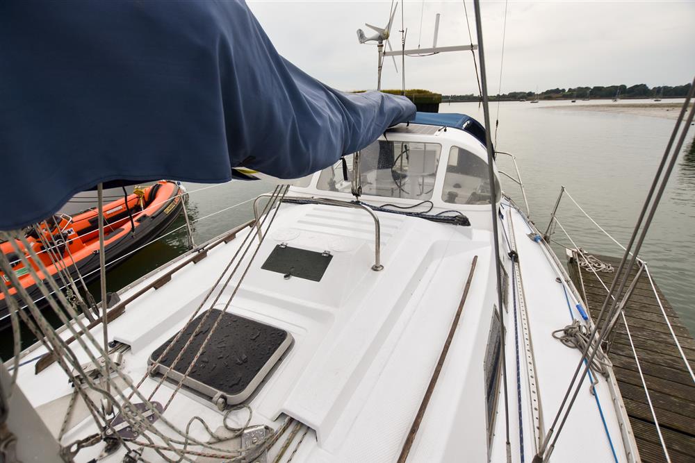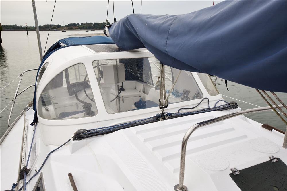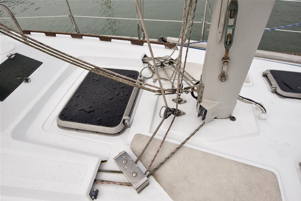 Masthead rigged Bermudan sloop. Deckstepped alloy mast and boom. Stainless steel standing rigging, 1983 (new forestay 2025). Terylene running rigging led aft to the cockpit. Slab reefing to mainsail. Headsail furling system. Two Lewmar 43 self tailing sheet winches. Two Lewmar self tailing secondary winches. Spinnaker pole. Mainsheet track.