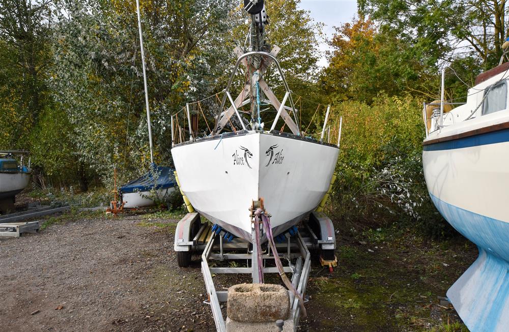 The E Boat is a lightweight cruiser/racer. The E-boat's hull form, lightweight construction and deep fully retracting keel, makes her a fast mover, upwind and down wind. The simple and effective keel lifting arrangement gives positive control and the equally simple locking down system can be fixed or removed in a minute. Alice presents a sound option with some cosmetic work to be done but appears to be in a operational condition.