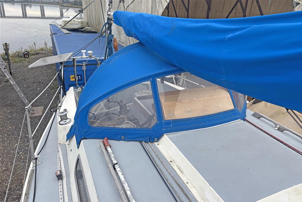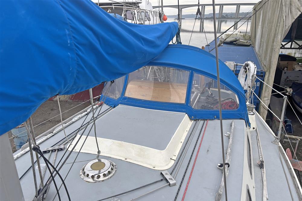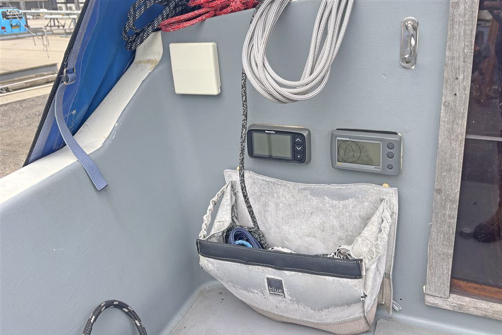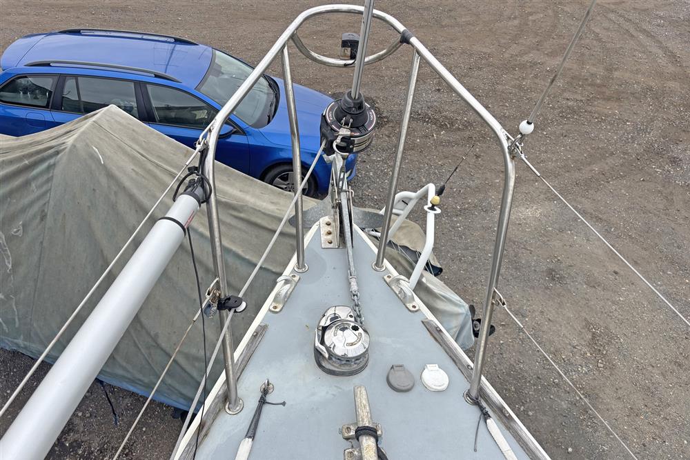 Masthead Bermudan sloop rig. Deck stepped silver anodised aluminium mast and boom. Stainless steel standing rigging. Terylene running rigging and Dyneema halyards (2025) led aft to cockpit. Slab reefing mainsail. Furlex 100S headsail furling system. 2 x Barlow 20 sheet winches. 2 x Barlow 16 halyard winches. New Harken mainsheet track and blocks. New coachroof Spinlock clutches. All mast wiring replaced inc Windex, nav lights, instrument and VHF antenna.Deck Equipment