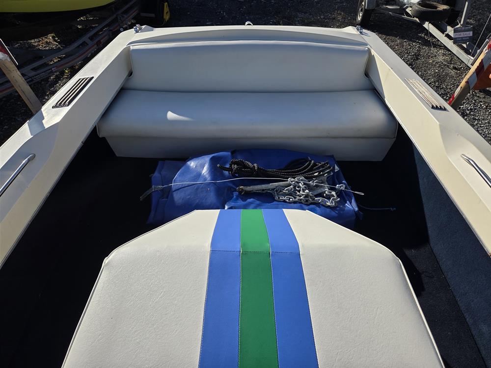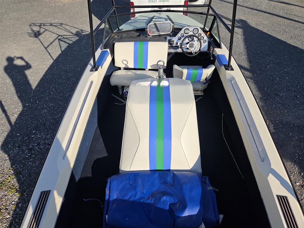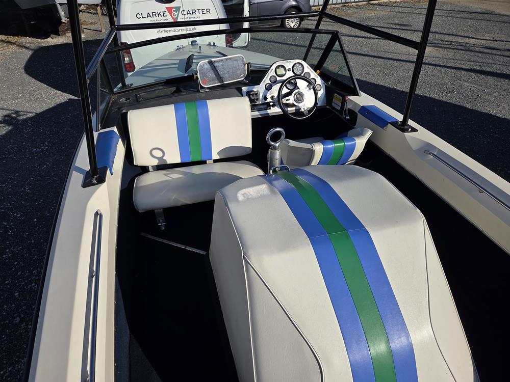 Single Ford V8, 5.8 litre petrol inboard engine mounted in centre of cockpit. Believed to be 240hp. Shaft drive via P-bracket to three blade bronze propeller. Electric start. Holley carburettor. New starting coil in 2025. Water pump rebuilt 2024. Single 12v battery charging from engine alternator.