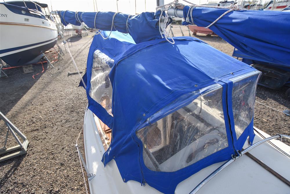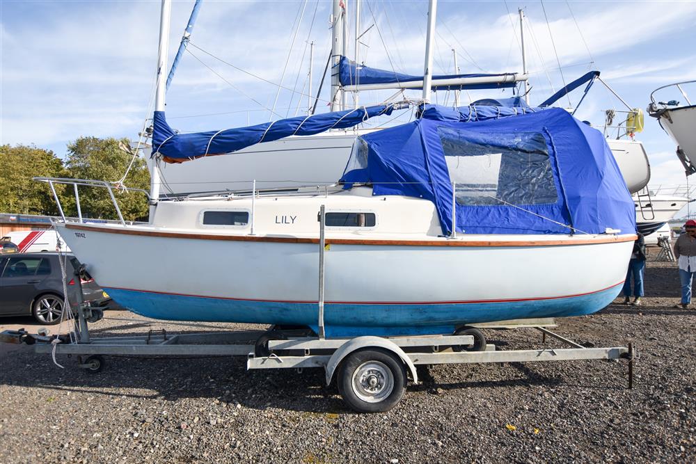 The Hunter Liberty is another cleverly designed boat by David Thomas. They are a cat ketch rigged, three berth, trailable, centreboard yacht. The cast iron centreboard, allied to two cast iron bilge keels, provides stability and enables the yacht to safely dry out on the level and be easily boarded. The cat ketch rig does not require any standing rigging and both can be raised and lowered by a single handed. Lily is in very tidy shape and is ready to be enjoyed. Superb cockpit enclosure with standing headroom.