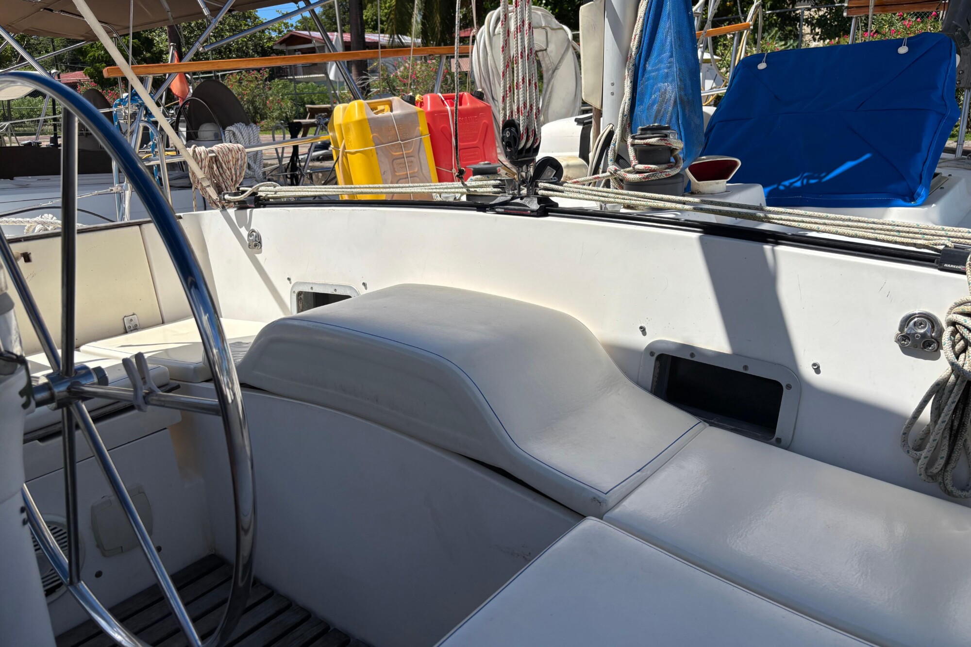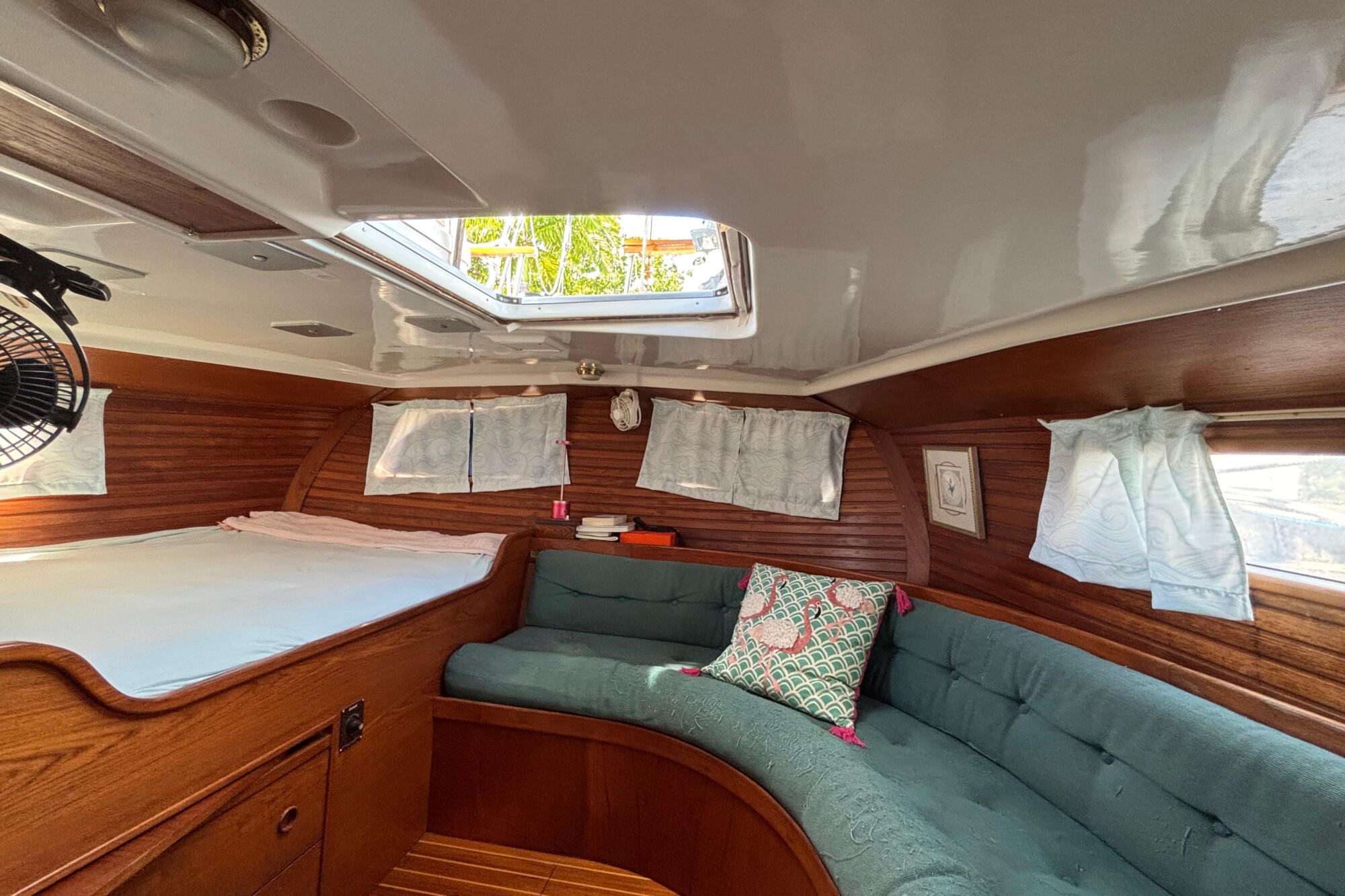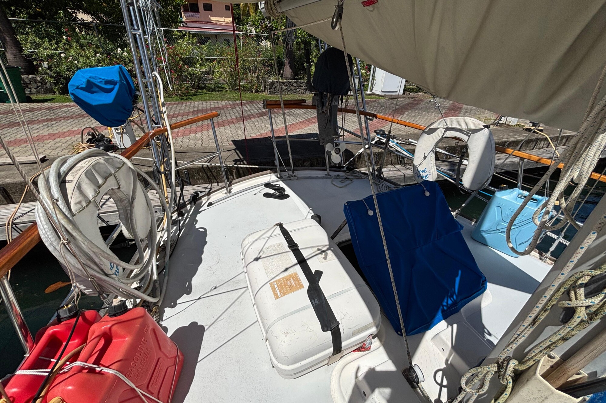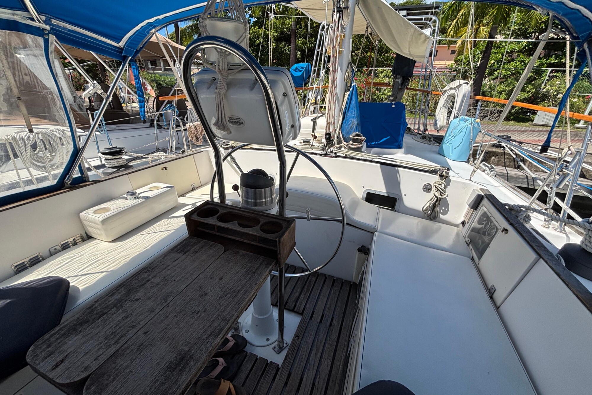 This classic Henri Wauquiez-designed Amphitrite 43 combines timeless French craftsmanship with ocean-ready strength and comfort. Built in 1985 and lovingly maintained, she offers a perfect balance of performance, safety, and livability for extended cruising or comfortable coastal adventures. She spent her first 33 years exclusively in the Chesapeake Bay before her current owner bought her to the Caribbean in 2018. They have continued to maintain and improve her with recent upgrades including: Custom Integrated Davits and Solar Panels 2021, Solar Panels 2023, Raymarine Chart Plotter 2021, Standing Rigging 2022, Bimini 2023, Lithium Batteries 2022. Anti-fouled 2025.