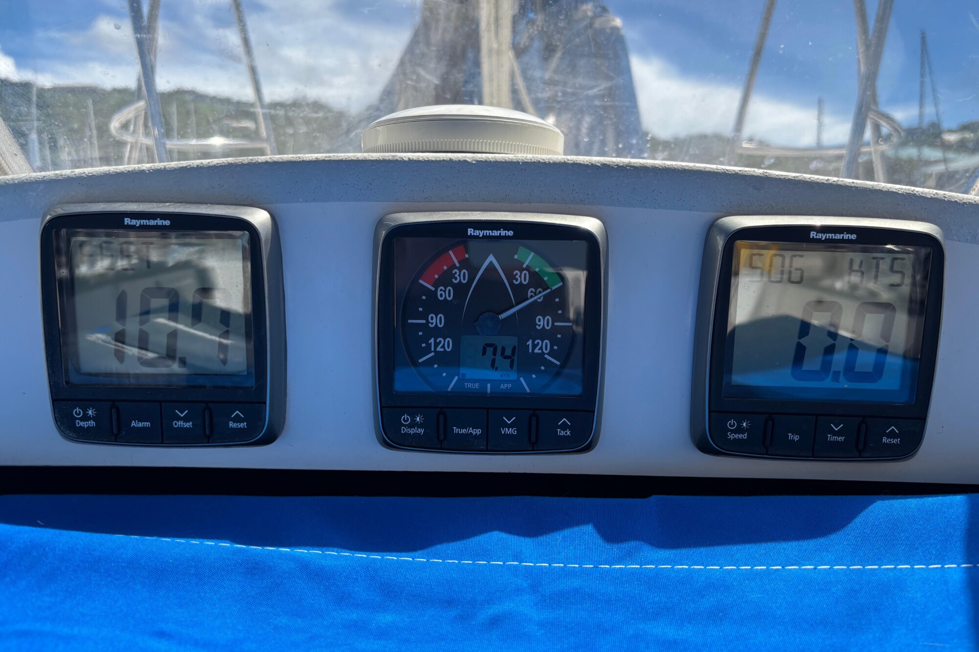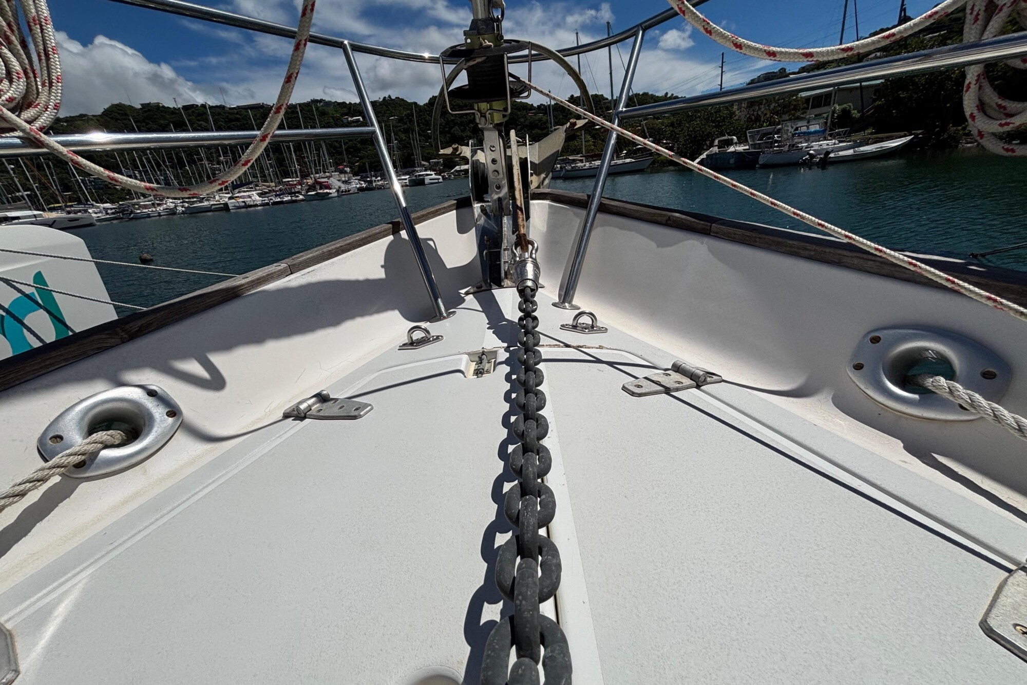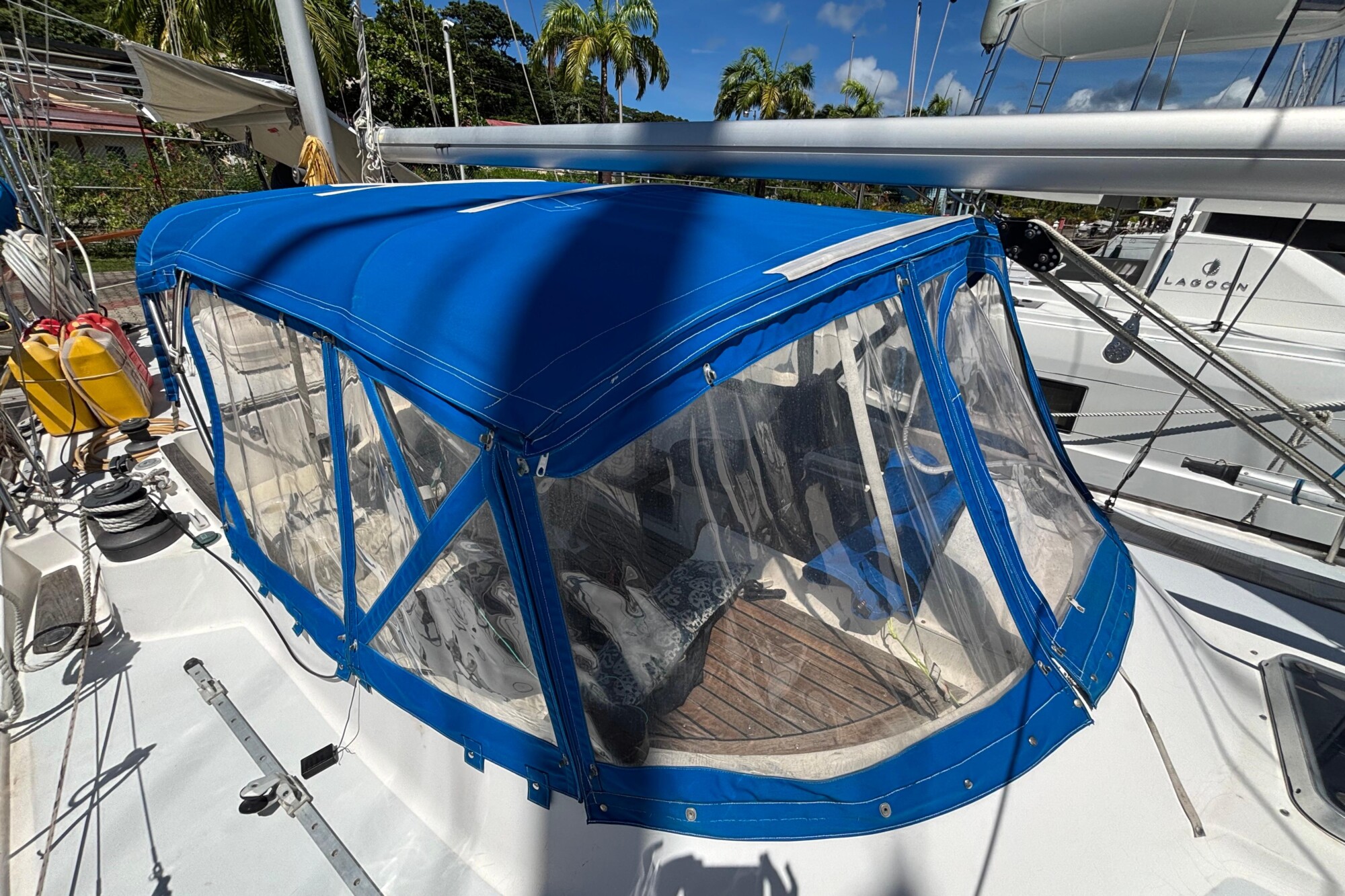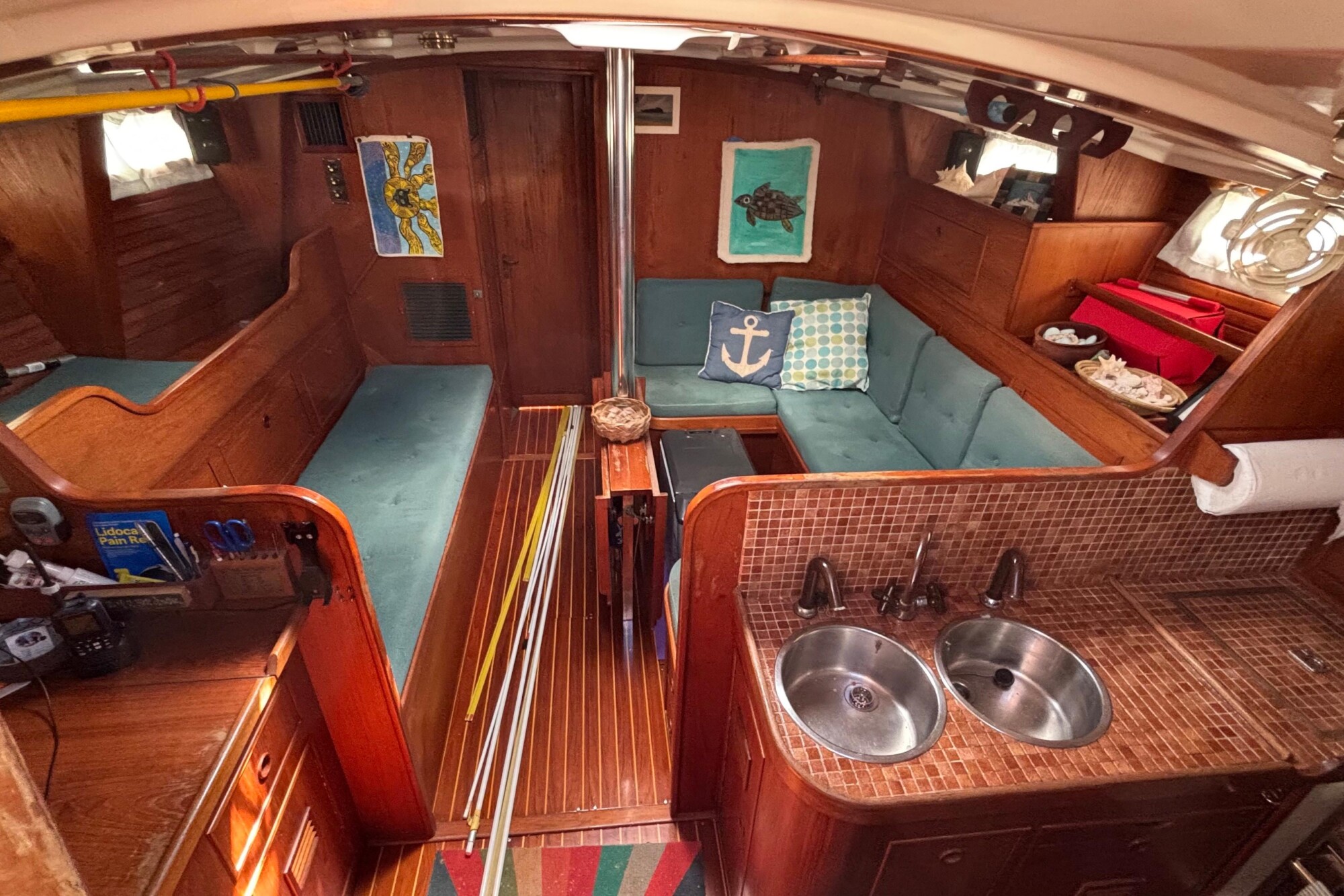 This classic Henri Wauquiez-designed Amphitrite 43 combines timeless French craftsmanship with ocean-ready strength and comfort. Built in 1985 and lovingly maintained, she offers a perfect balance of performance, safety, and livability for extended cruising or comfortable coastal adventures. She spent her first 33 years exclusively in the Chesapeake Bay before her current owner bought her to the Caribbean in 2018. They have continued to maintain and improve her with recent upgrades including: Custom Integrated Davits and Solar Panels 2021, Solar Panels 2023, Raymarine Chart Plotter 2021, Standing Rigging 2022, Bimini 2023, Lithium Batteries 2022. Anti-fouled 2025.