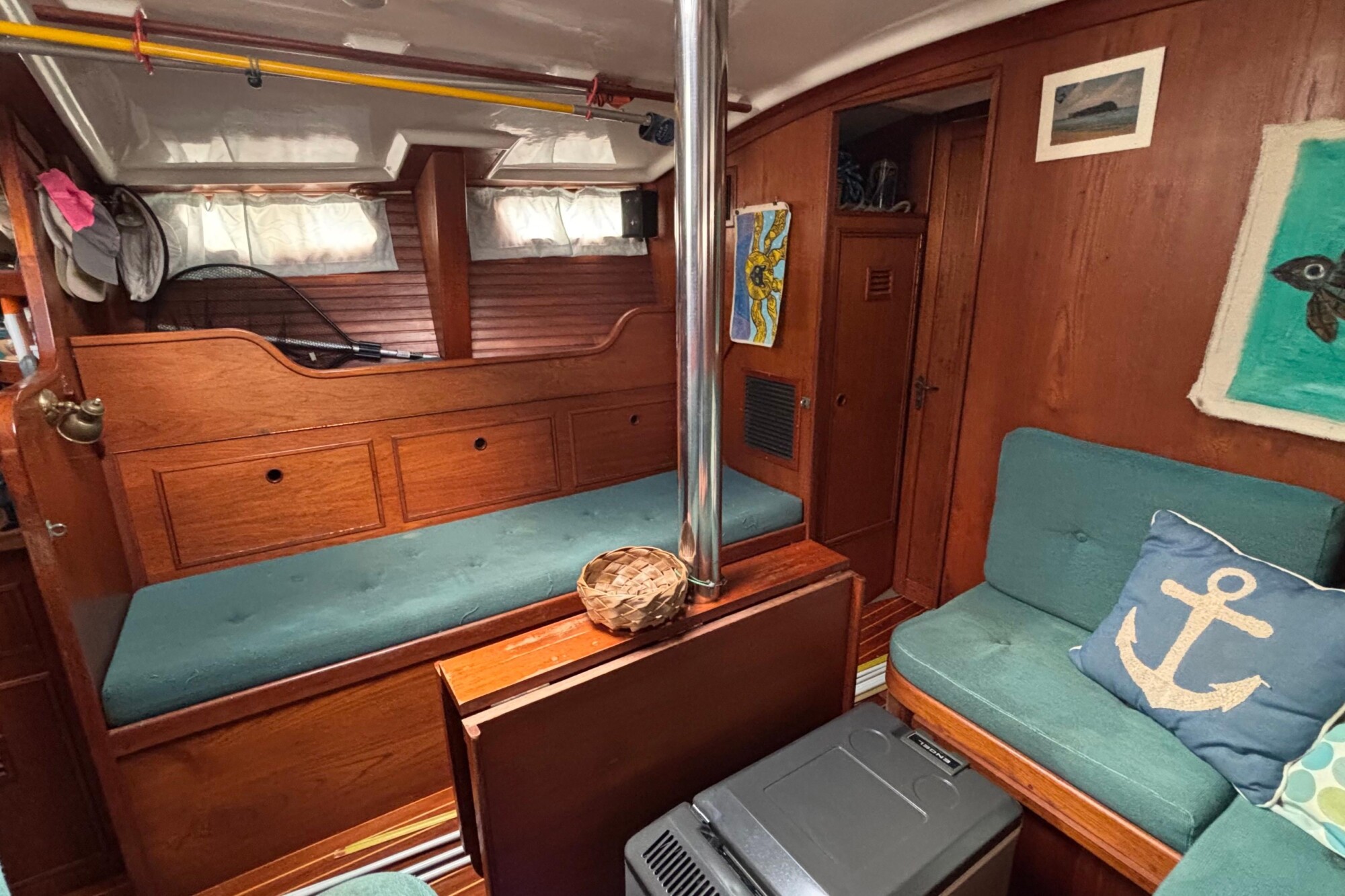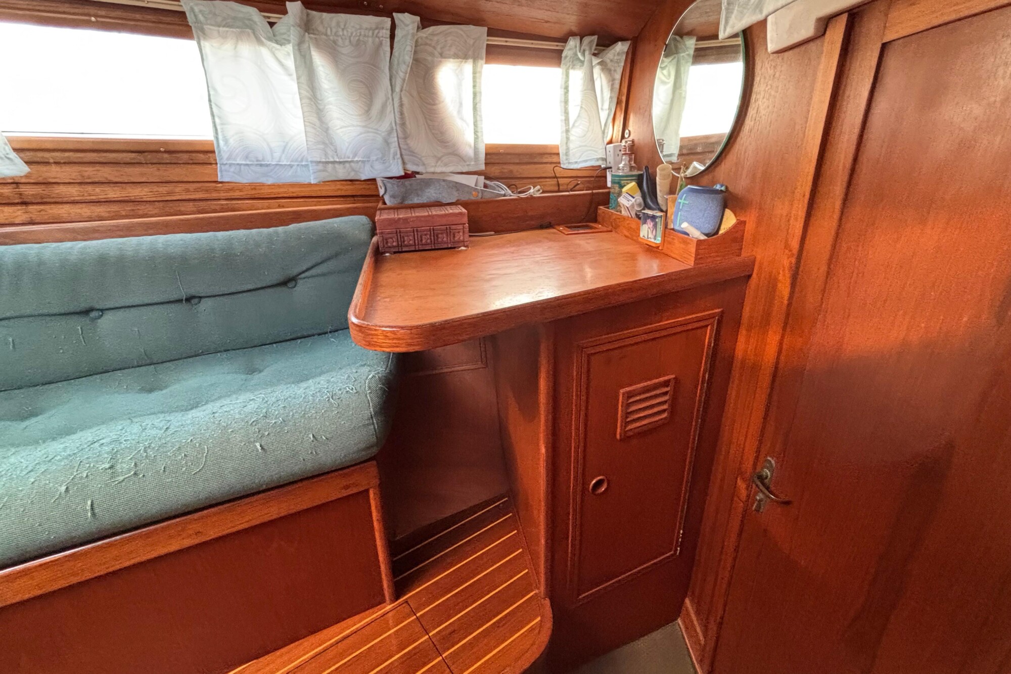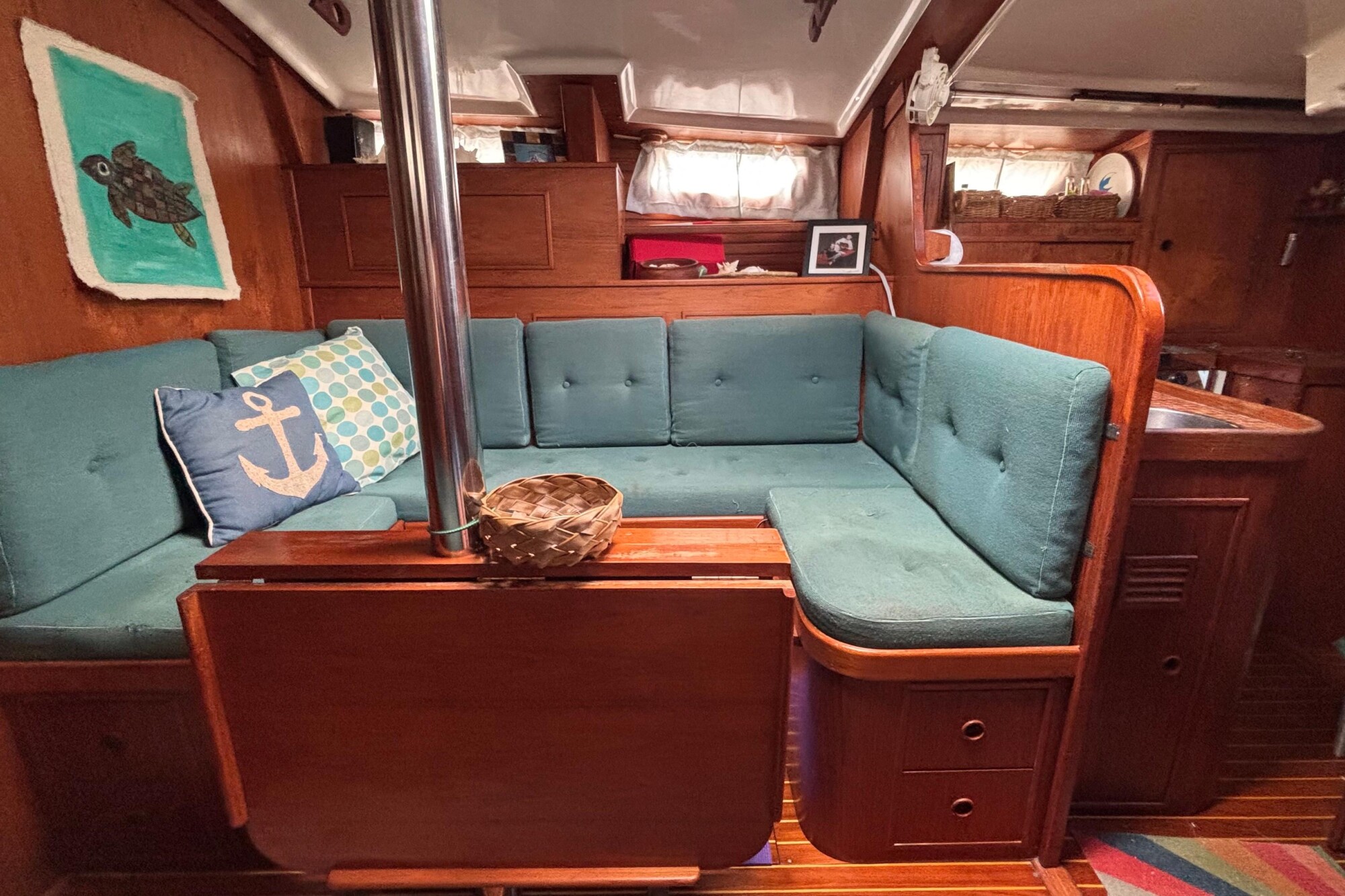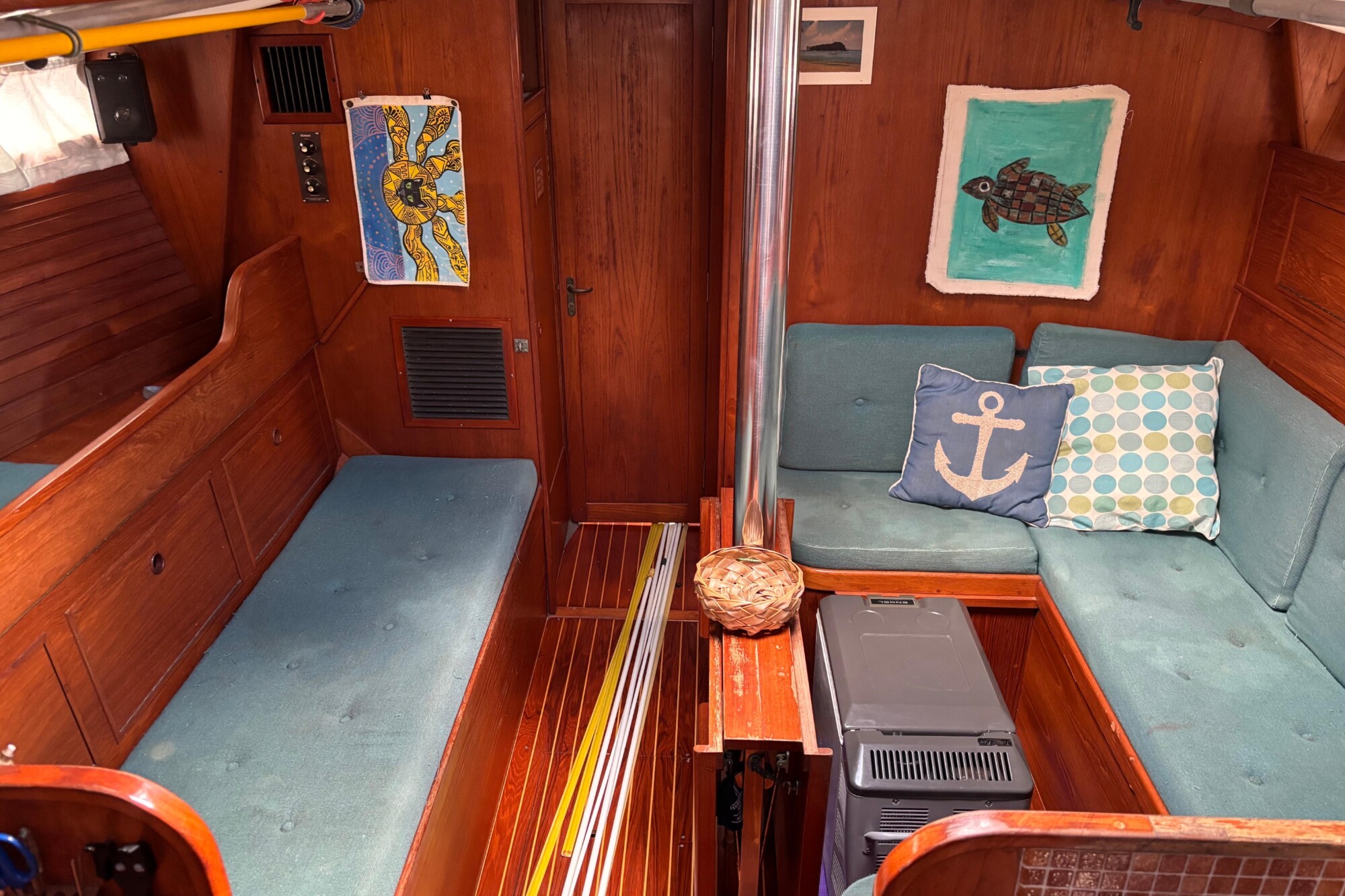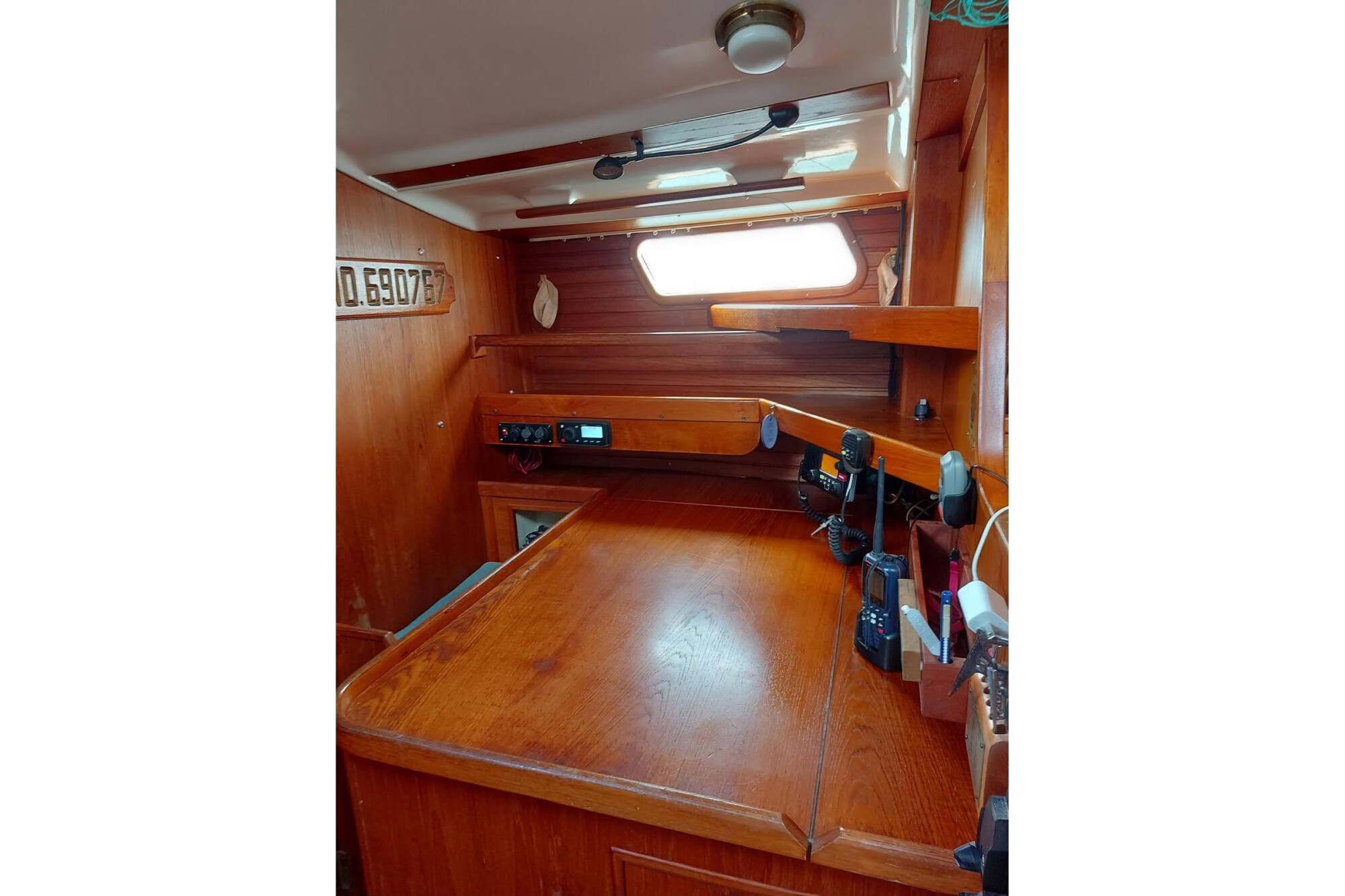 Navigation Station: Opposite the galley, a proper forward-facing chart table with full instrumentation and electrical panel within easy reach.