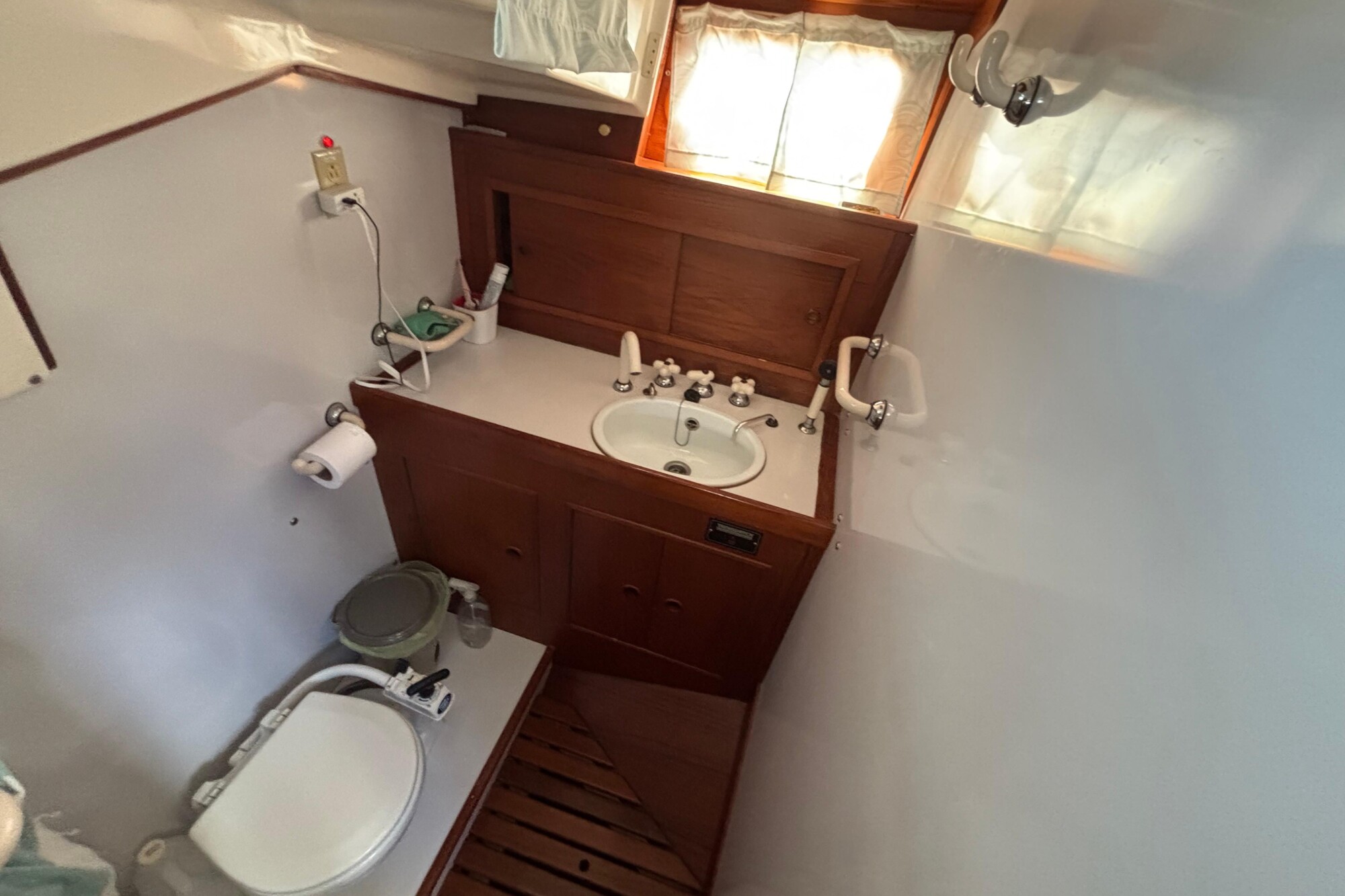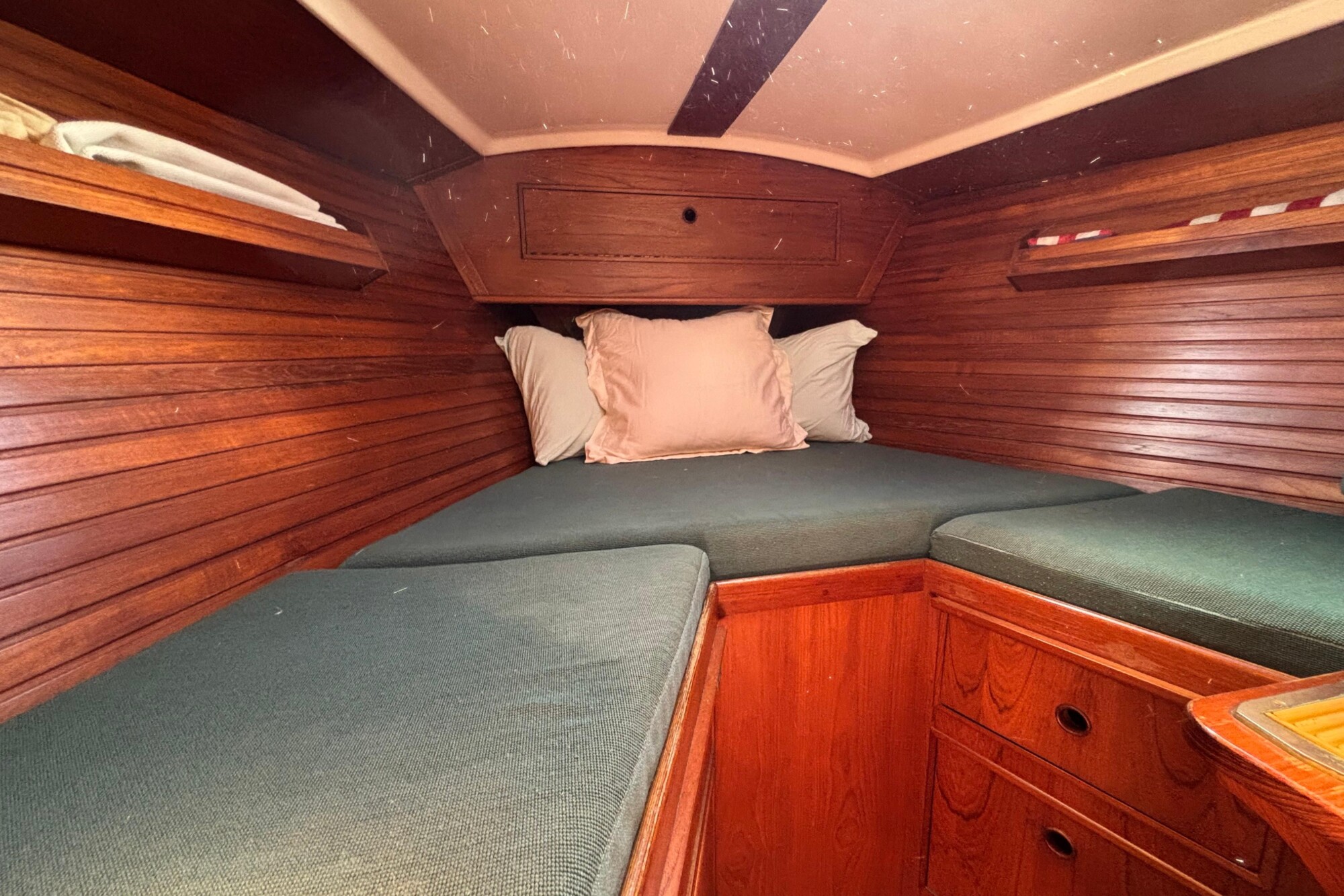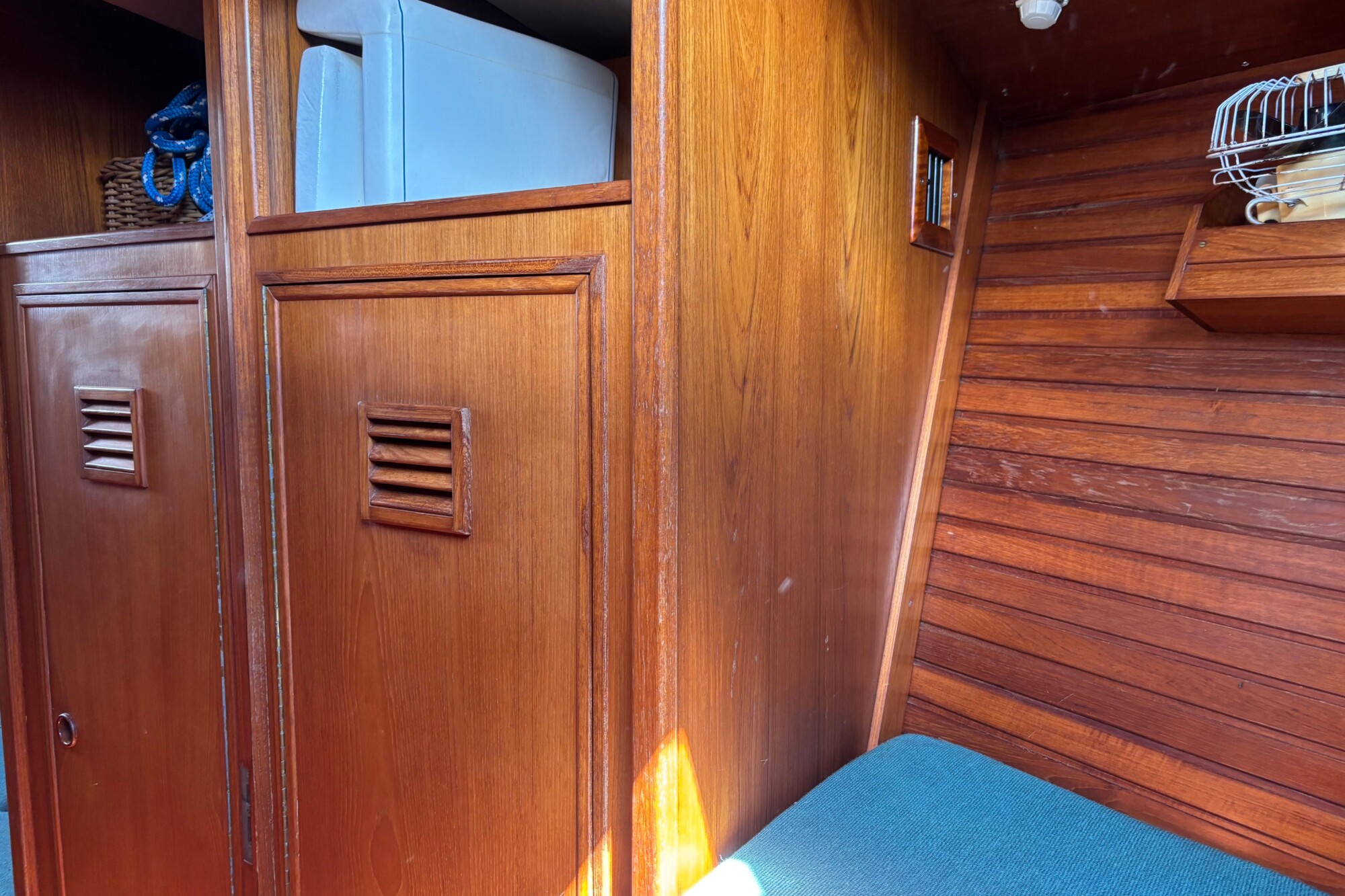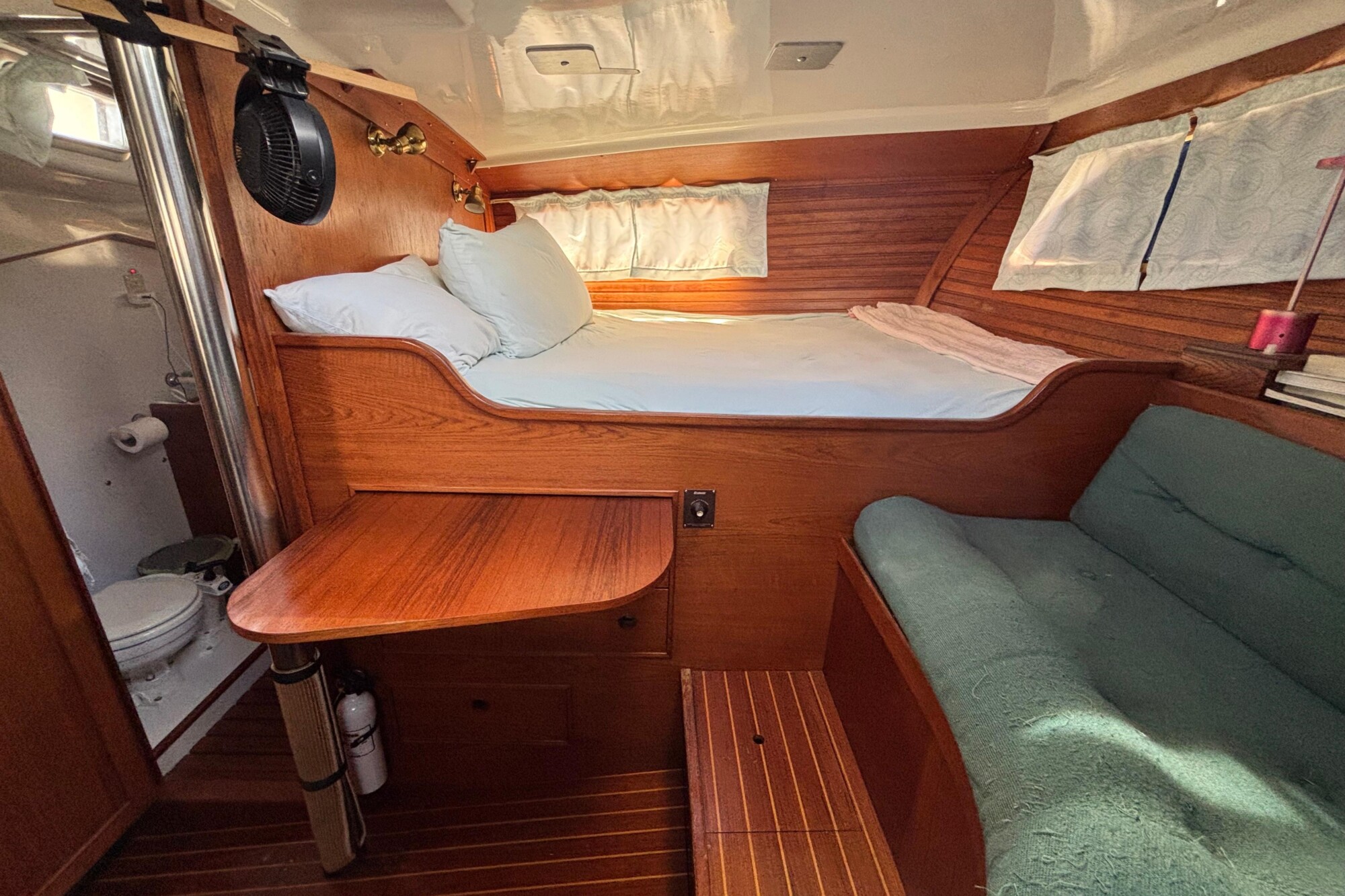 Aft Cabin: The private owner’s suite aft features a queen size berth, dressing seat, hanging locker, and ensuite head with toilet, basin, and shower. Excellent ventilation and comfort.