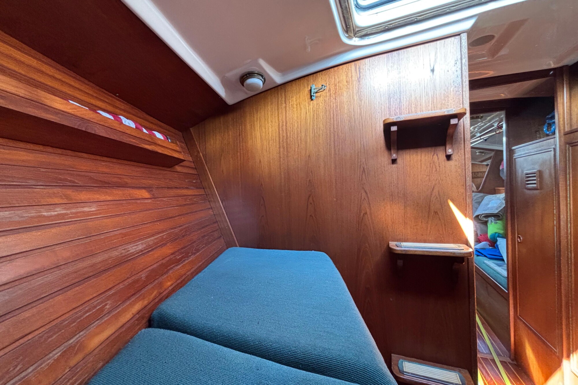 Walk Thru: To part the walk thru to the aft cabin has an outboard single bunk with storage below