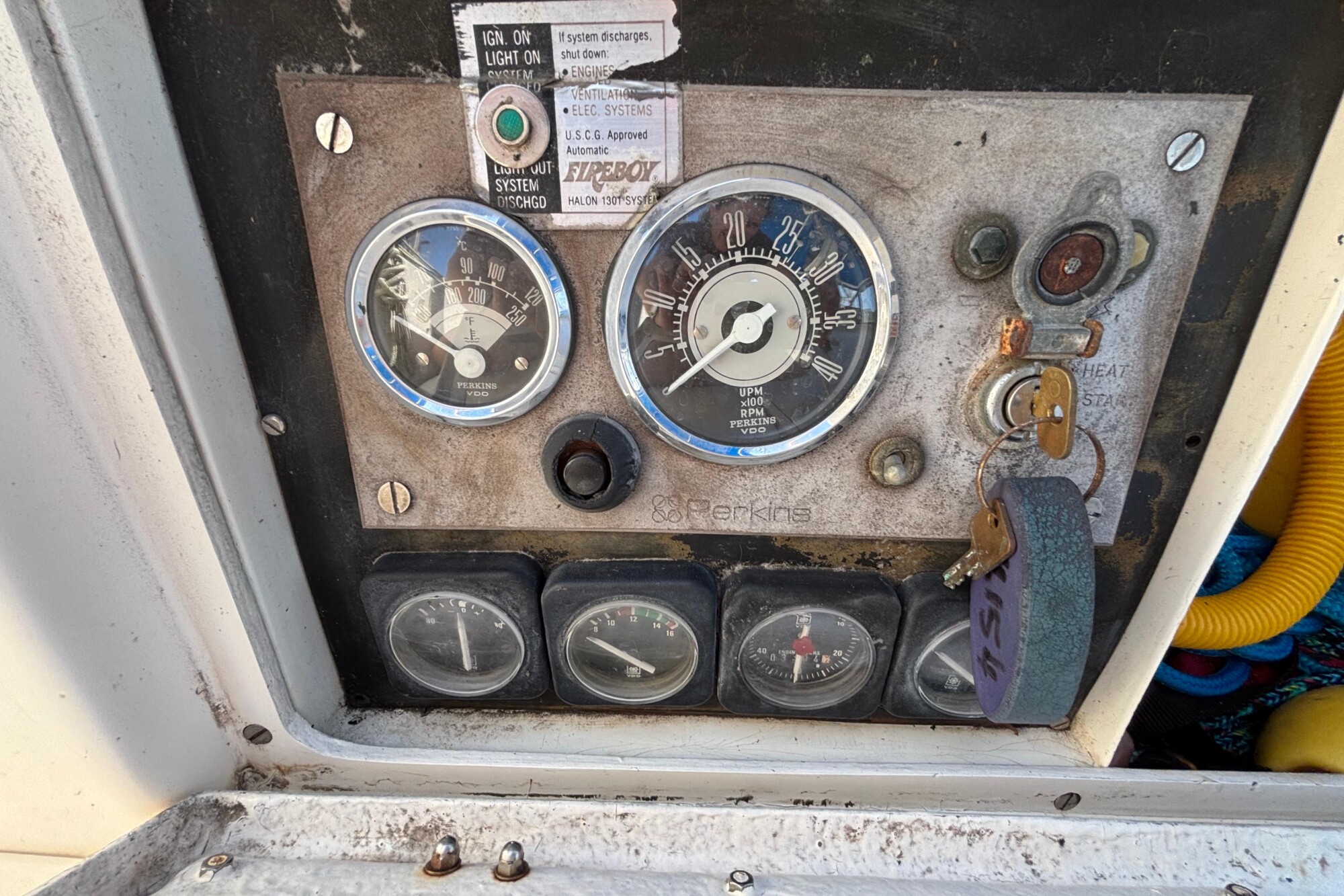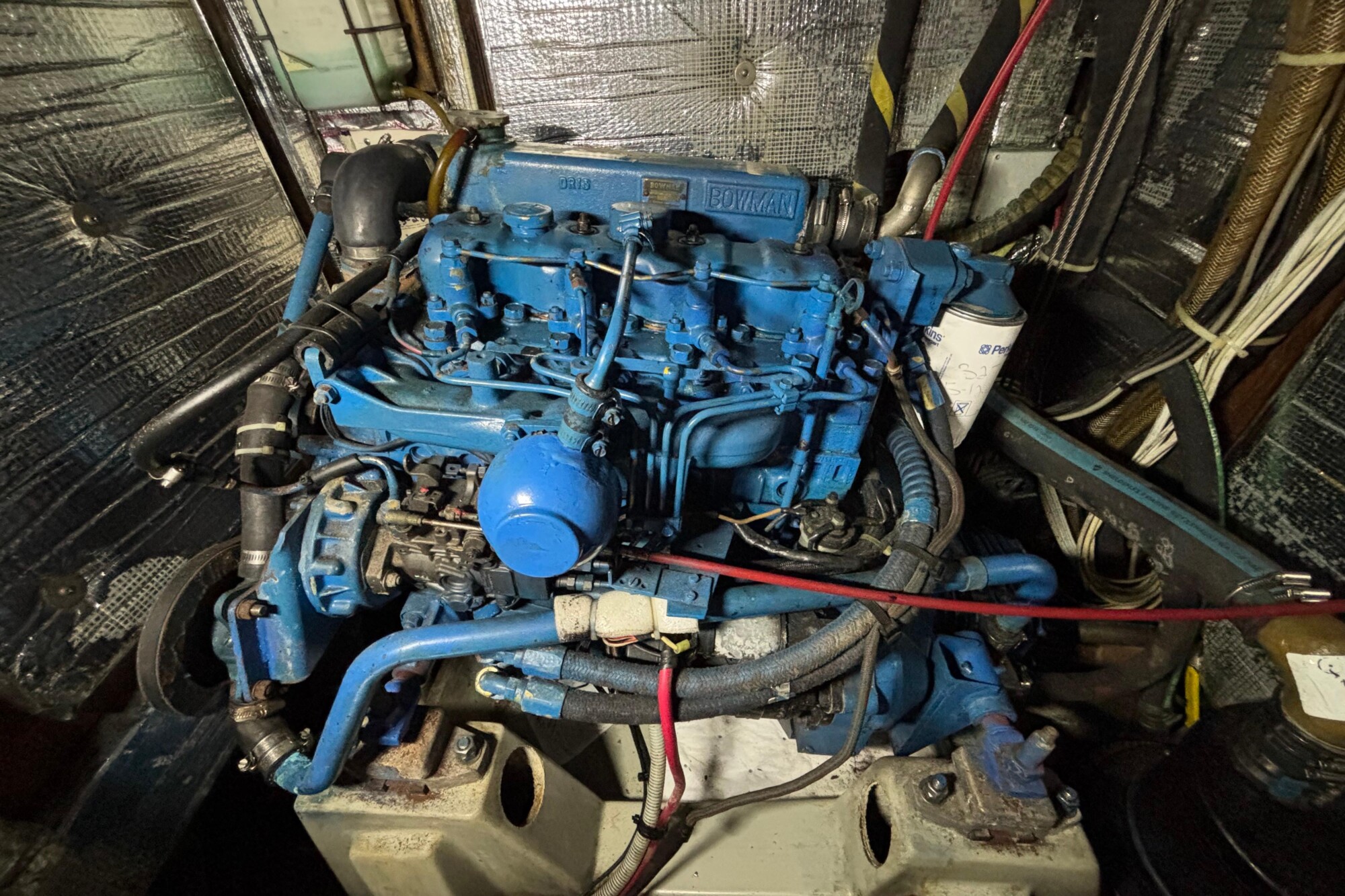 1985 62 HP Perkins 4154 with 3055hrs. Borg wagner velvet drives a 3 blade feathering Maxprop.