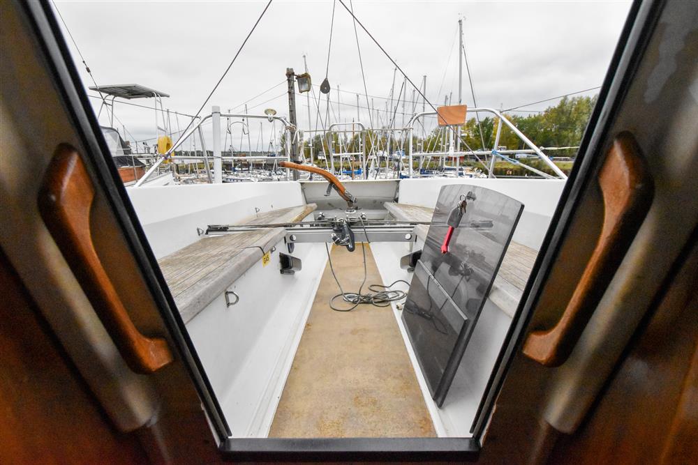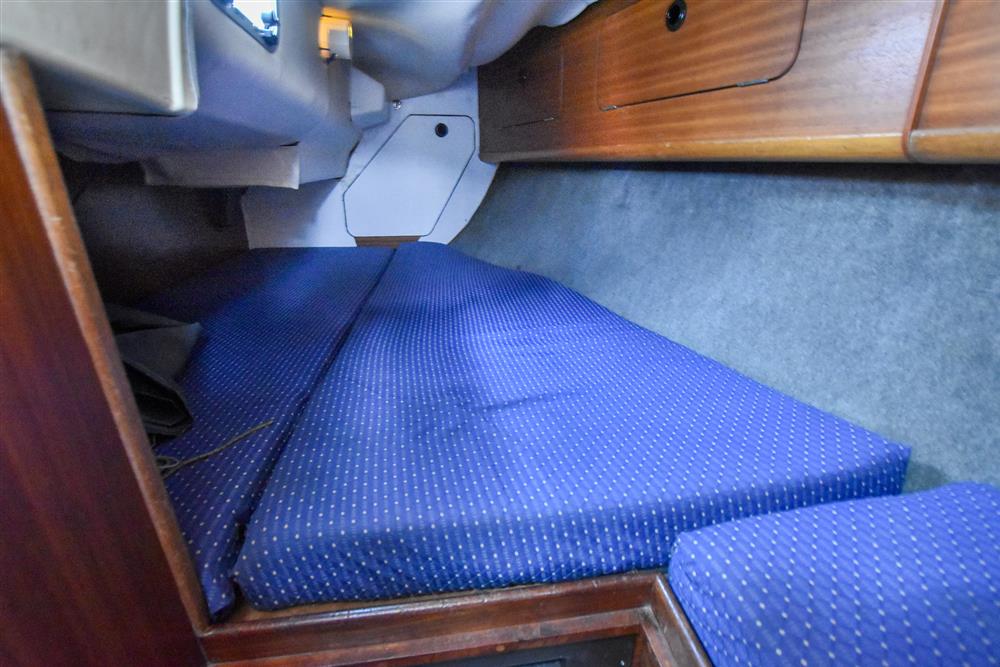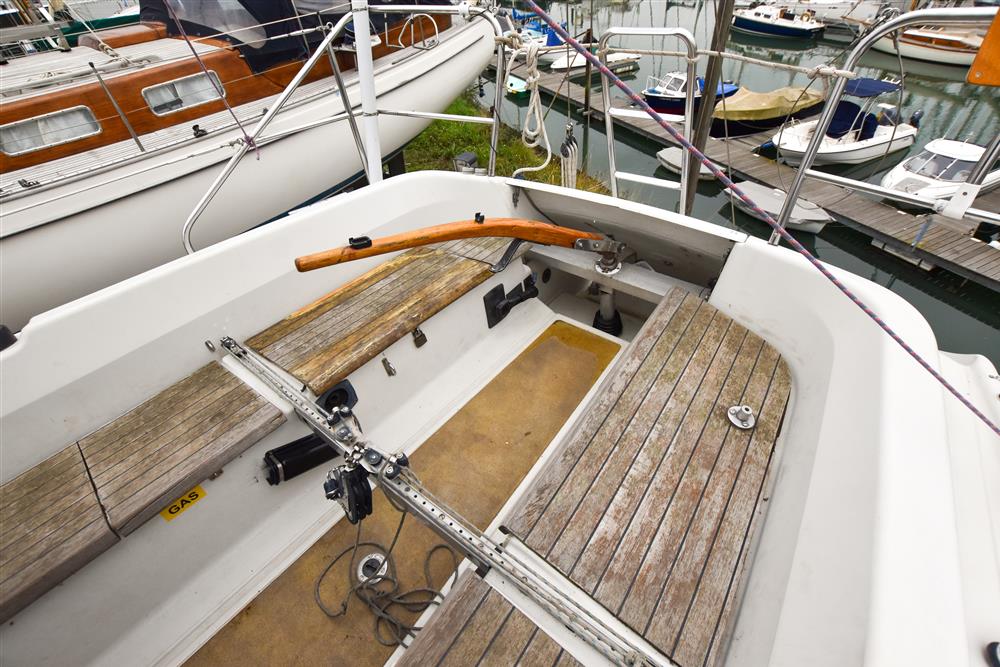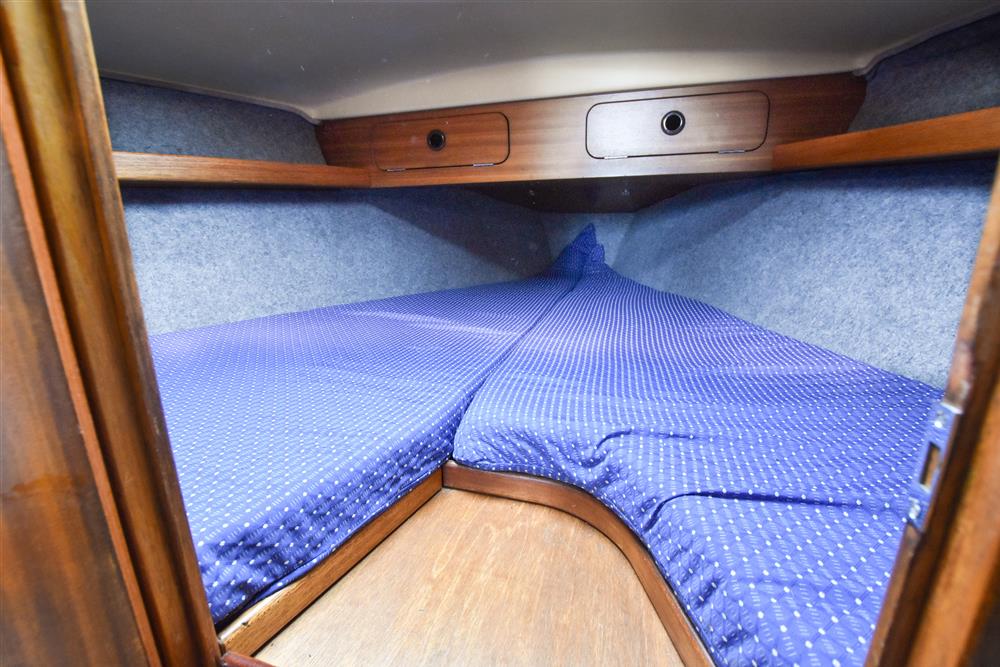 Located behind the companionway is the 1987 Yanmar 2GM20 twin cylinder 18hp diesel engine. Electric start. Seawater cooled. Shaft drive to folding propeller. Rope cutter. Single lever control. 40 litre stainless steel fuel tank. Regularly maintained with a new fuel pump in 2021 and new fuel pipes in 2025.