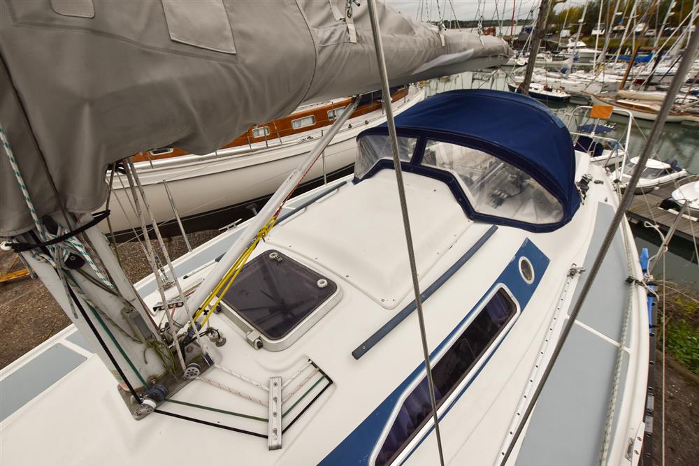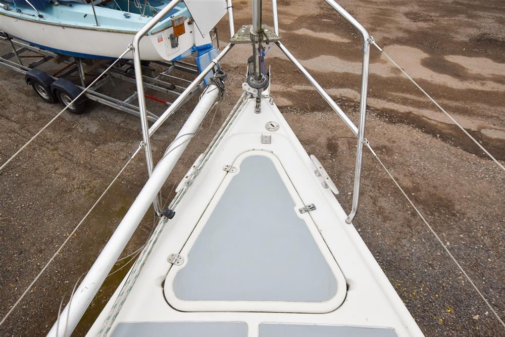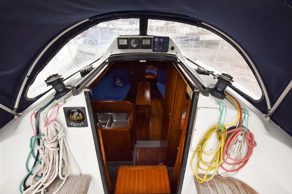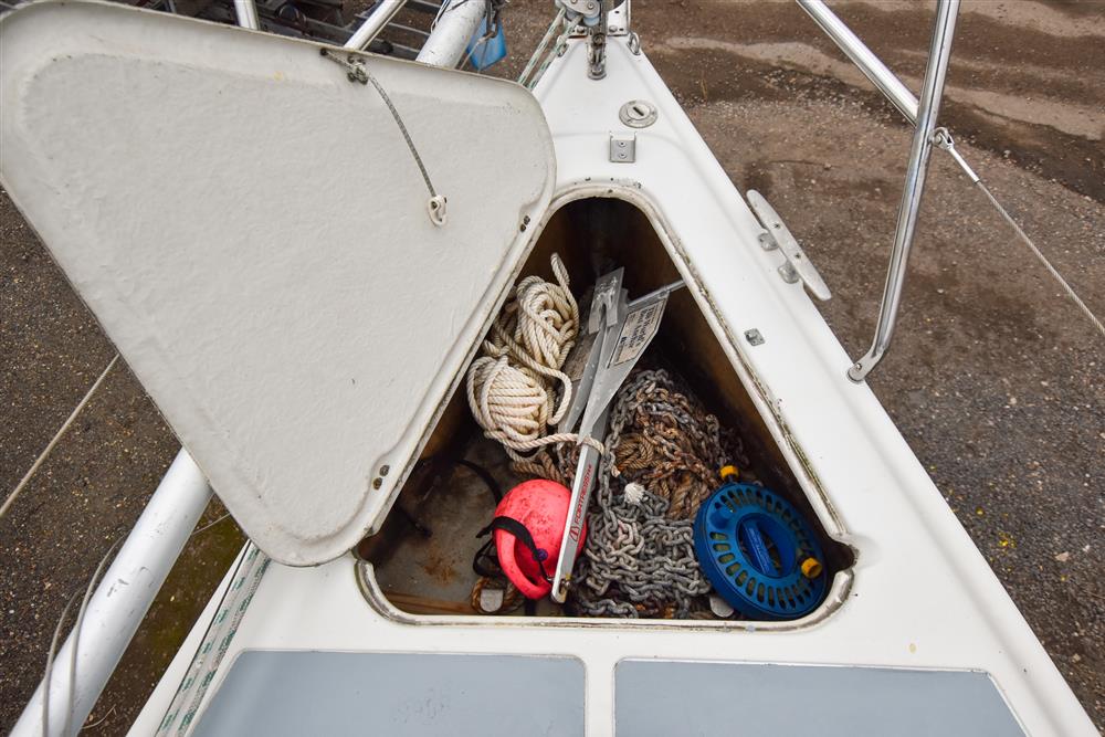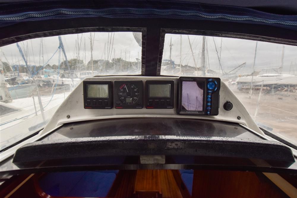 Fractionally rigged Bermudan sloop. Deck stepped alloy mast and boom. Stainless steel standing rigging (2020). Backstay adjuster. Terylene running rigging. Headsail furling system. Slab reefing mainsail with stackpack & lazyjacks. Lines led aft to cockpit. Alloy spinnaker pole. Two Lewmar 30 self-tailing sheet winches. Two Lewmar 16 self-tailing halyard winches.Navigation Equipment