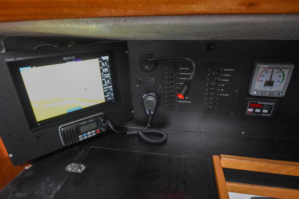 Located under the companionway is a sound proofed engine box is the Yanmar 1GM10 fitted new in late 2020. Single cylinder, 10hp, naturally aspirated. Saildrive to a two bladed folding propeller (both new late 2020). Seawater cooled. Electric start. Single lever controls. Saildrive diaphragm new in 2020. Fully service history until 2023.