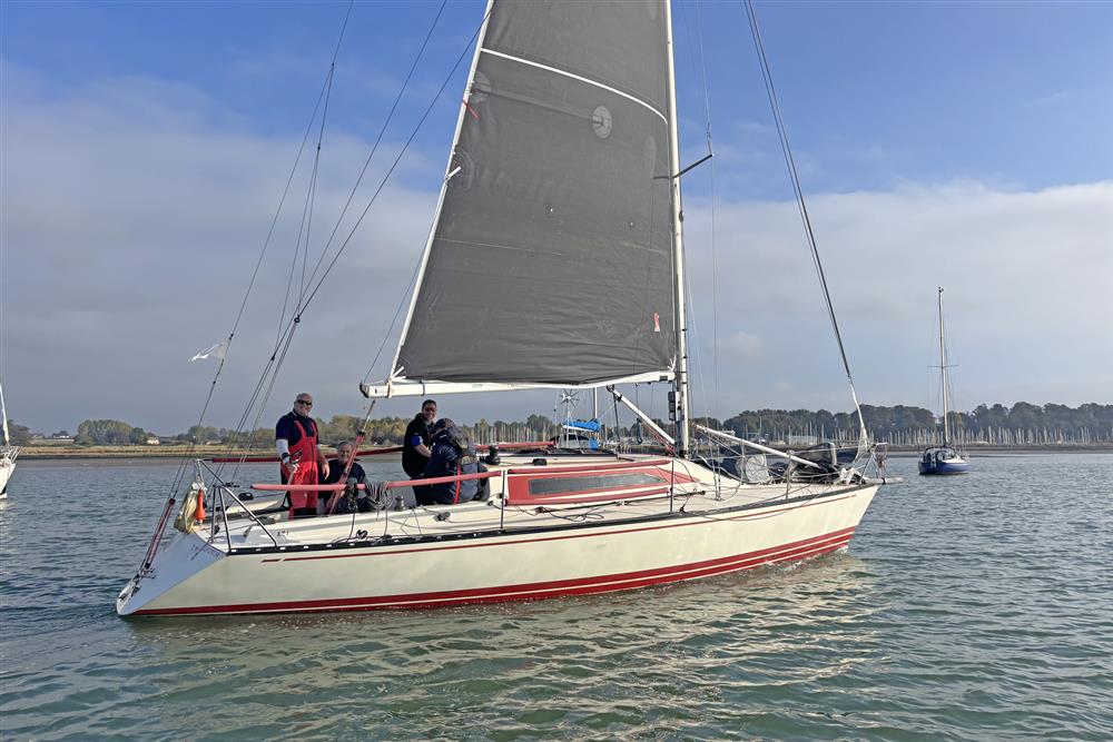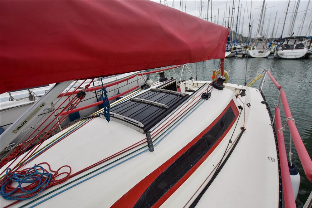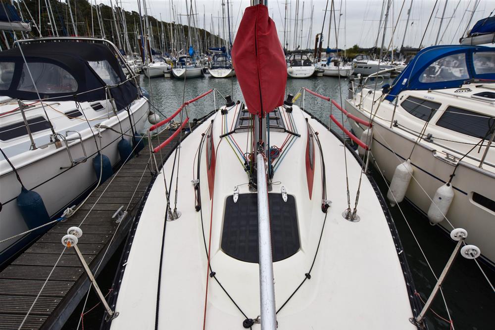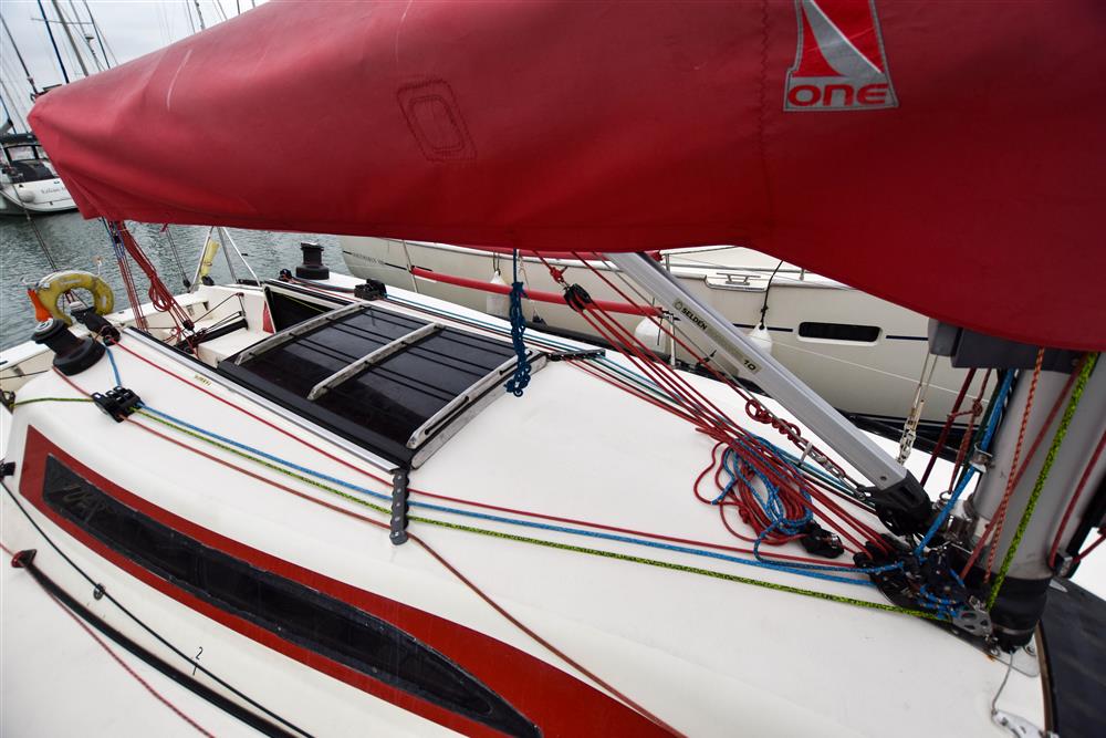 Fractionally rigged Bermudan sloop. Keel stepped Alloy mast by Jon Mast (new 2016). Stainless steel standing rigging (new 2017). Spectra running rigging (various ages). Alloy spinnaker pole. Dyneema running backstays (new late 2024). Carbon detachable bowsprit. Two Harken self-tailing halyard winches. Two Lewmar Harken self-tailing sheet winches (new 2023). Mainsheet with fine & course adjustment, main-sheet traveller. Selden gas kicker strut. Backstay flicker (new 2023). Deck clutches & jammers.