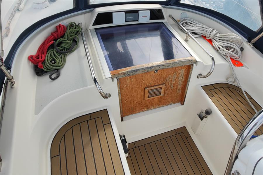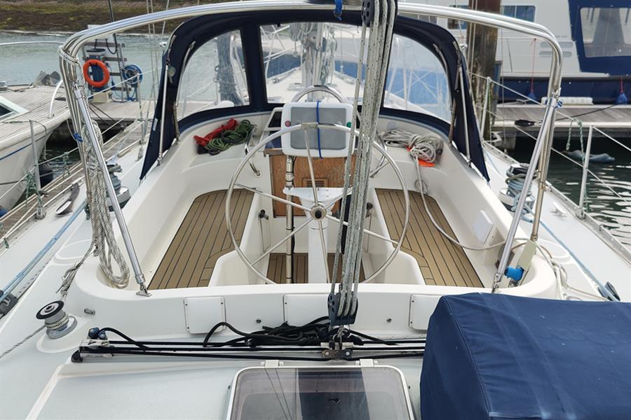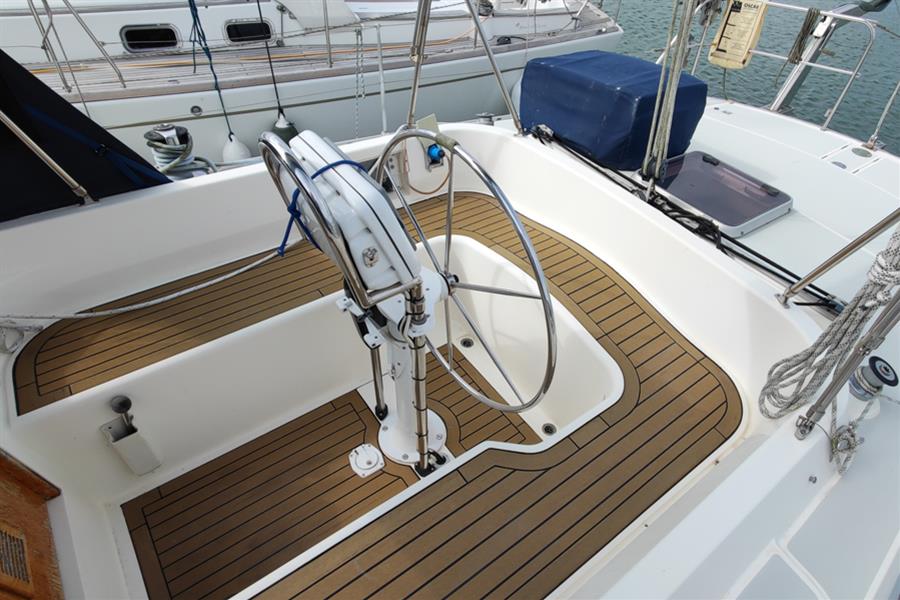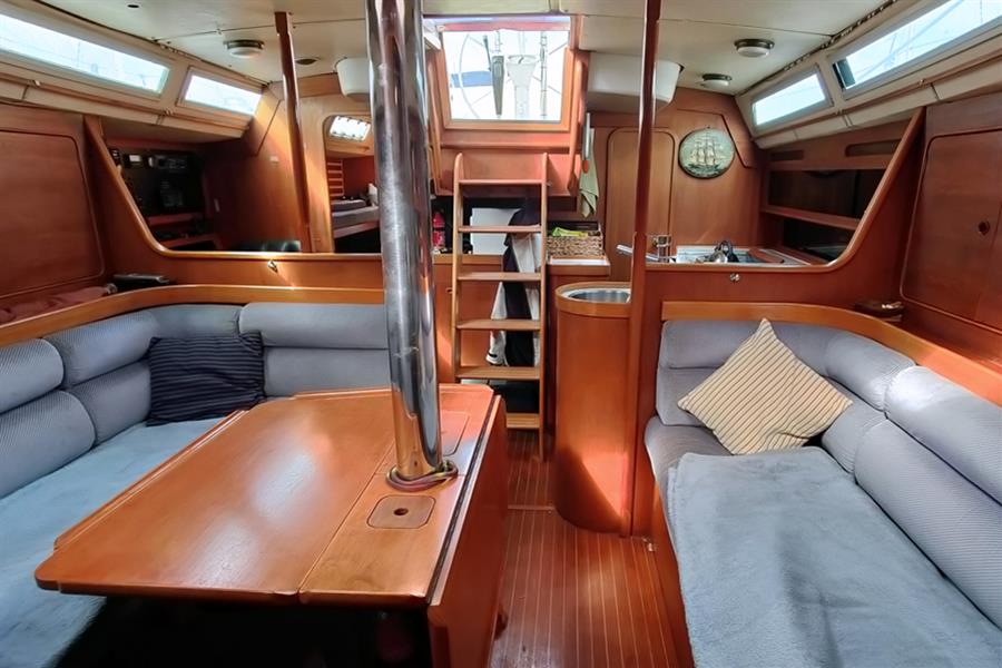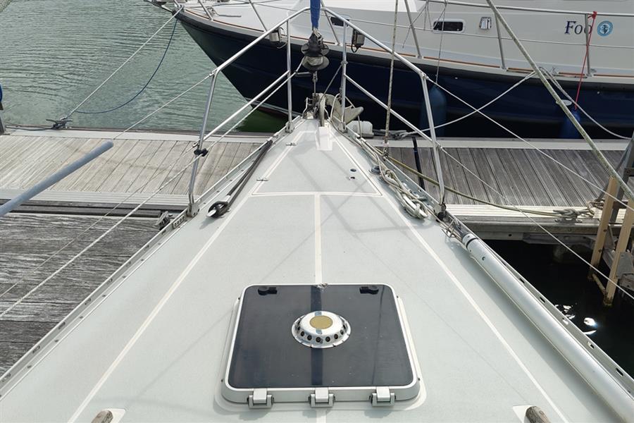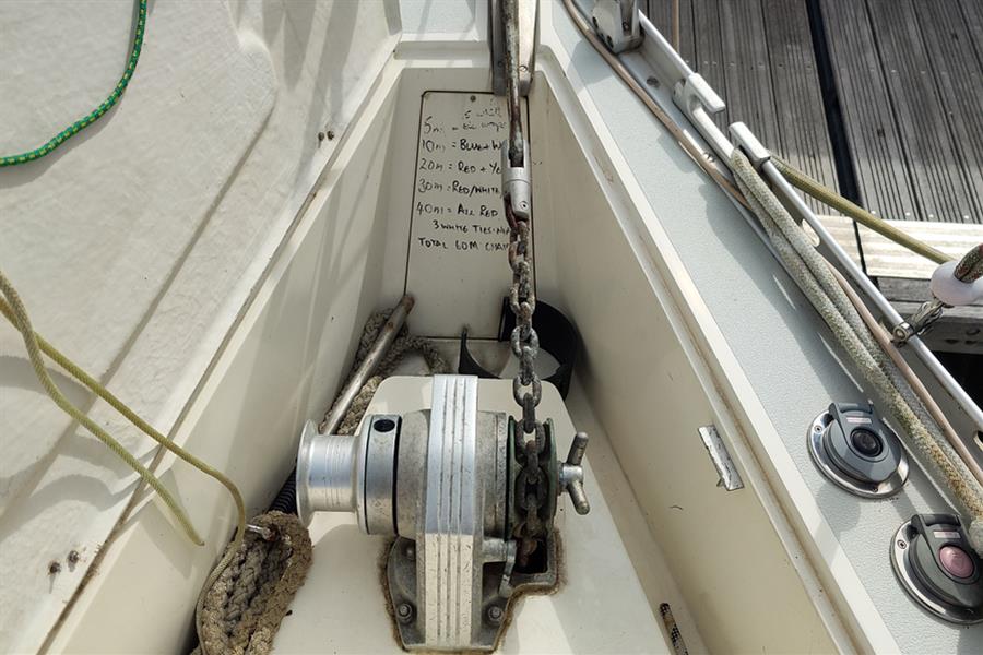 Masthead rigged sloop. Silver anodised Kemp mast and boom. Double aft swept spreader deck stepped rig. Solid kicker. Stainless steel standing rigging (new 2019). Slab reefing mainsail with stackpack and lazyjacks. Furlex headsail furling system. Genoa sheet tracks with adjustable cars. 2 x Lewmar 52 2-speed self-tailing genoa sheet winches. Mainsail and Genoa halyards retained on the mast (for lower resistance and increased durability) with Lewmar 40 self-tailing, Lewmar 40, and 2 x Lewmar 30 mast-mounted winches. Mainsheet with adjustable track aft of cockpit. Lewmar 8 ancillary winch.