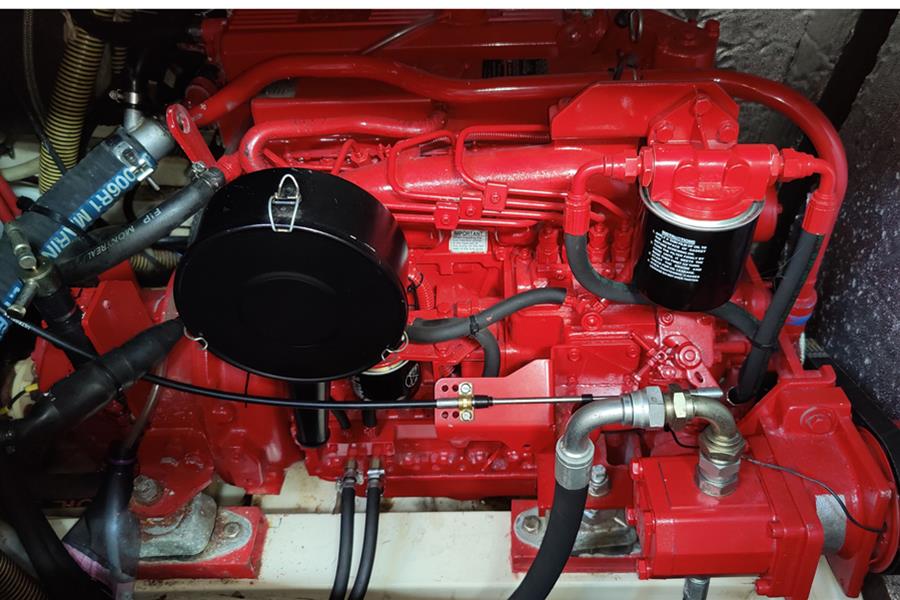 Located abaft companionway, Beta B60 HE 58hp 4-cylinder naturally aspirated marine diesel engine (new 2009). Freshwater cooled via heat exchanger. Single lever controls with electric start. Hydraulic pump for powering bow thruster and anchor windlass. Whitlock wheel steering. Plastic 250L fuel tank. Shaftdrive to Brunton Autoprop 3- bladed feathering propeller. Hydraulic bow thruster with controls at helm.