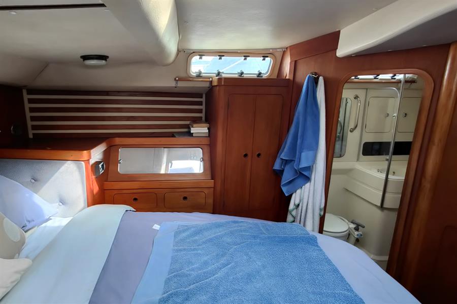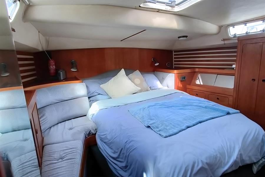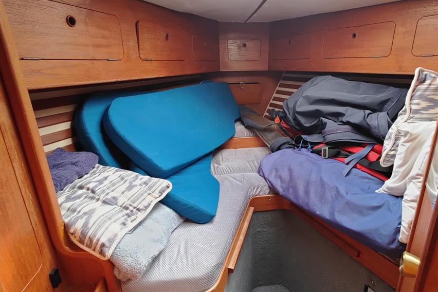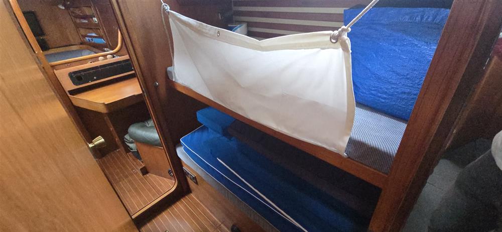 PASSAGEWAY CABIN: Located to starboard, this passageway is the main access to the aft cabin and is fitted with two single bunk berths single berth with stowage below. Other Moody owners have adapted this area in the past to offer more hanging space and effectively create a 'walk-in wardrobe' and dressing area, and it also provides excellent engine access via a large side panel.