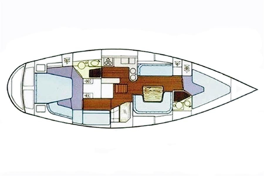 The Moody 425 layout offers up to 8 berths in 4 cabins with two double berth sleeping cabins each with en suite access to separate heads compartments. There is approx. 6'3" max headroom in the saloon and galley, and over 6' in both forward and aft cabins.