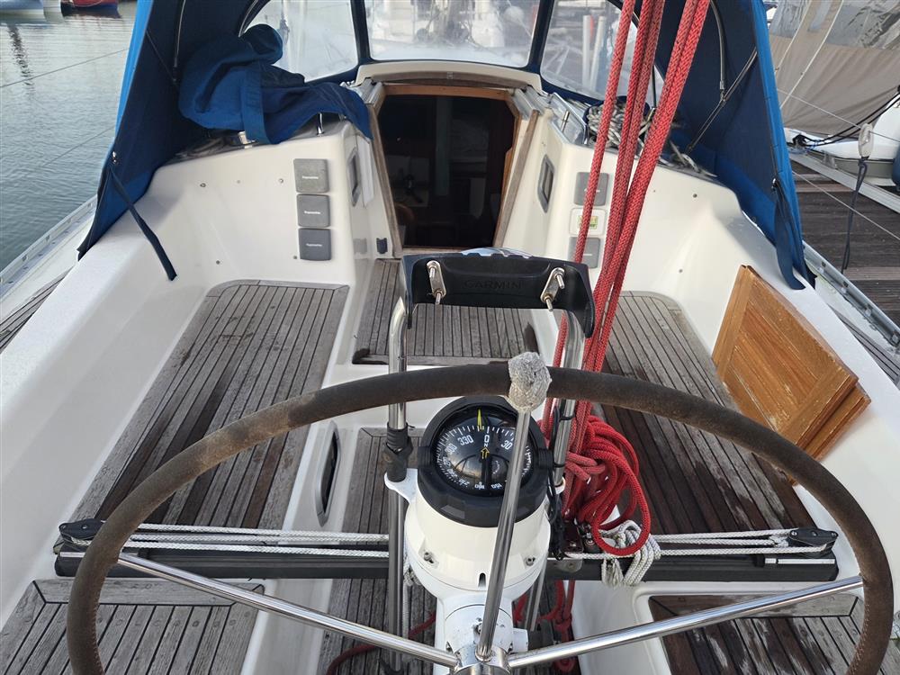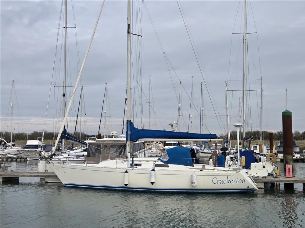 Built by AB Broderna Borjesson in Sweden in 1990 to a Ron Holland design. White GRP hull. Underwater hull epoxied in 2000. White GRP superstructure with moulded-in non-slip surfaces. Teak laid cockpit sole, seats, coamings and bathing platform. Cast iron fin keel. Wheel steering to skeg hung rudder. Aft self-draining cockpit with sugar scoop transom. Bow, stern and midship cleats. Mast support area strengthened 2005. Four new skin fittings and seacocks 2012. Last antifouled 2026.