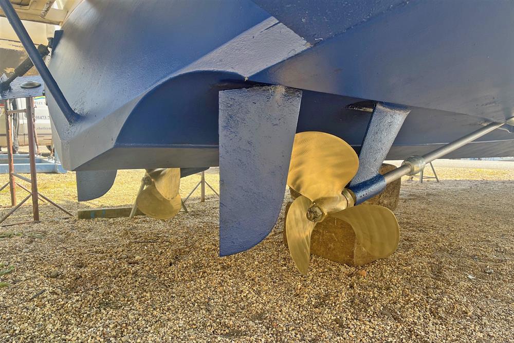 Located beneath the saloon sole are the twin Volvo Penta TAMD61A diesel engines. Six cylinders, 306hp, turbo charged. Freshwater cooled via heat exchangers. Shaft drives to 3 bladed bronze propellers. Single lever controls at both helms. Power-assisted hydraulic steering. Full engine instrumentation at both stations. Trim tabs. Two 500 litre fuel tanks (new 2025). Racor fuel filters. Westerbeke 10kw diesel generator. . Side-Power Bow Thruster (controls at both helms)