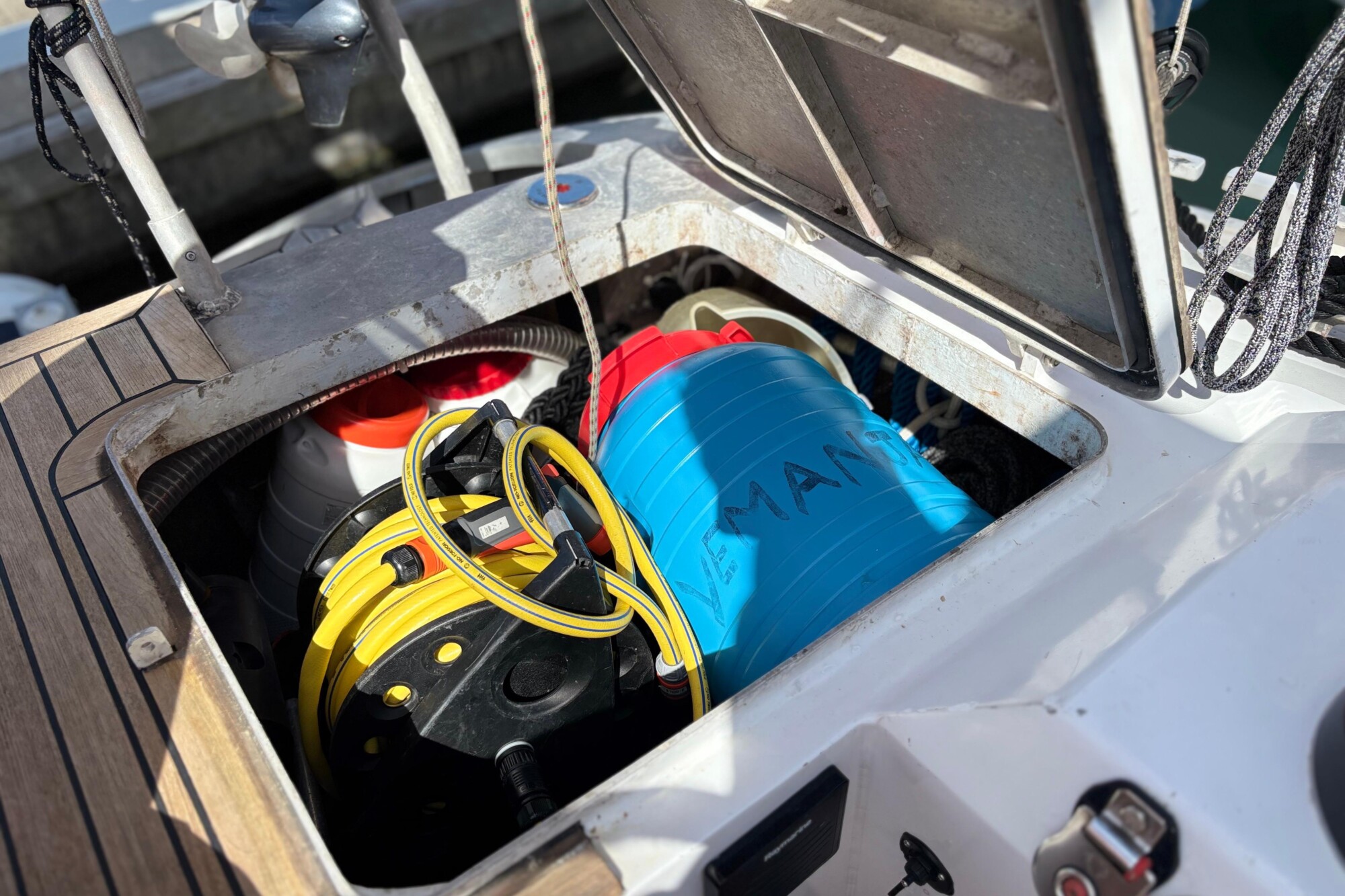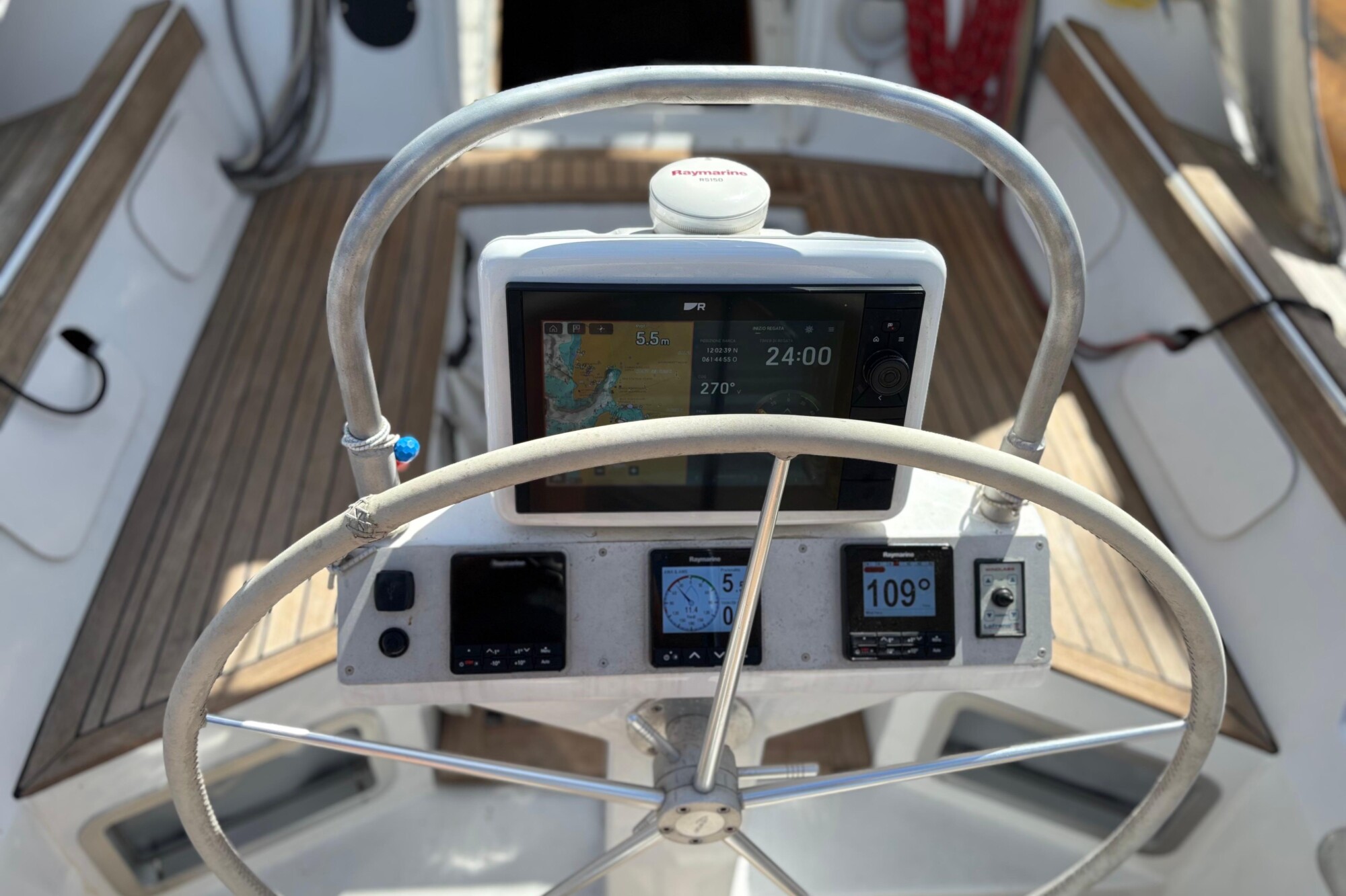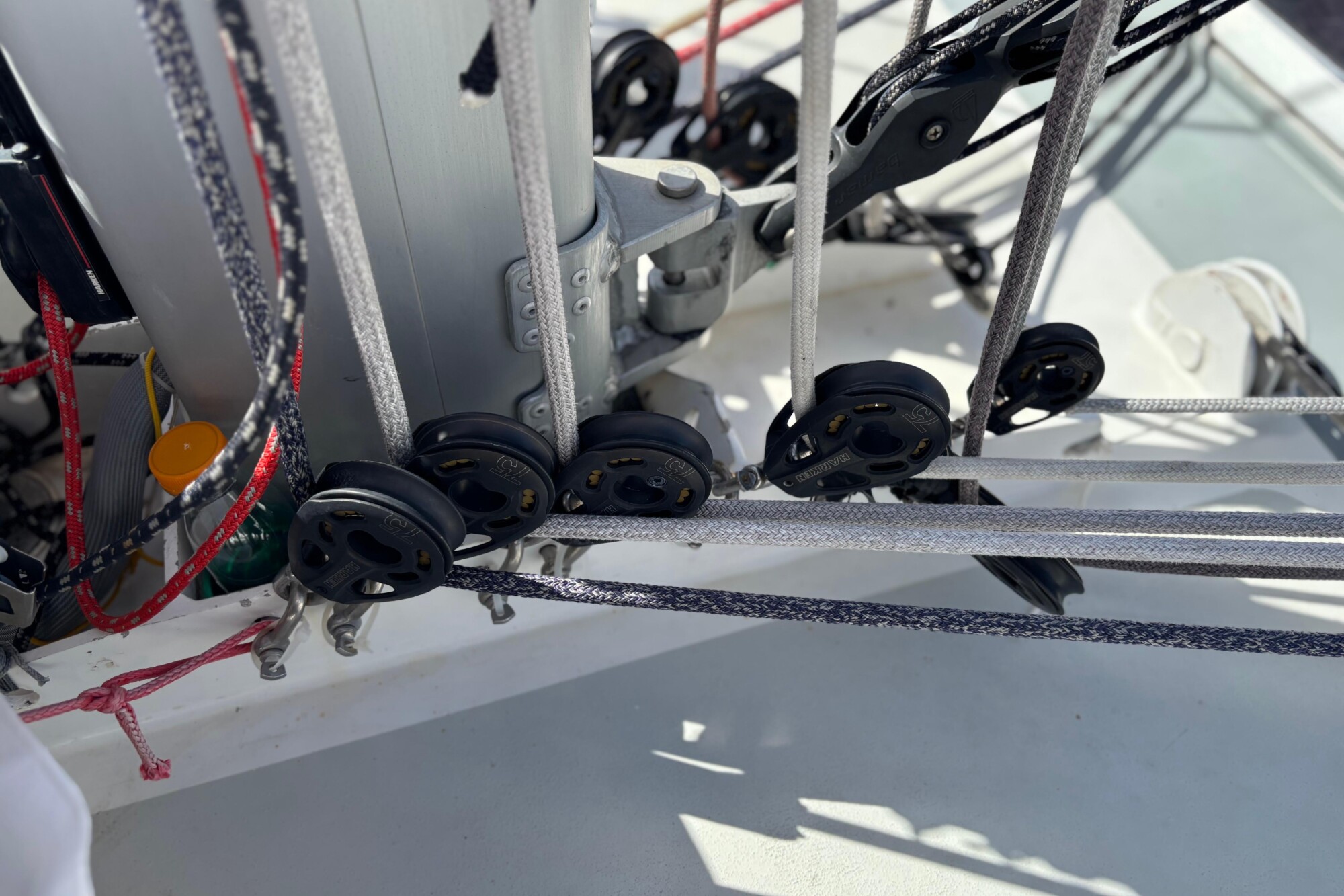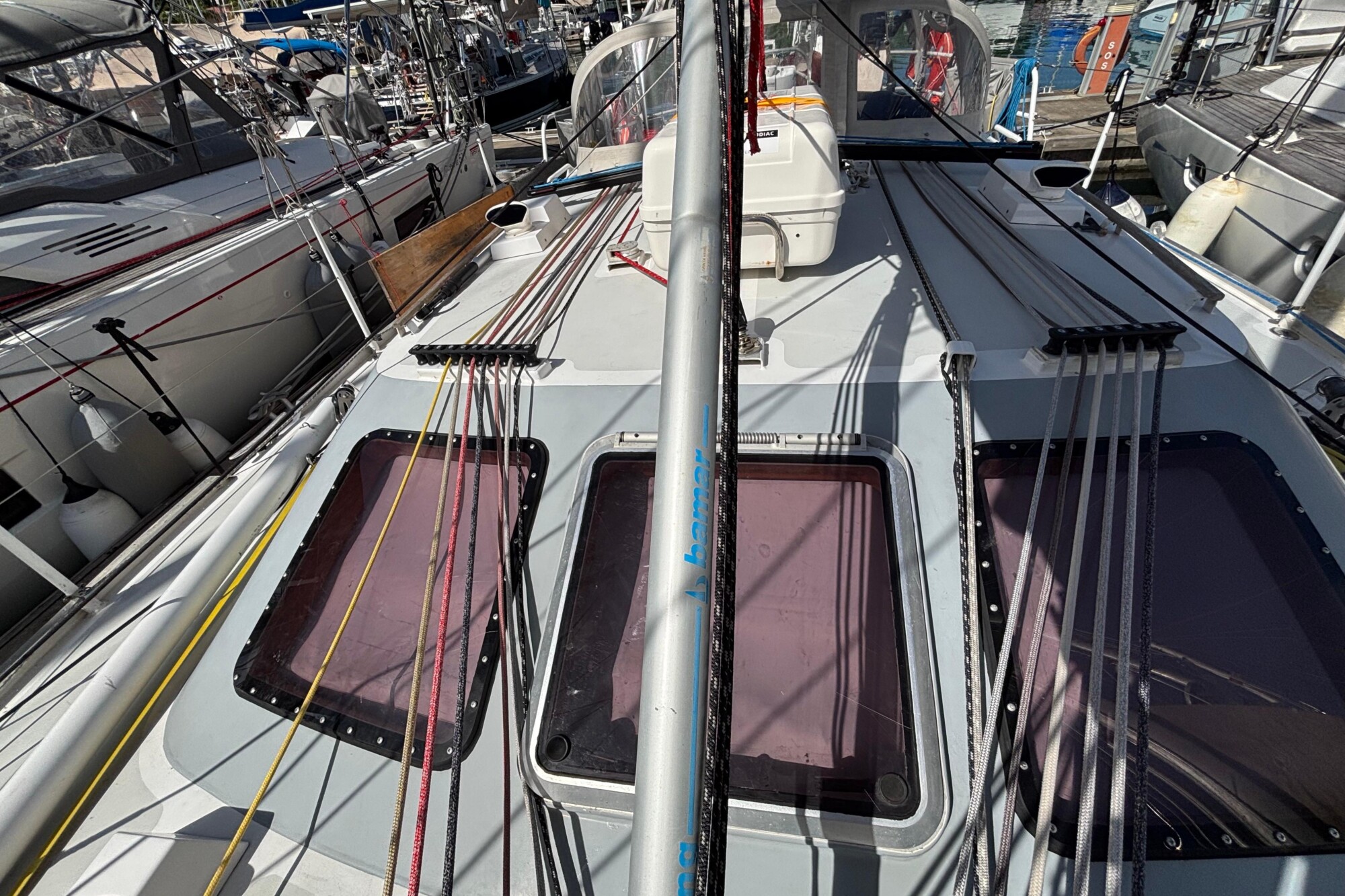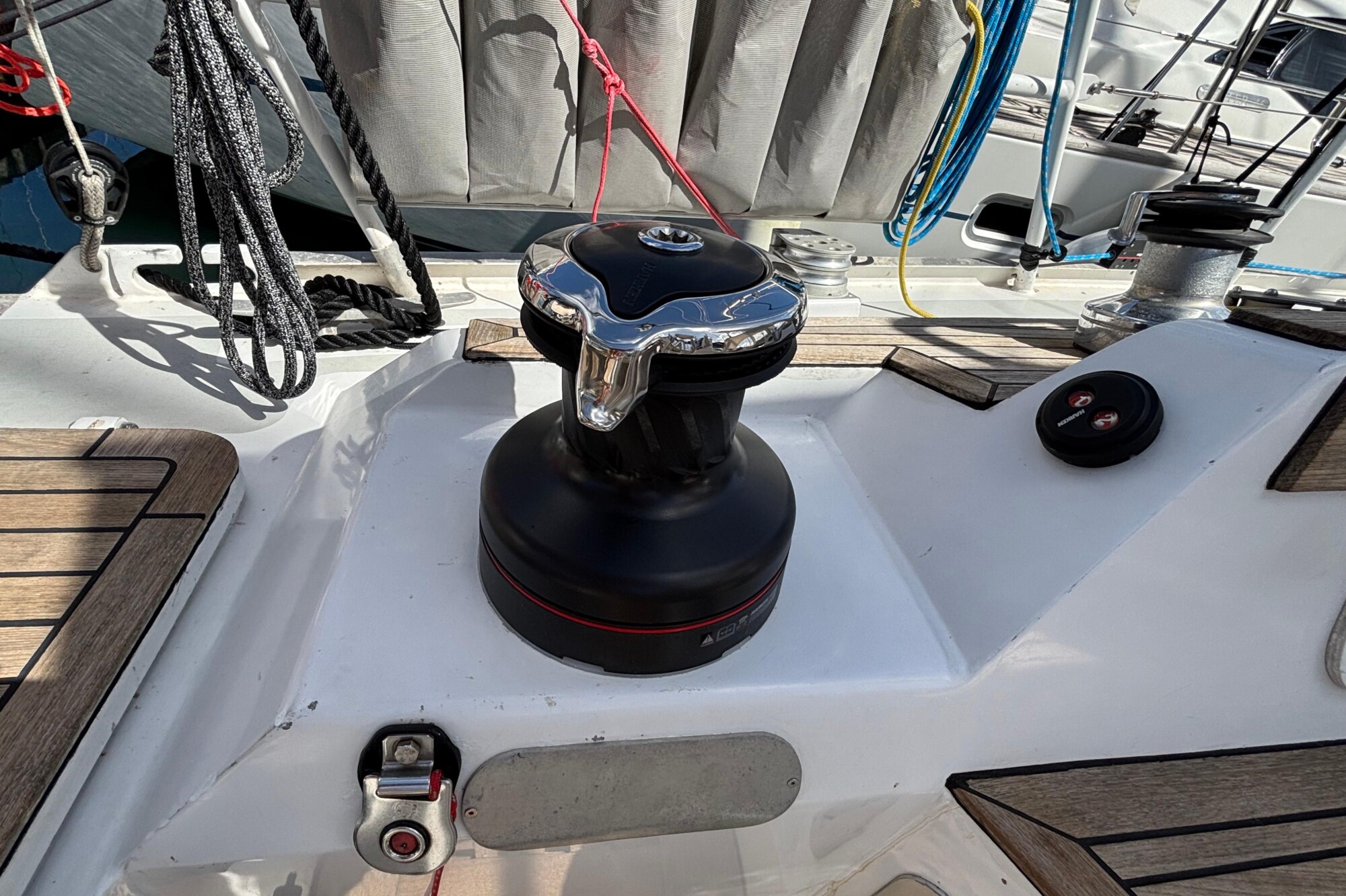 Electrical SystemsSloop rigged keel stepped masthead with aluminum mast and boom - NEW 2023 (replacing inmast furling mast), Rigging (12 mm Danish components) NEW 2023. Running rigging NEW 2023. Furling headsail and slab reefing mainsail with lazyjacks. New Harken electrical winches, mainsail travelers, bow trolley, mast sail track.