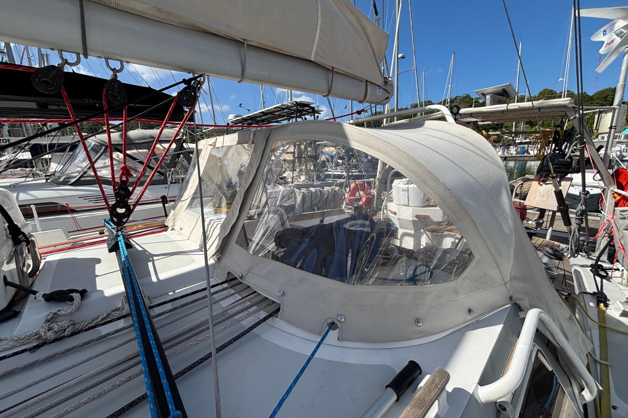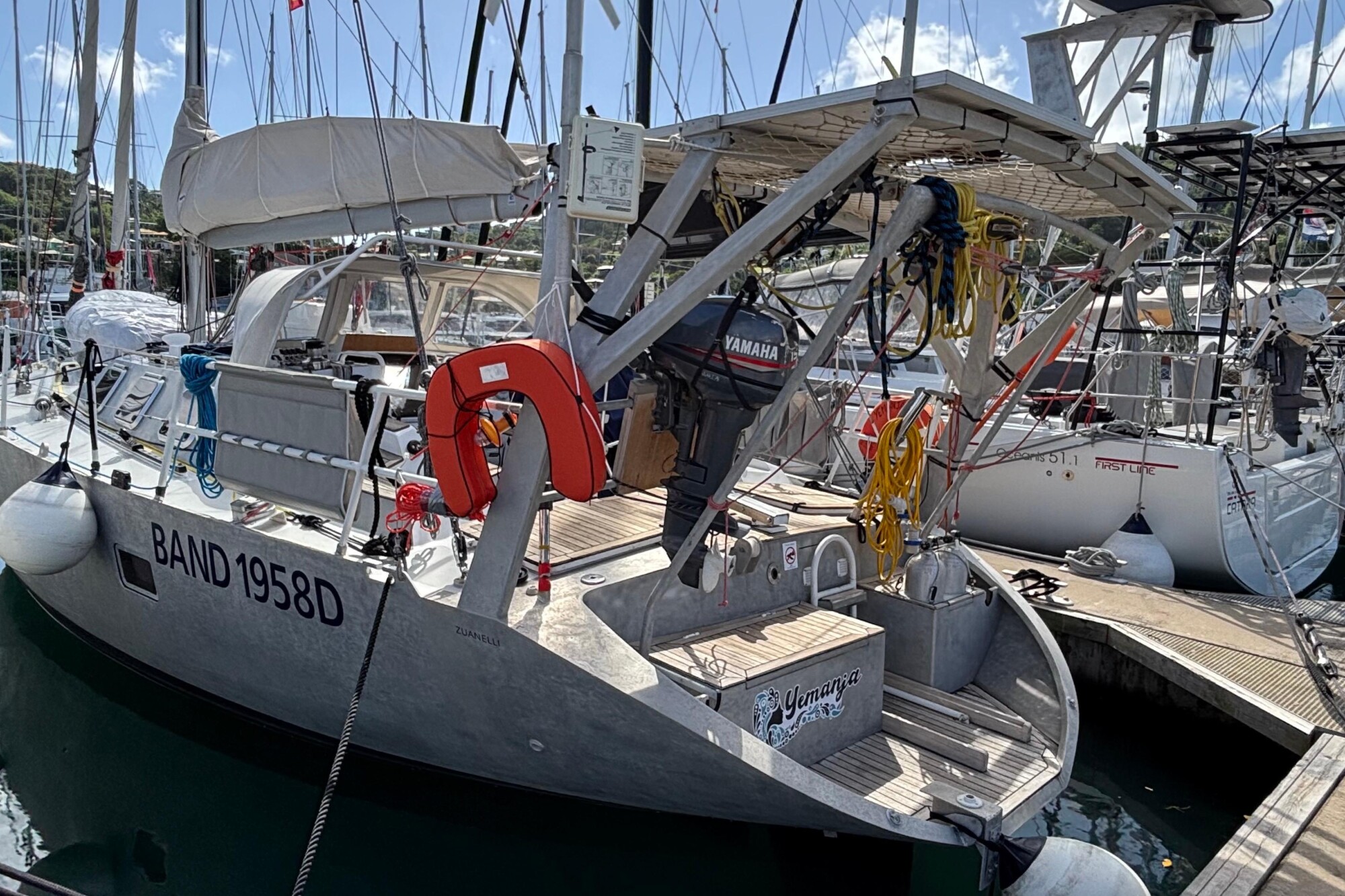 Yemanja was built by the renowned Garcia Shipyard in Normandy, France, known for their robust aluminum construction, ideal for serious offshore cruising, with centerboard design for deep water sailing and coastal exploration. Painted decks with teak in cockpit. Skeg hung rudder. Bare aluminium topsides. Last antifouled Oct 2025