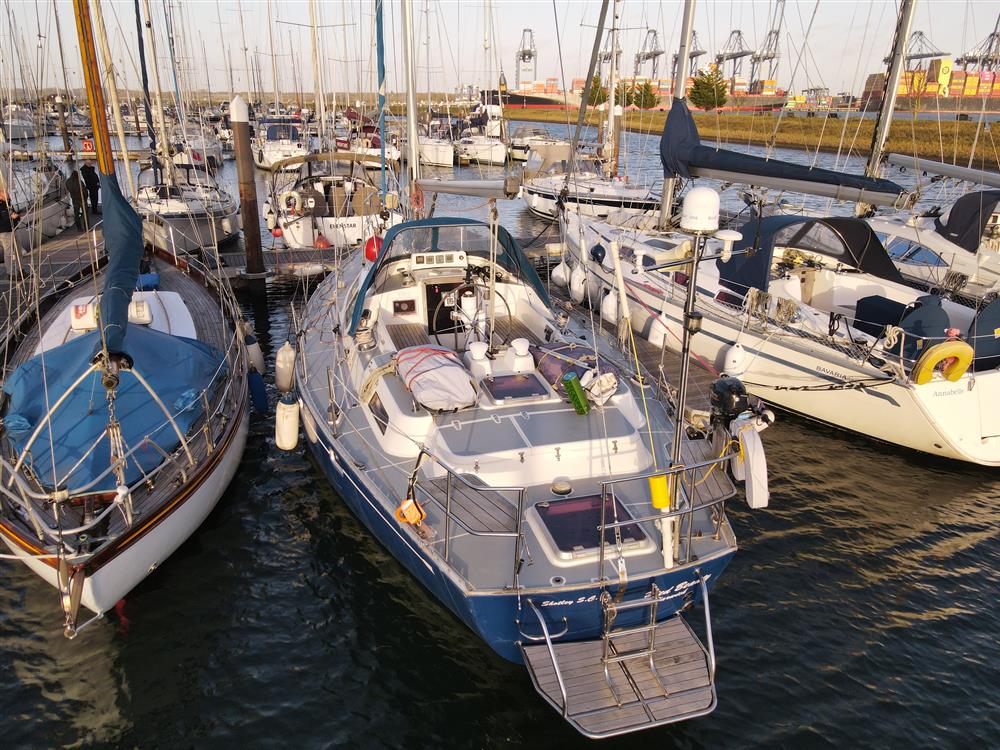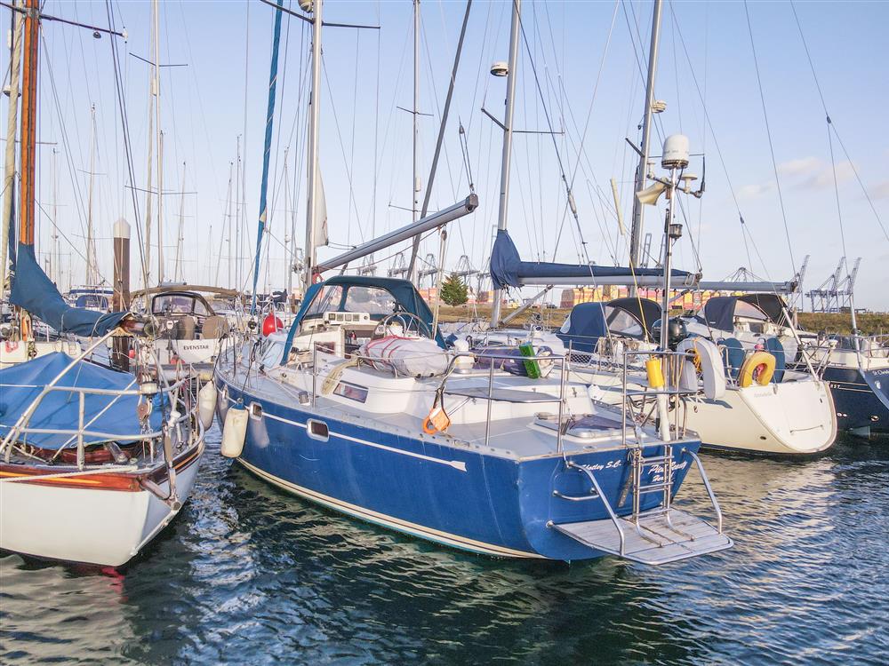 Built by Oyster Marine Ltd in 1991 to a design of Holman & Pye. Blue painted GRP hull with an encapsulated fin keel. White GRP deck and superstructure with a grey painted non-slip finish. Teak laid cockpit seats and sole. Wheel steering to a skeg hung rudder. Hull was sand blasted and epoxied in 2024. Last surveyed in 2021 with a copy available upon request.