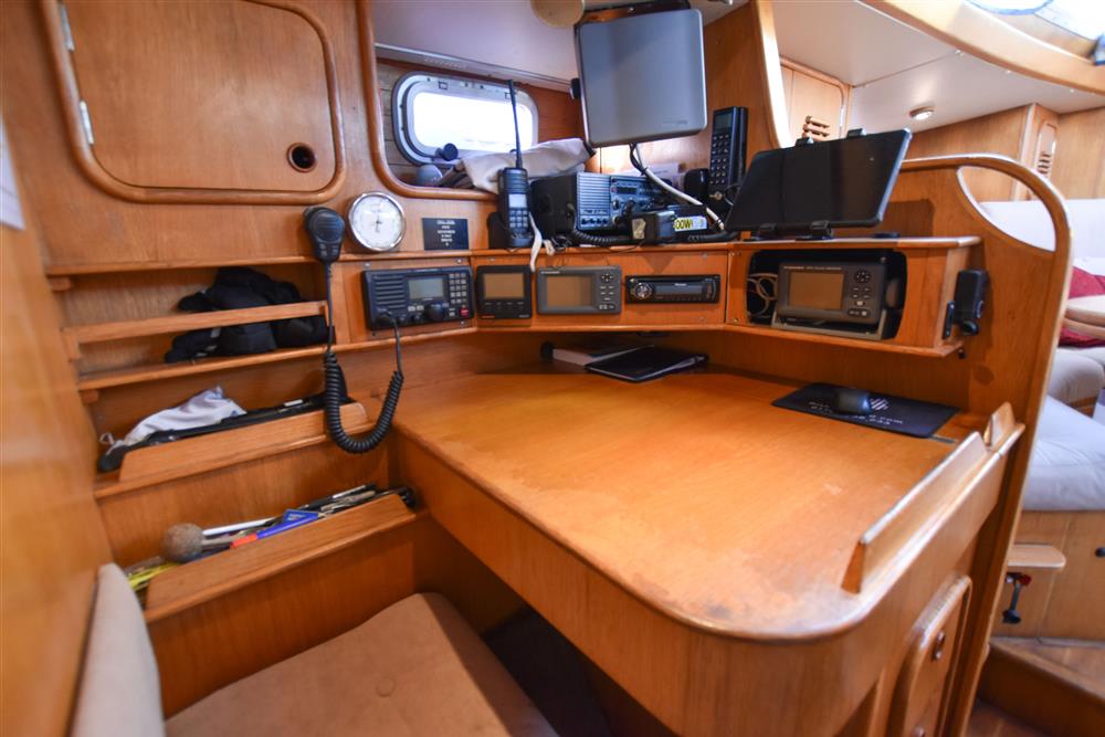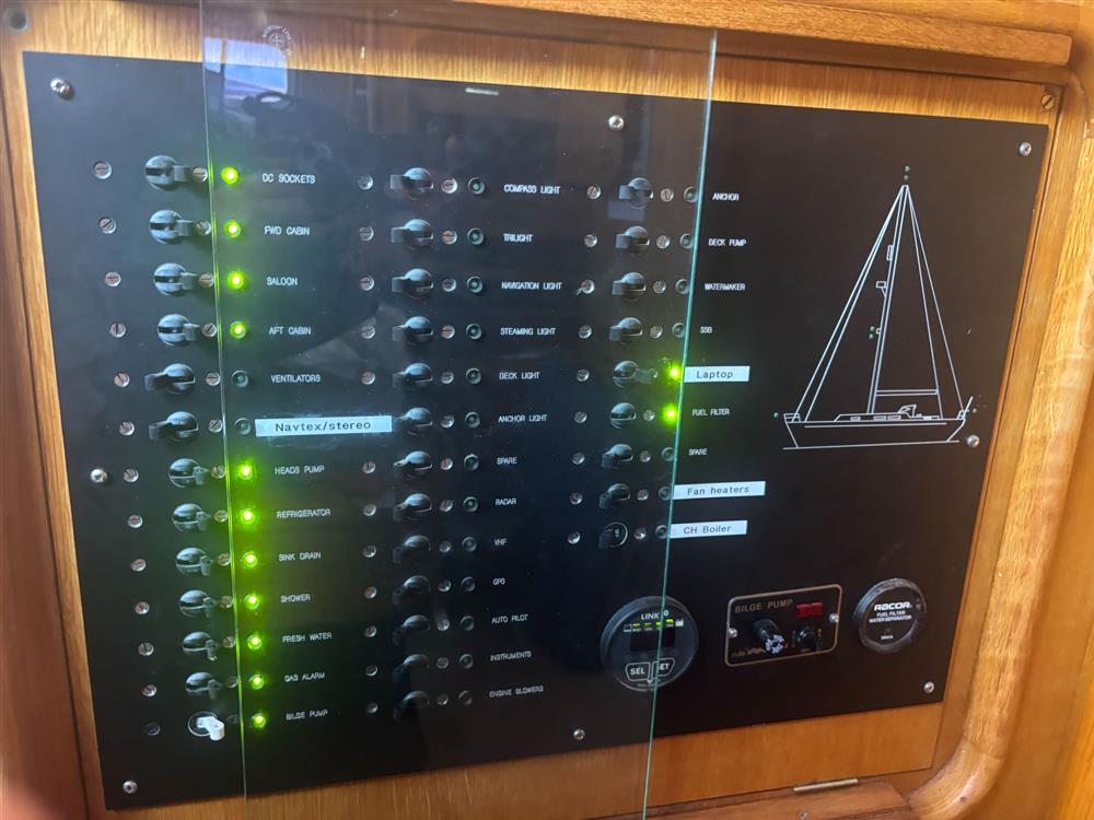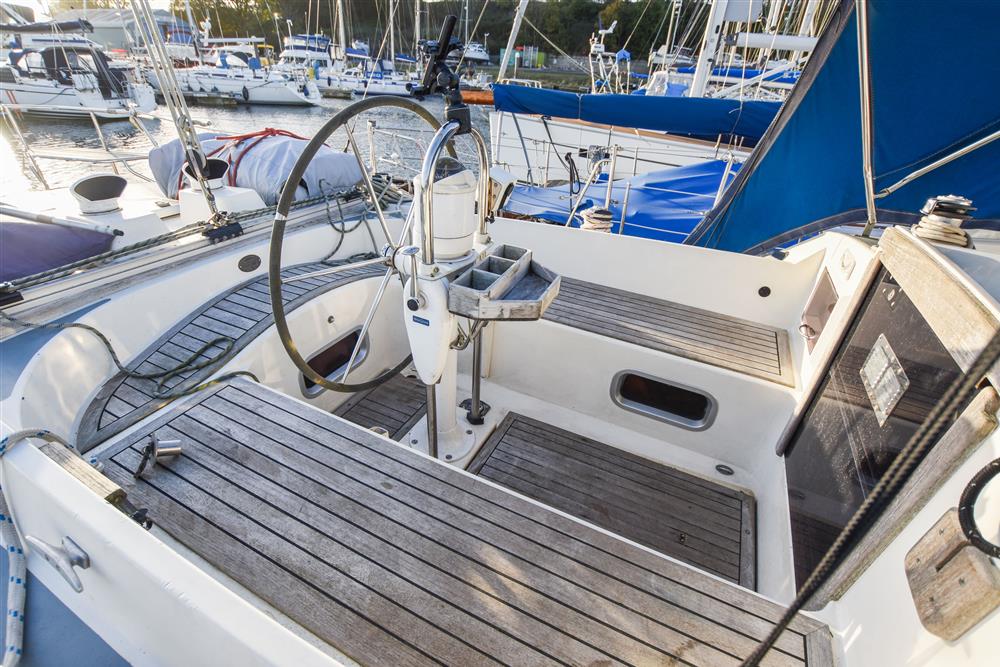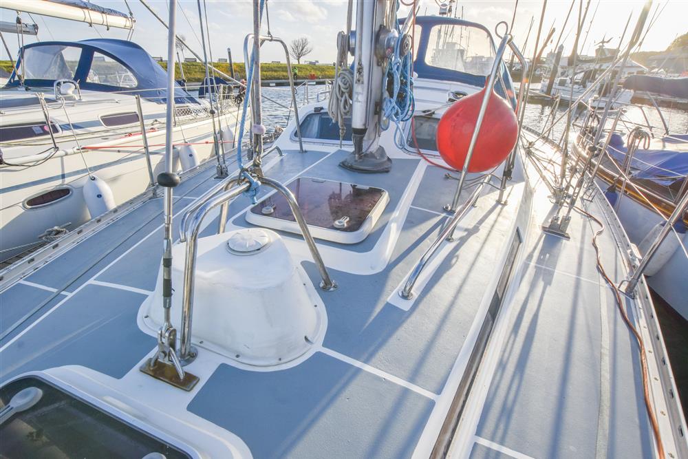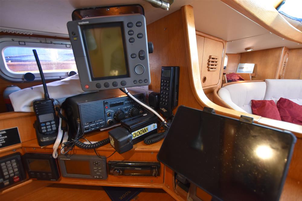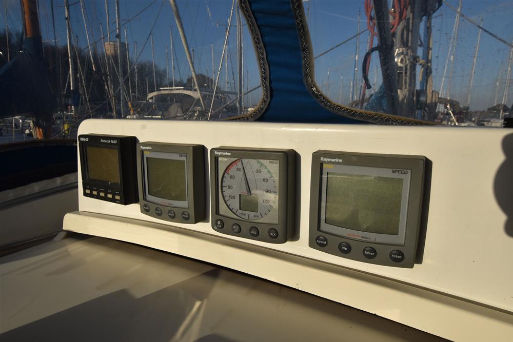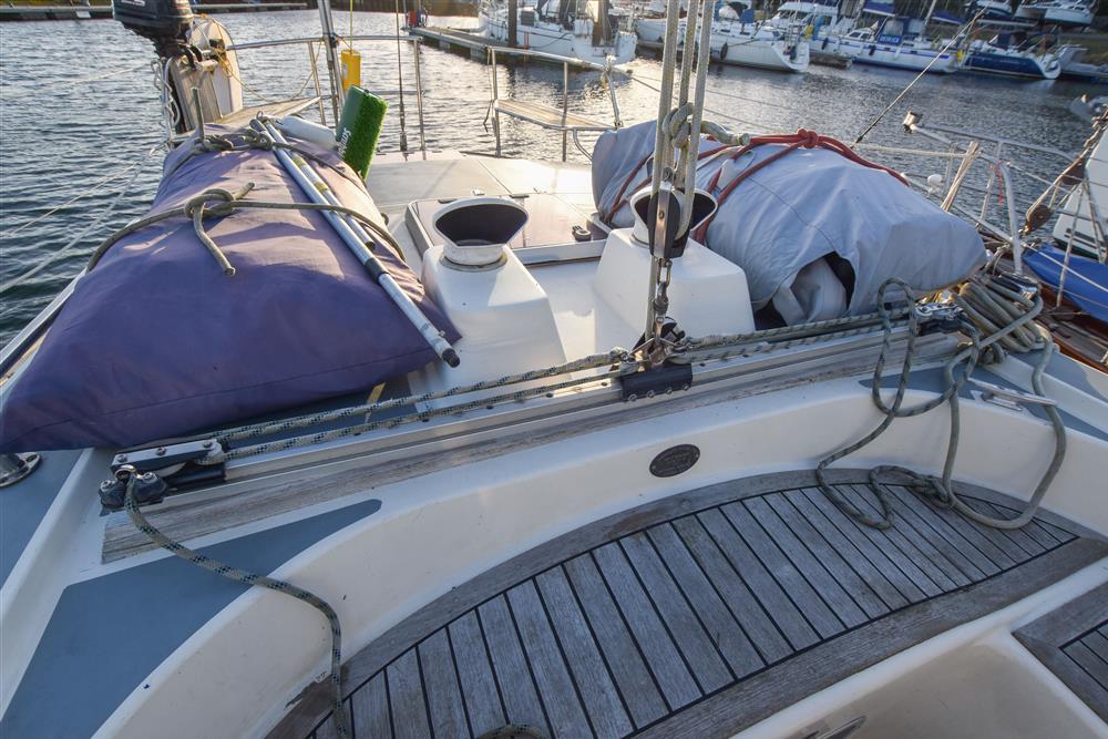 Masthead rigged Bermudan sloop. Keel-stepped alloy mast and boom. Stainless steel standing rigging (2007). Terylene running rigging (various ages). In-mast furling mainsail system. Furlex 300s headsail furling system. Alloy spinnaker pole. Two Lewmar 52 two-speed self-tailing sheet winches. Three Lewmar 40 two-speed self-tailing control line winches. Two Lewmar 30 two-speed winches. Rope clutches.