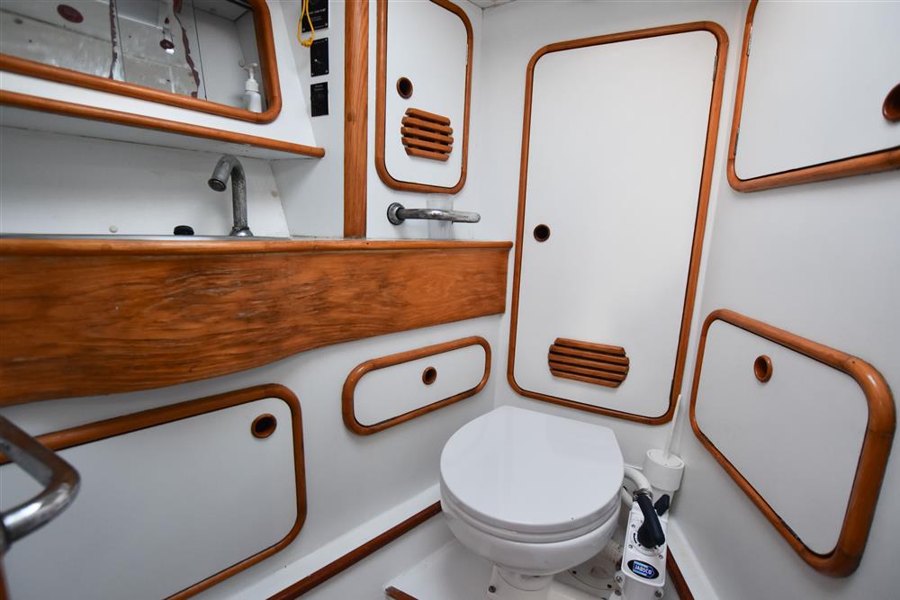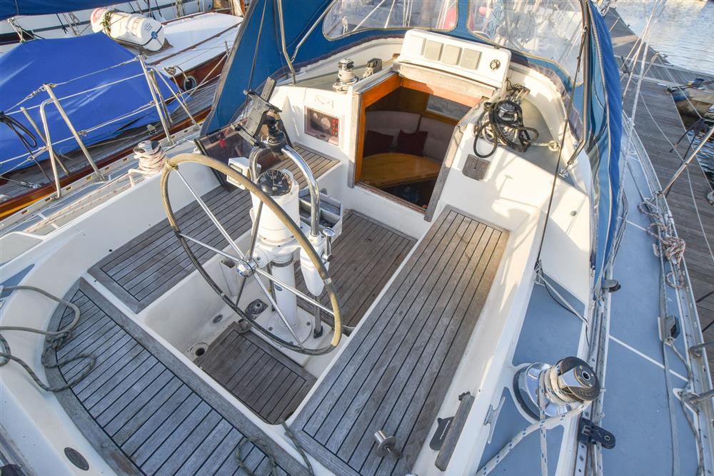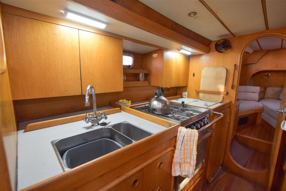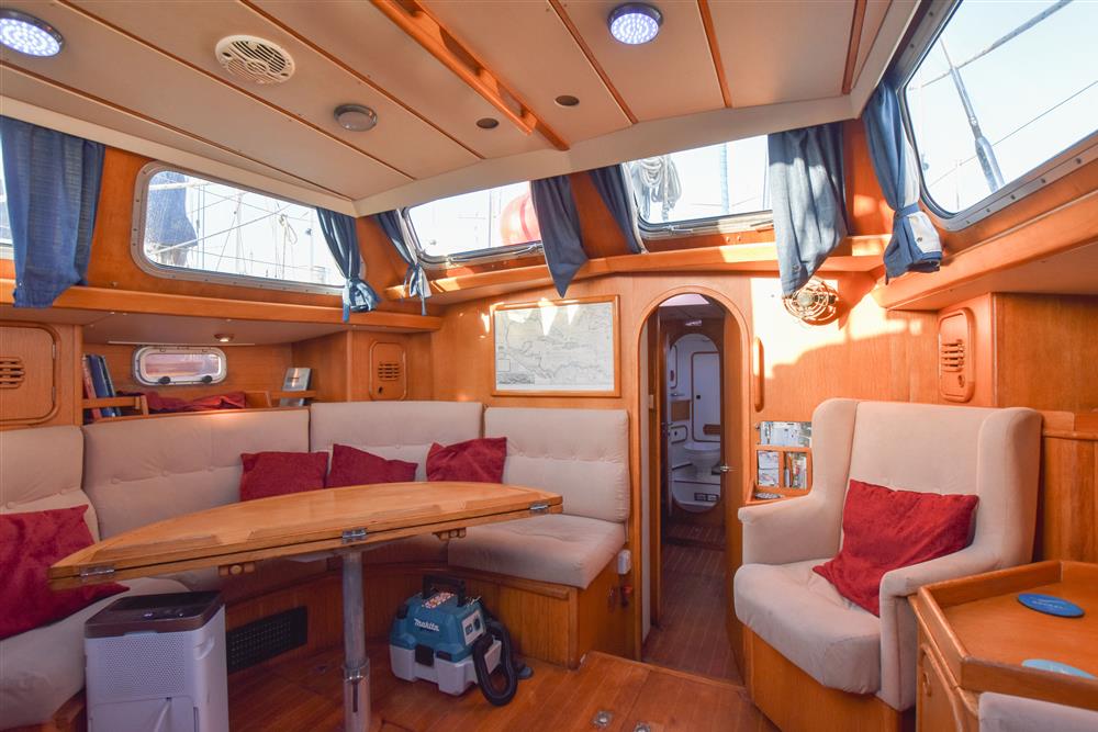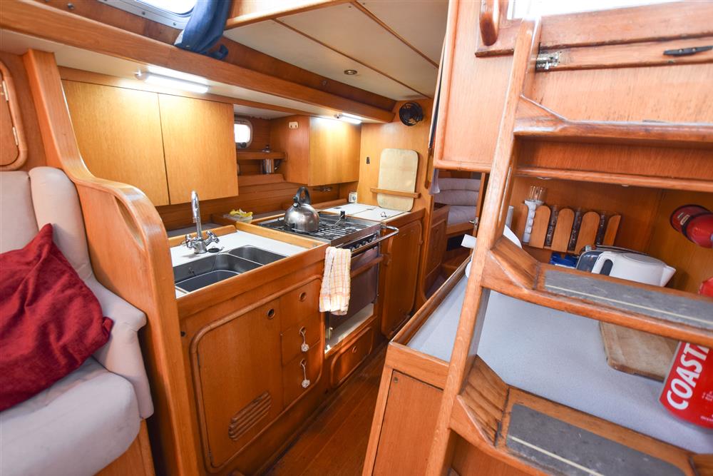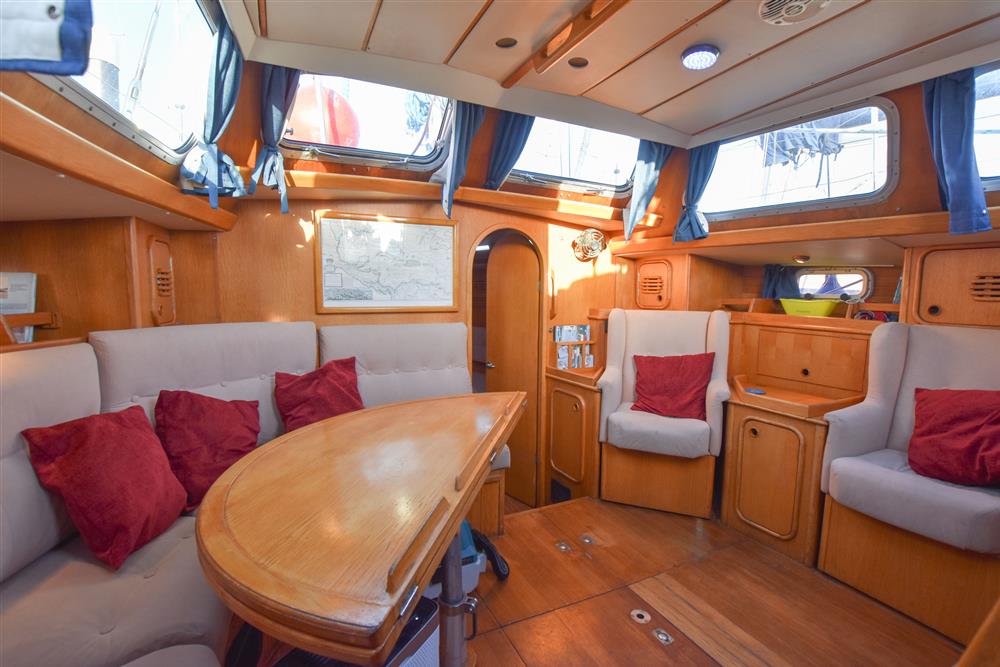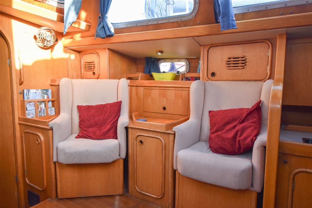 Located under the cockpit sole in an insulated and ventilated engine bay is the Perkins Prima M60 marine diesel engine. 59hp, 4 cylinders, naturally aspirated. Freshwater cooled via a heat exchanger. Shaft drive to a feathering 3 blade propeller. Approximately 273 litre GRP fuel tank. Annually serviced by owner. Professionally serviced in 2021 with timing belt changed. SIDE-POWER BOWTHRUSTER