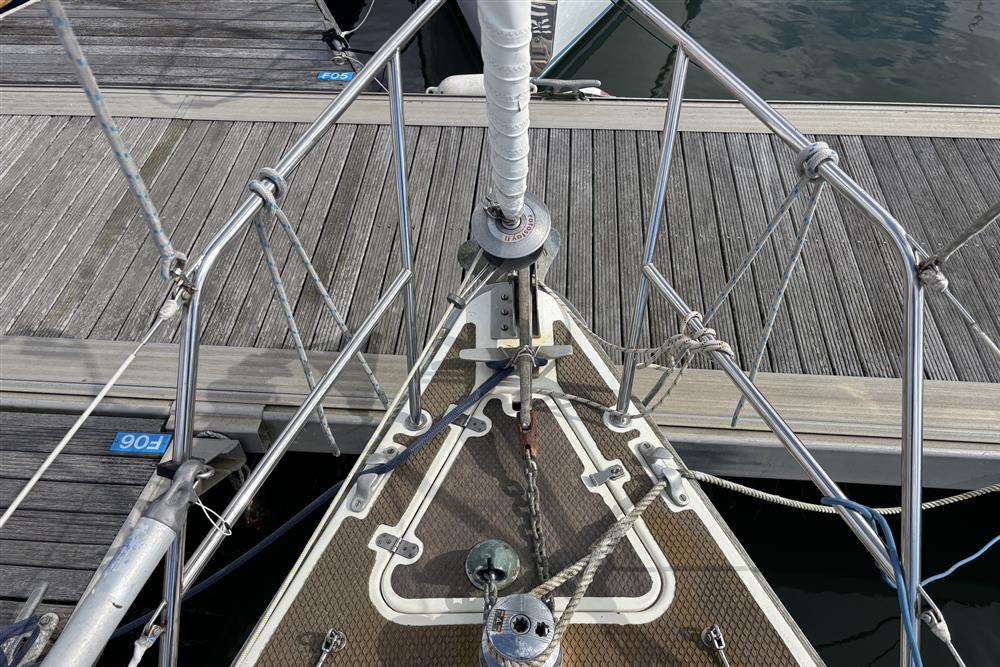 Masthead rigged Bermudan sloop. Deckstepped mast and boom by Kemp Masts Ltd (1991). Stainless steel standing rigging (2010). Terylene running rigging (2012). Slab reefing to mainsail. Head sail furling system. Spinnaker pole. Lazyjacks. Two Barient 24/45 two speed sheet winches. Two Barient 18 secondary winches.