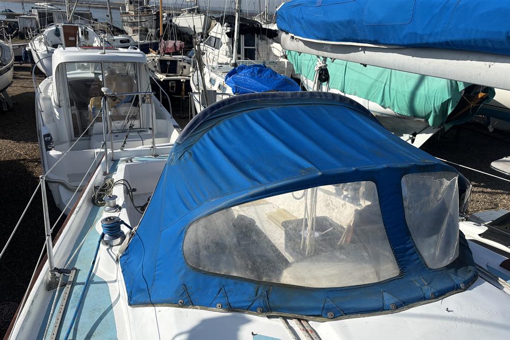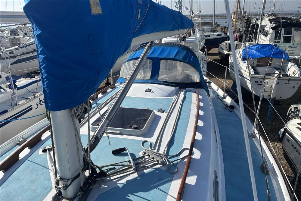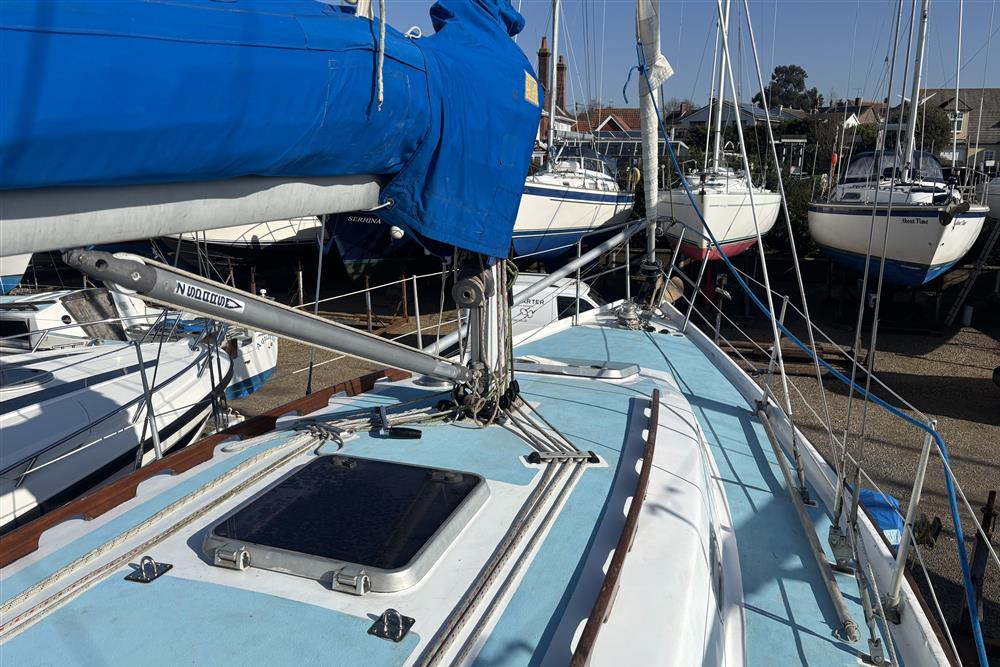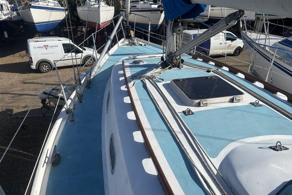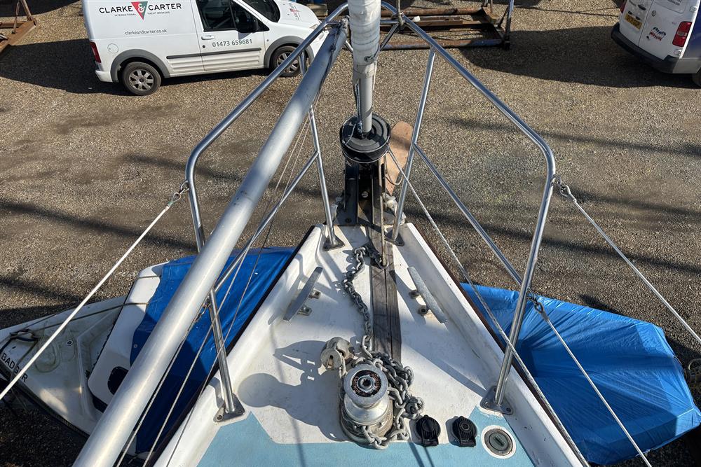 Masthead rigged Bermudan sloop. Deck-stepped twin speader alloy mast and boom by Tab. Stainless steel standing rigging (new 2015). Terylene running rigging (various ages). Manual backstay adjuster. Z-Spar rod kicker. Alloy spinnaker pole. Lines led aft through Barton cluthes. Selden deck gear. Slab reefing mainsail system with stackpack & lazyjacks. Profurl headsail furling system (new 2025). Two Lewmar 30 self-tailing sheet winches. Two Lewmar 16 secondary winches. Two Anderson 12 self-tailing halyard winches. One Gibb control line winch on the mast.